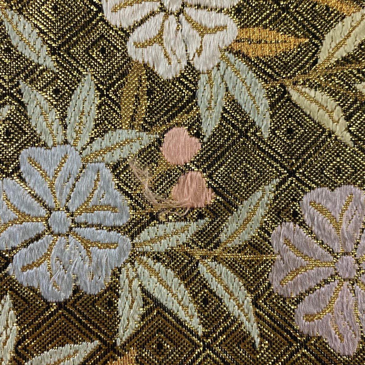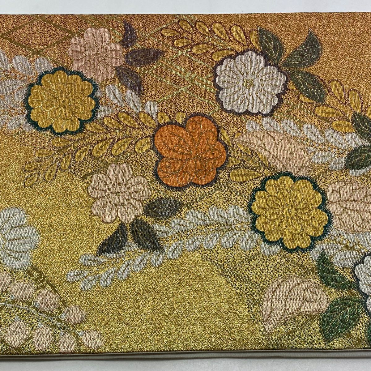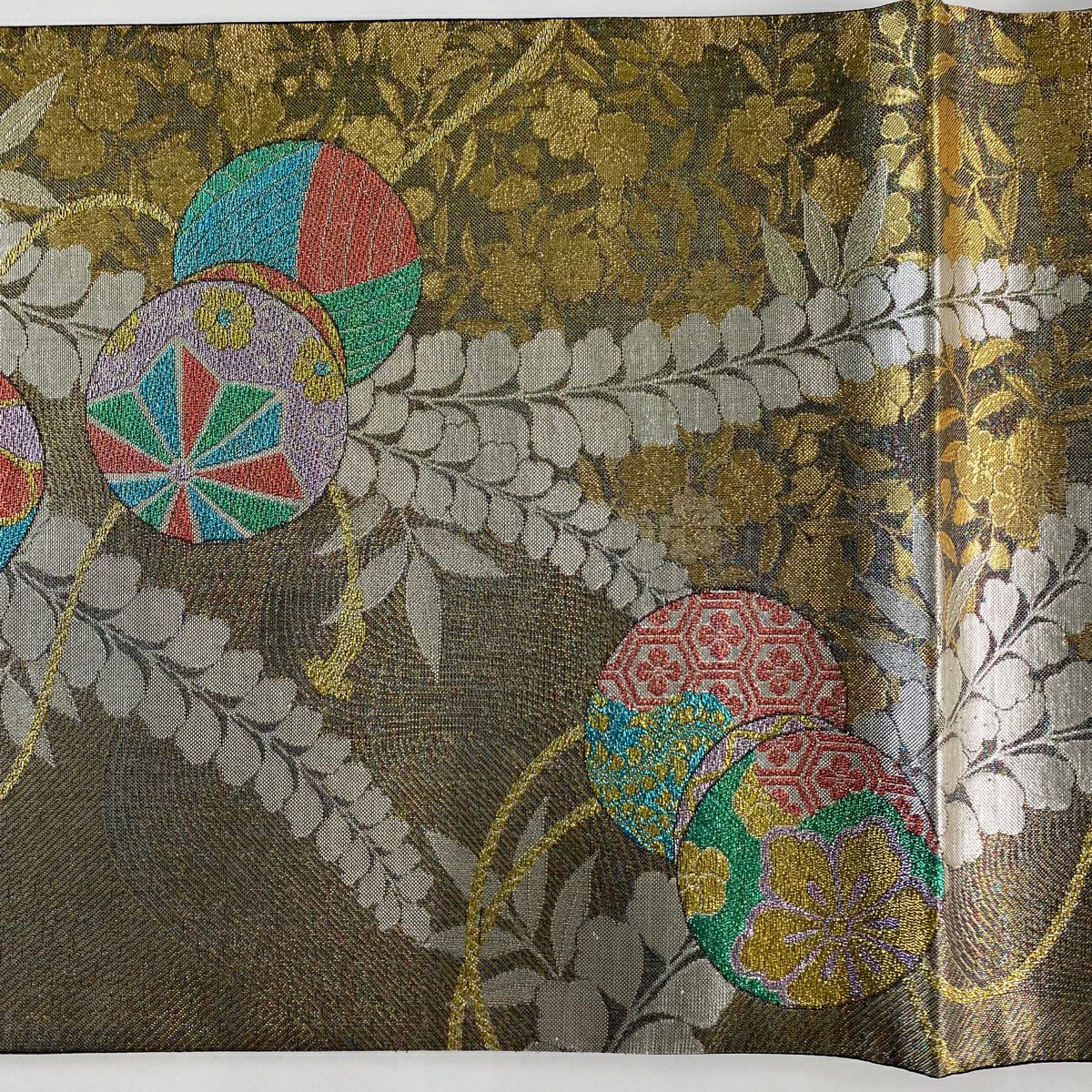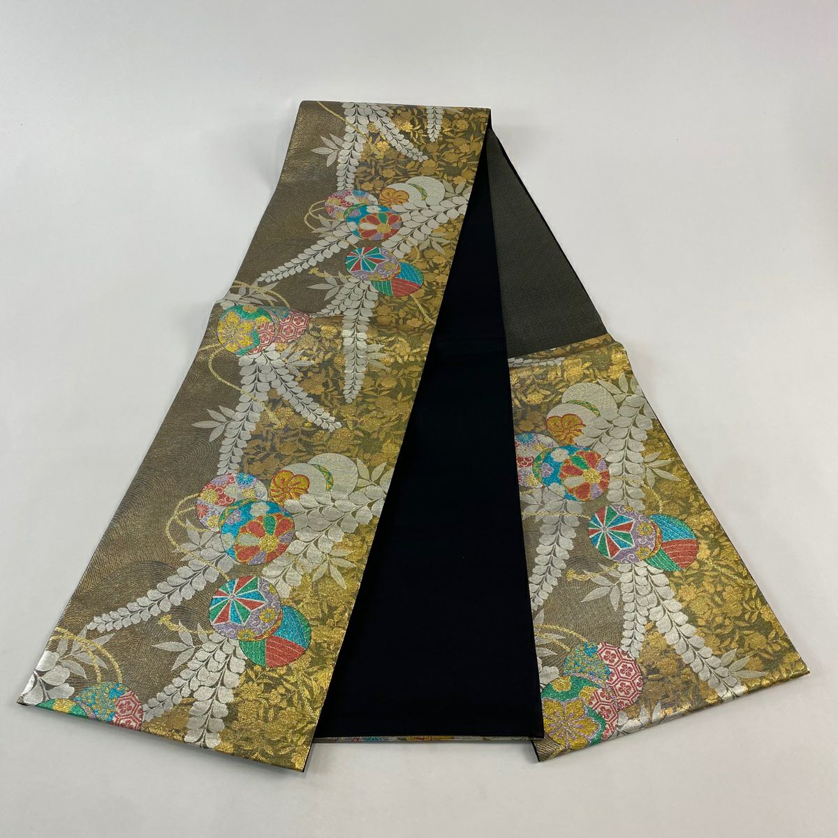【在庫一掃】 【美品】 袋帯 秀品 蹴鞠 草花 箔 金色 六通 正絹