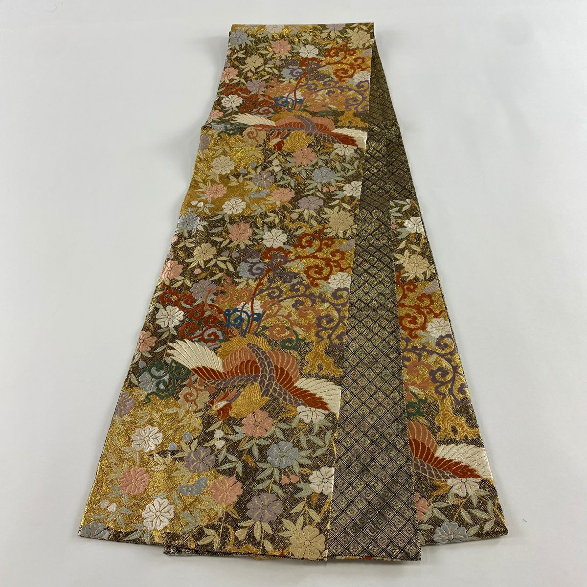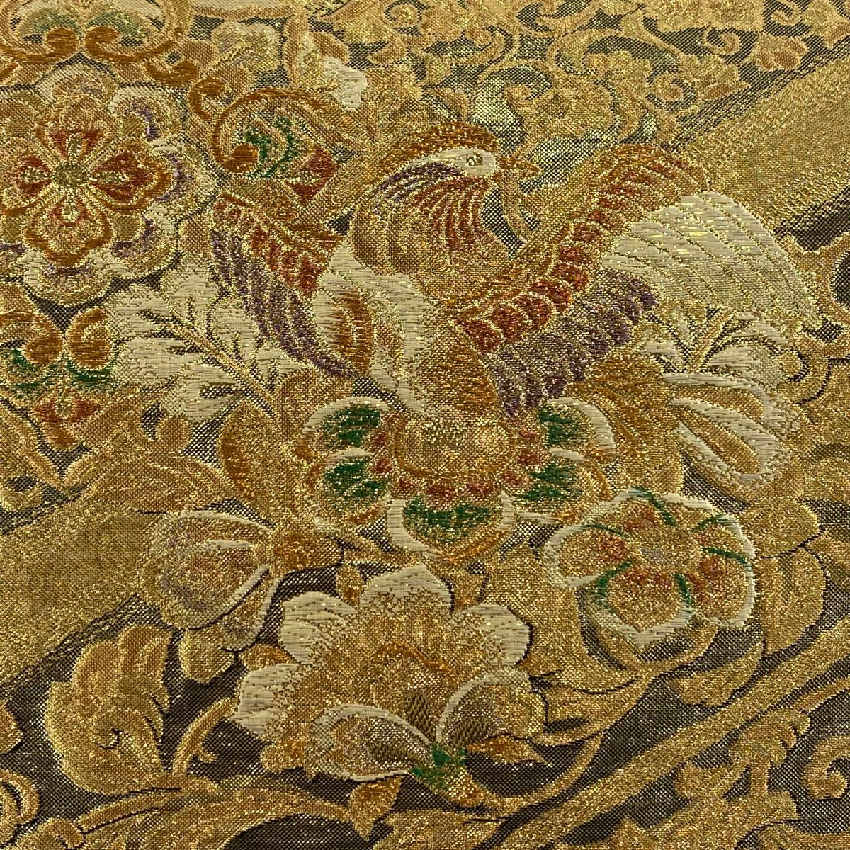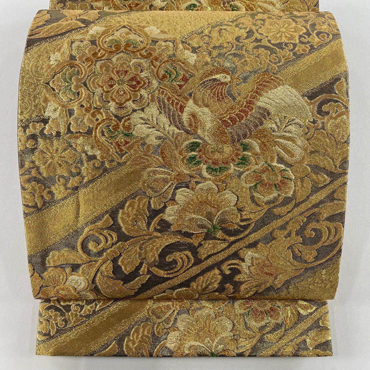【在庫一掃】 袋帯 秀品 鳳凰 花唐草 金糸 唐織 金色 六通 正絹
