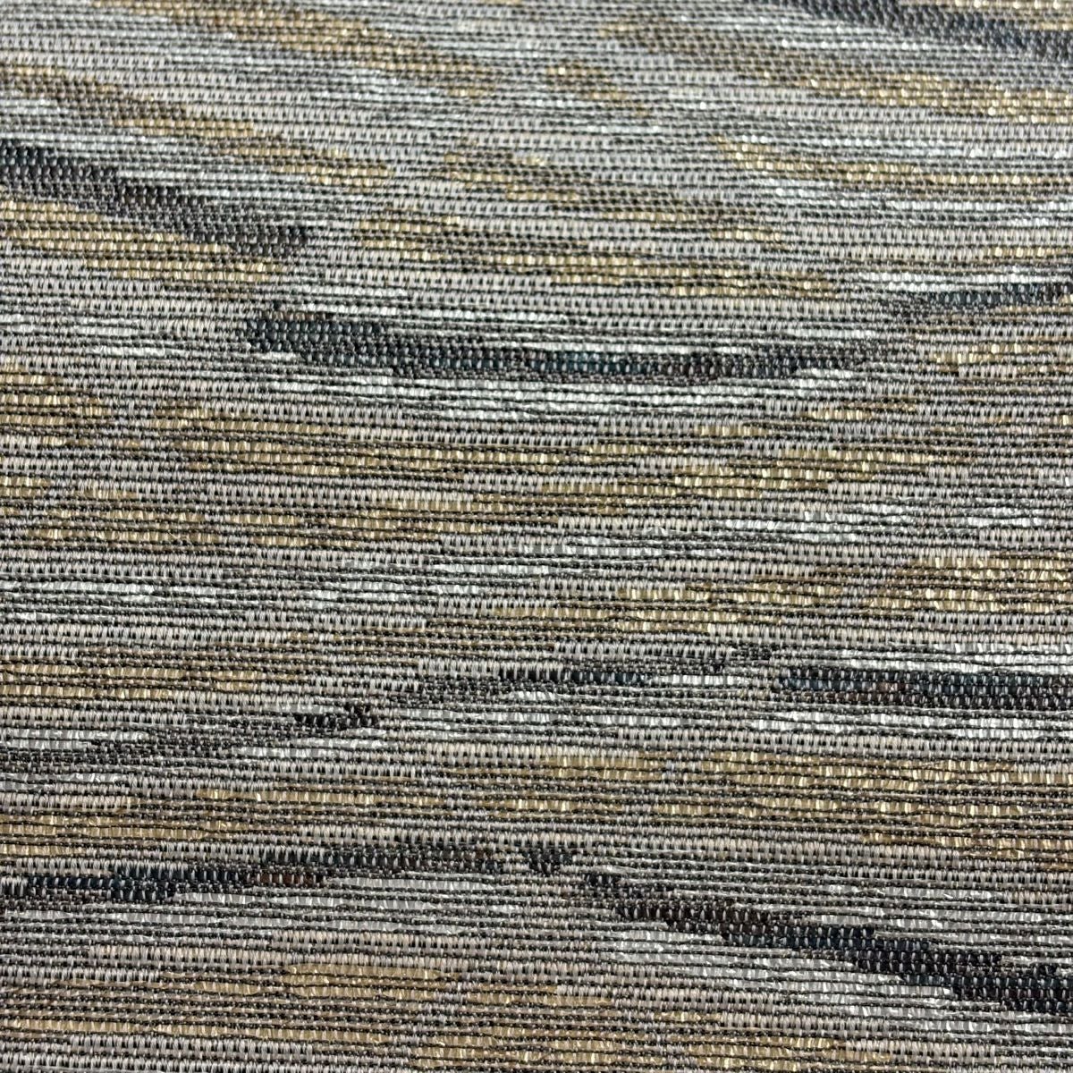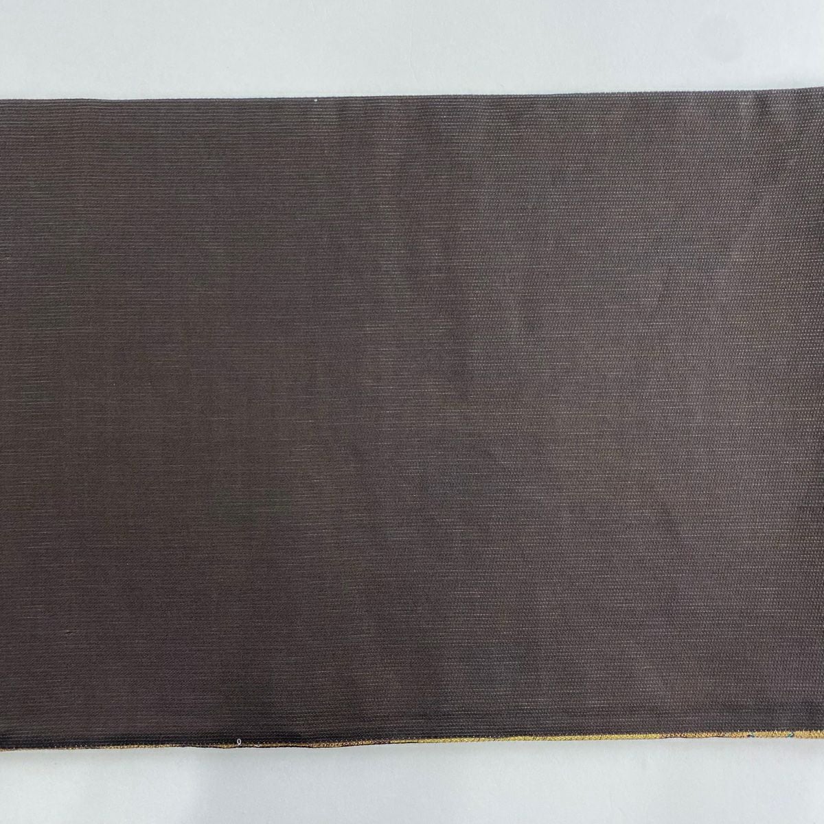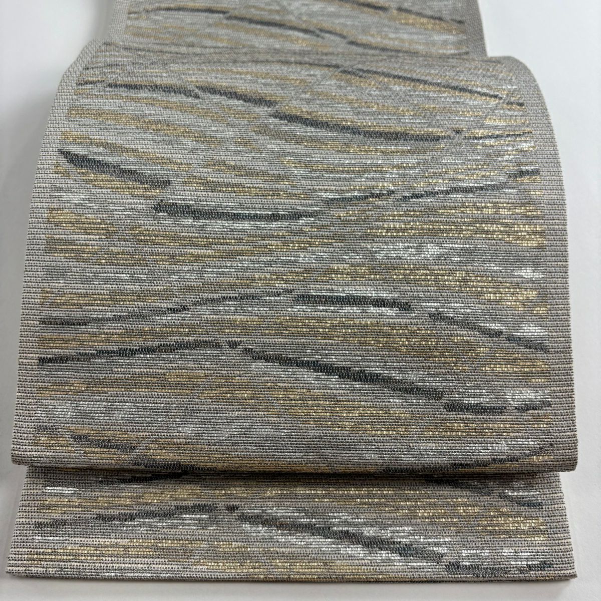 【在庫一掃】 袋帯 秀品 段縞 幾何学 金糸 灰茶 お太鼓柄 正絹