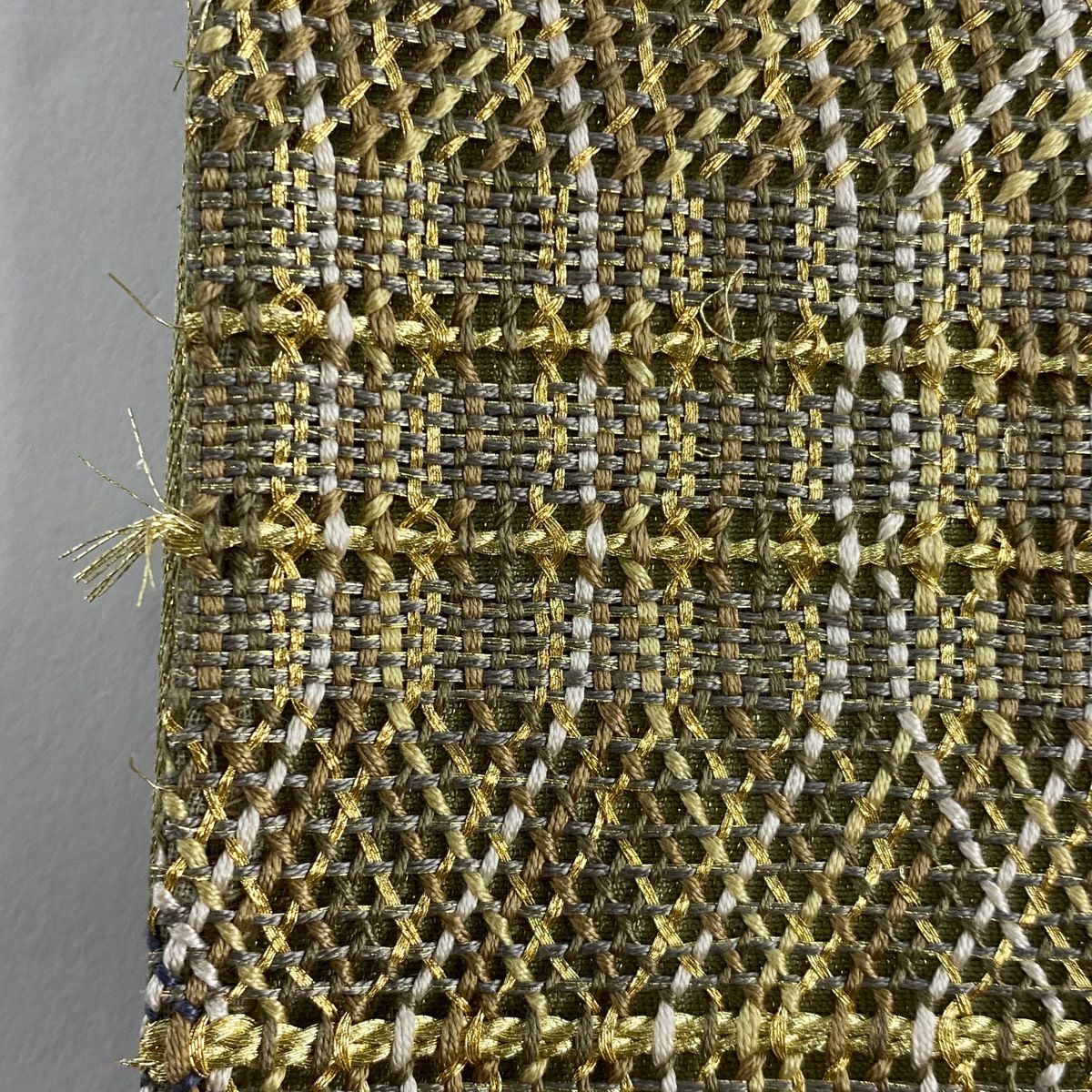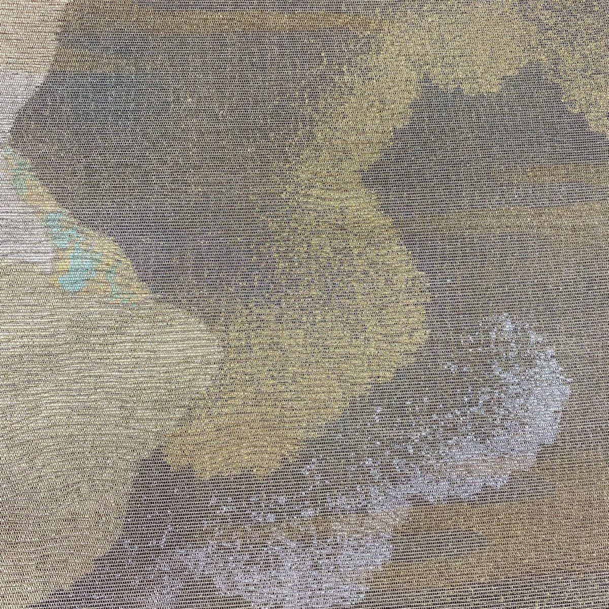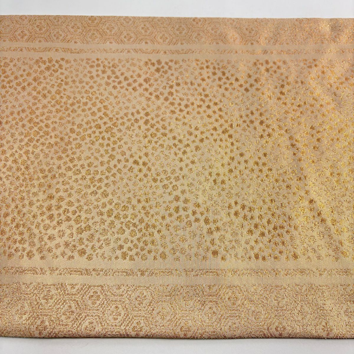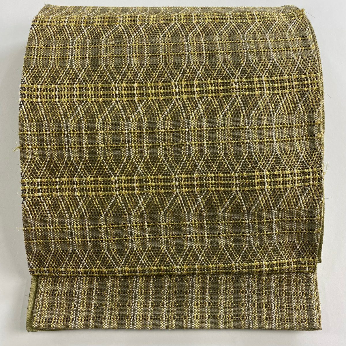 【在庫一掃】 【美品】 袋帯 秀品 幾何学 金糸 薄茶色 六通 正絹