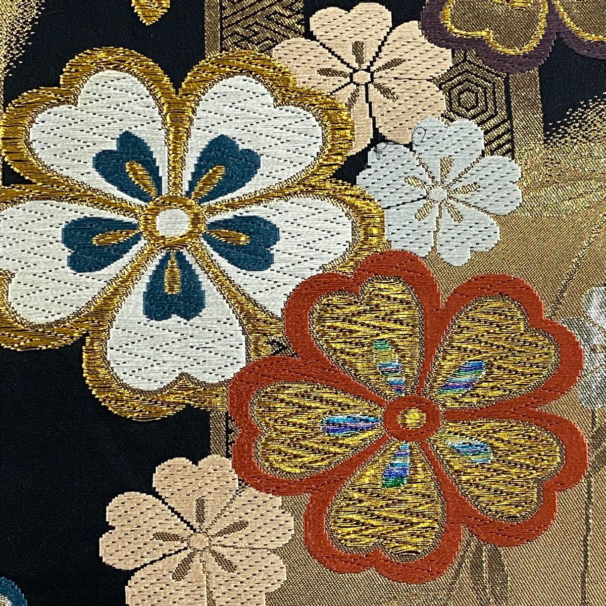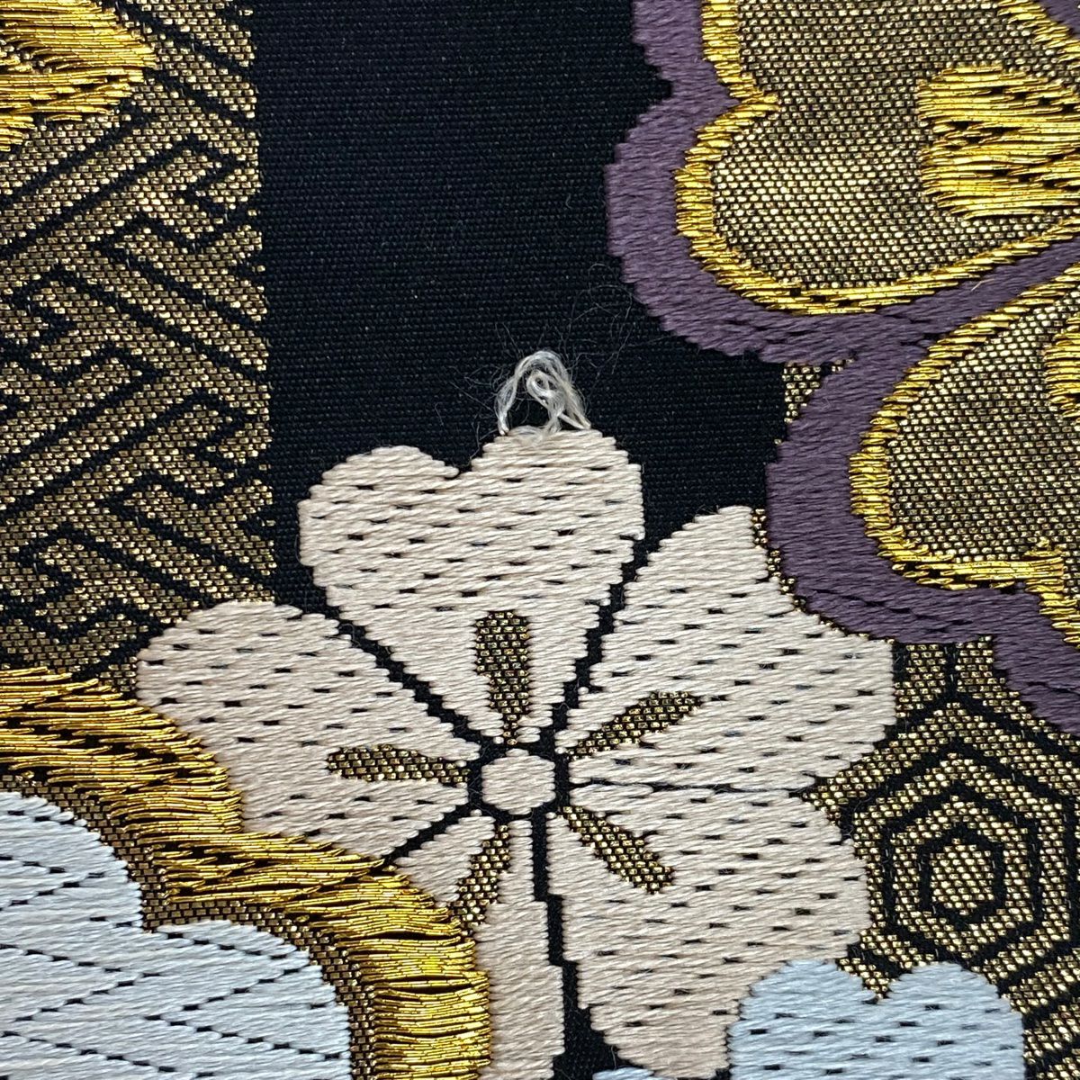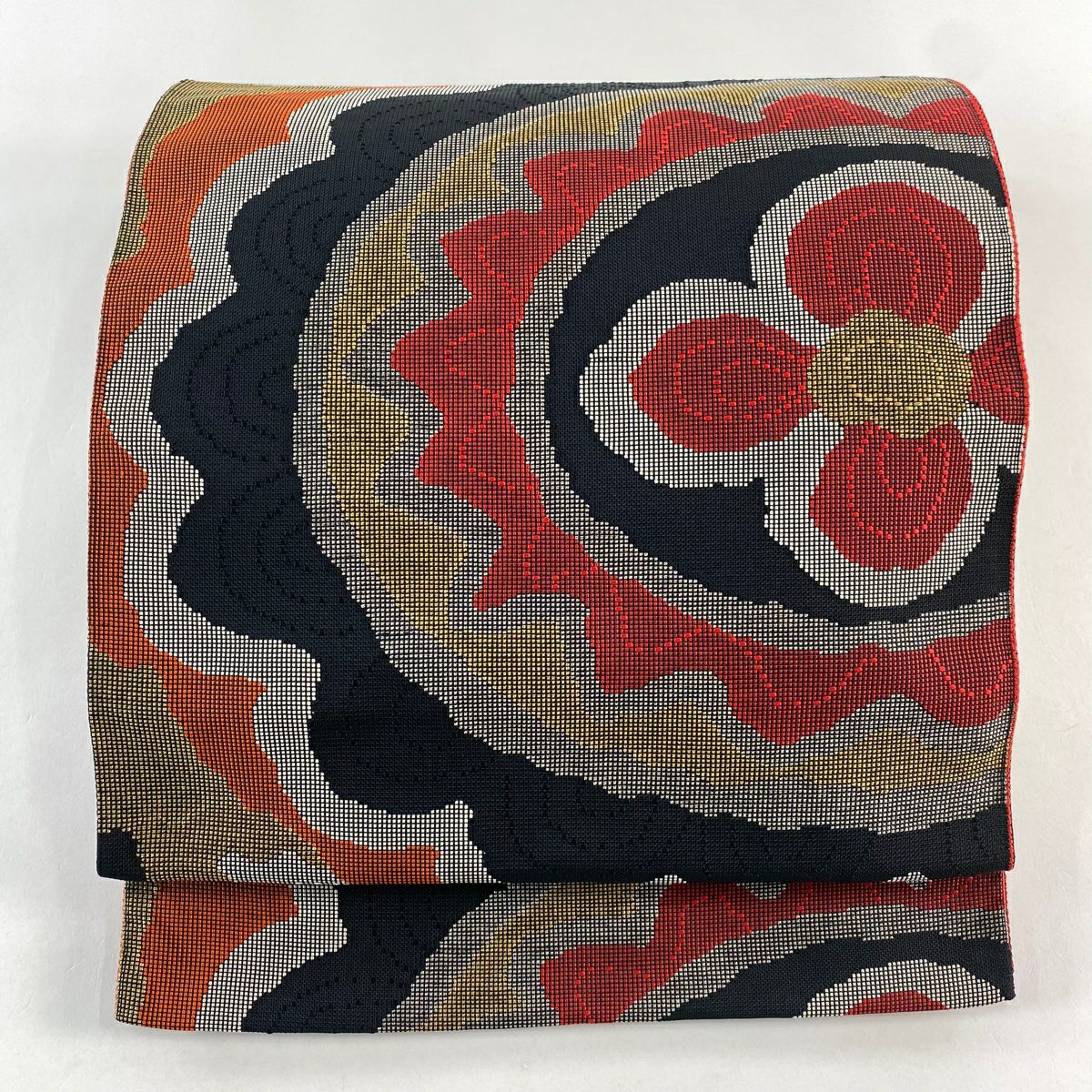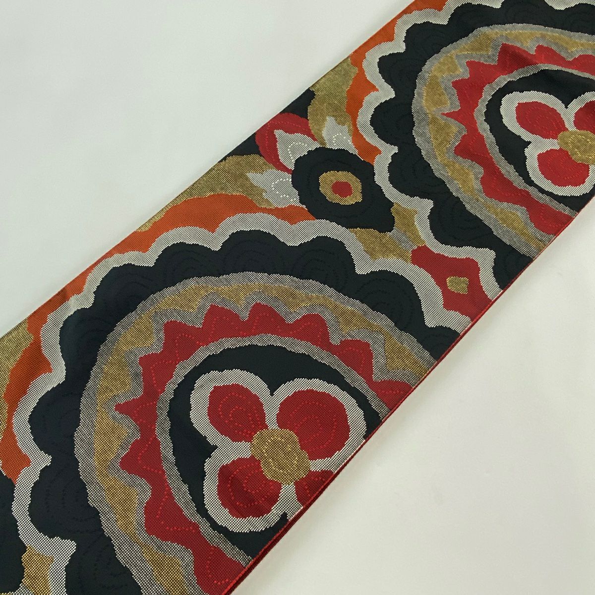 【在庫一掃】 袋帯 秀品 華文 幾何学模様 金銀糸 黒 全通 正絹