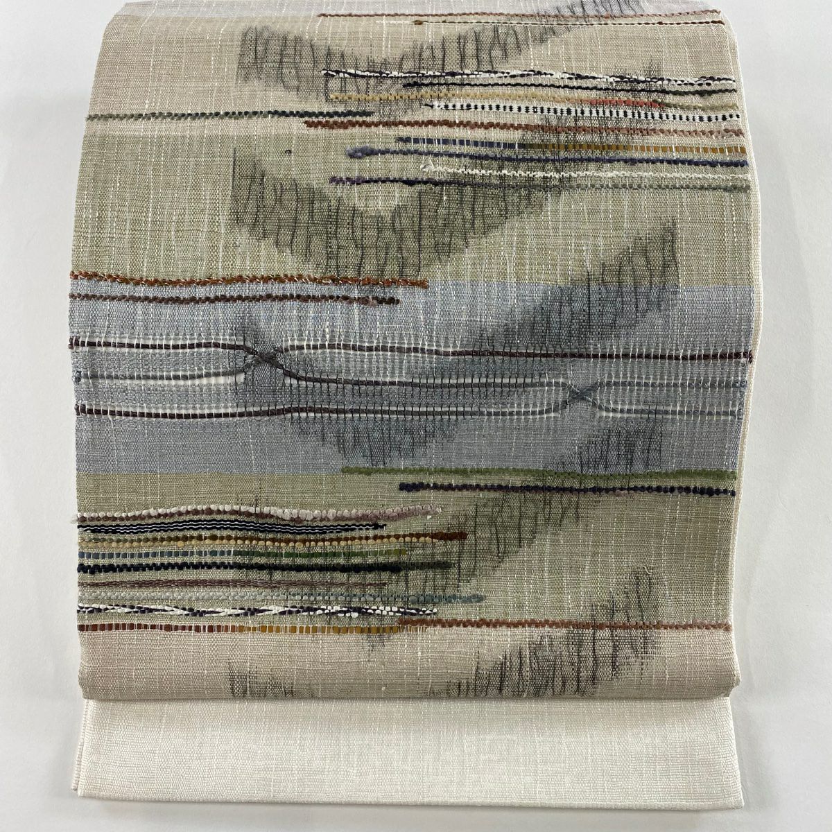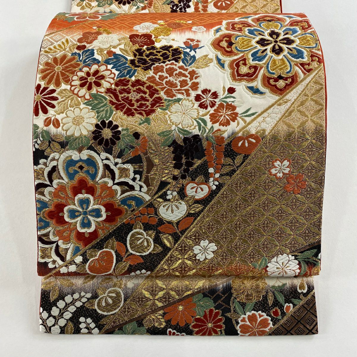 【在庫一掃】 【美品】 袋帯 秀品 幾何学 クリーム お太鼓柄 正絹