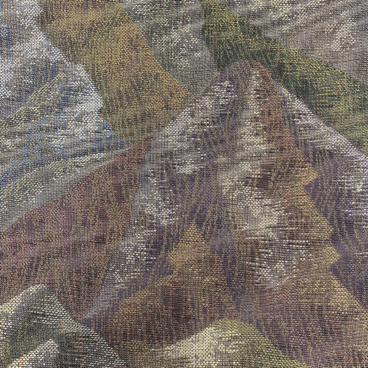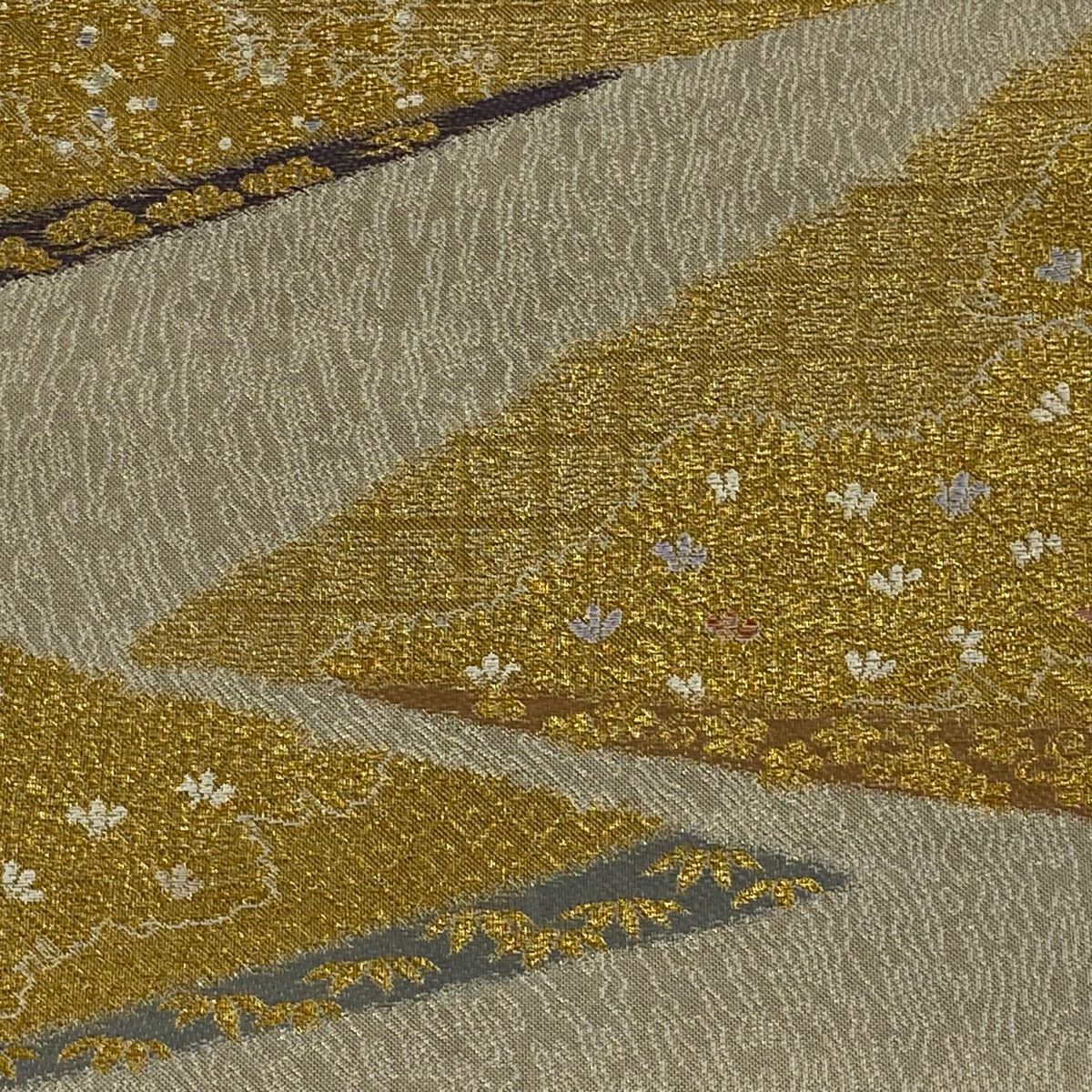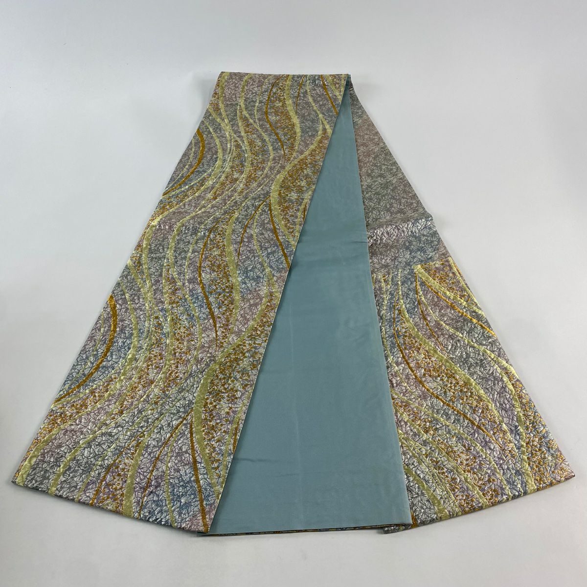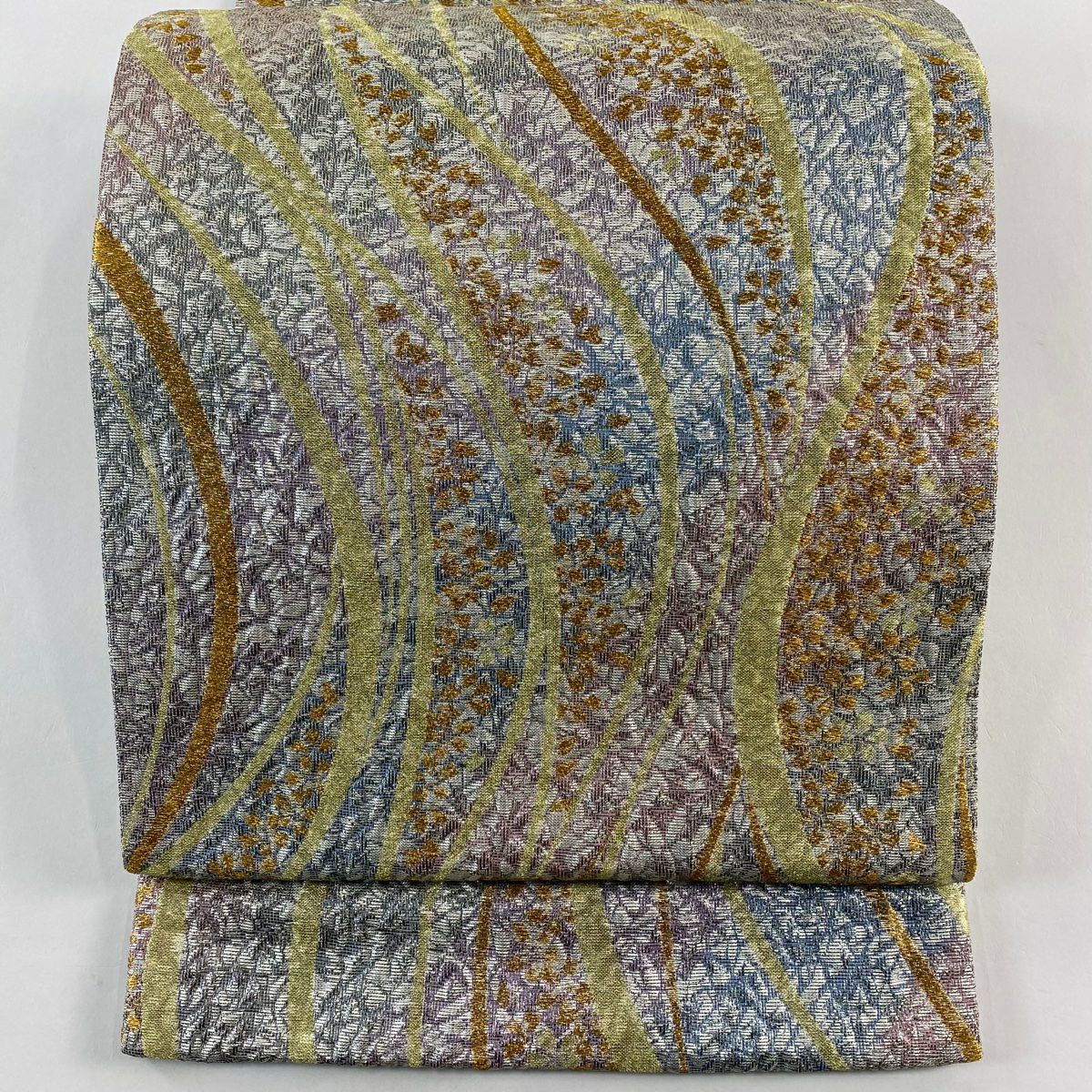 【在庫一掃】 【美品】 袋帯 秀品 山なみ 金銀糸 灰緑 六通 正絹