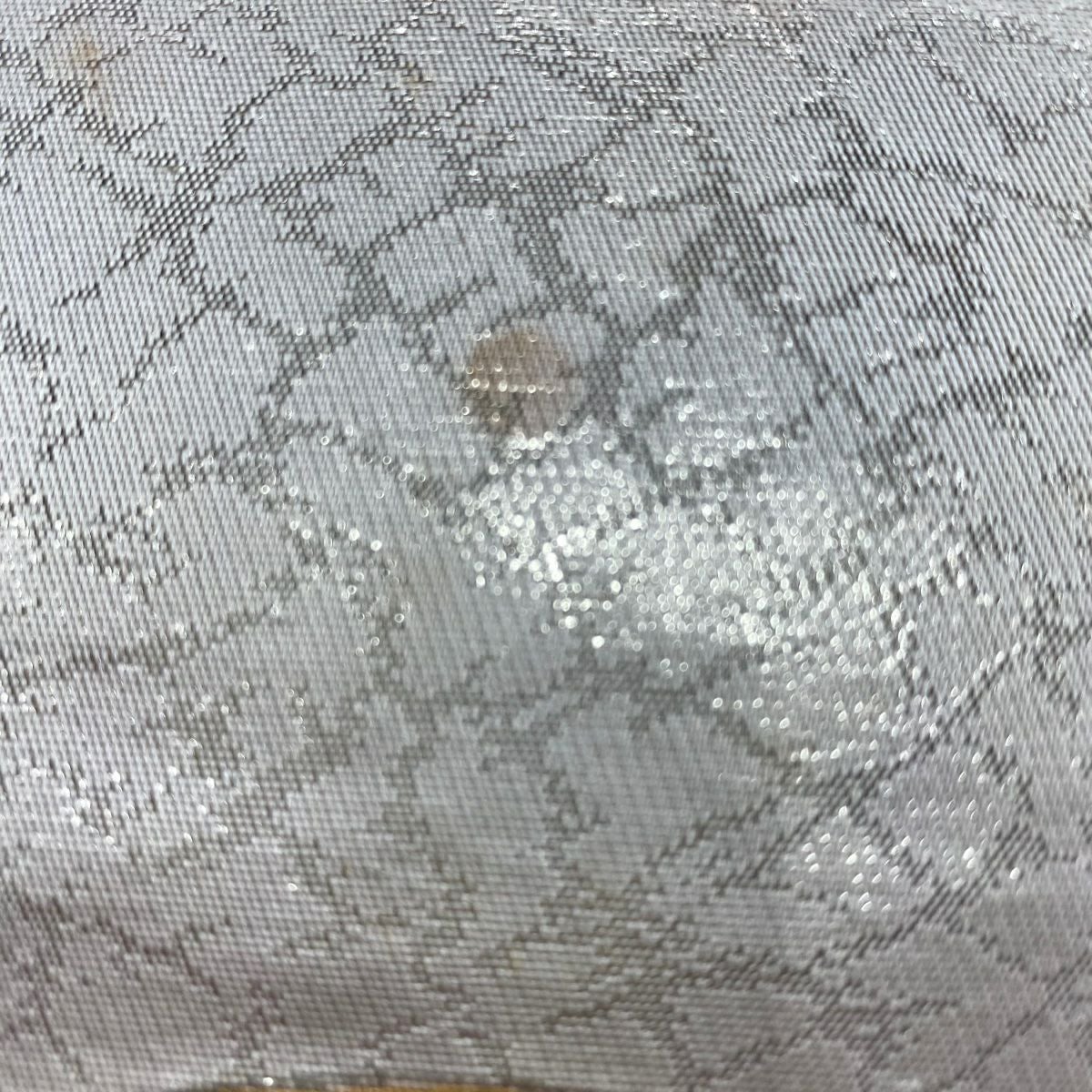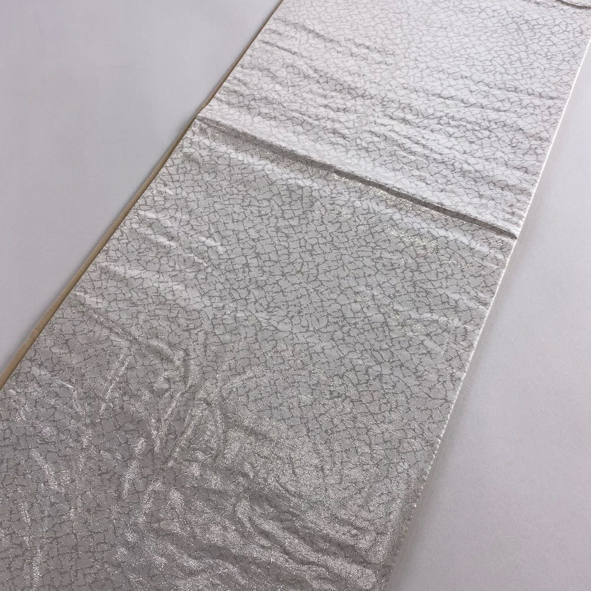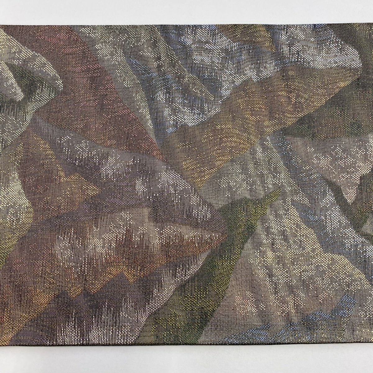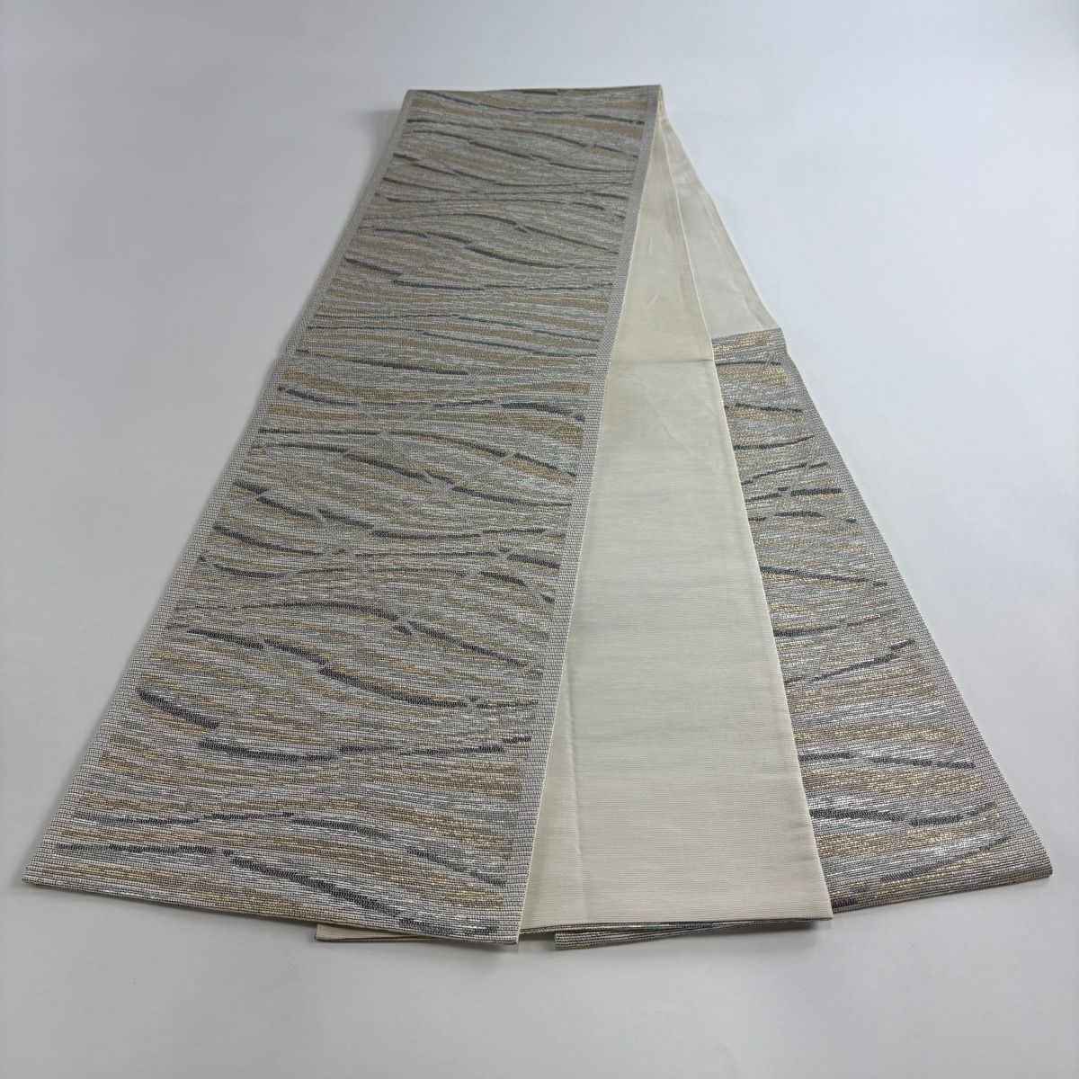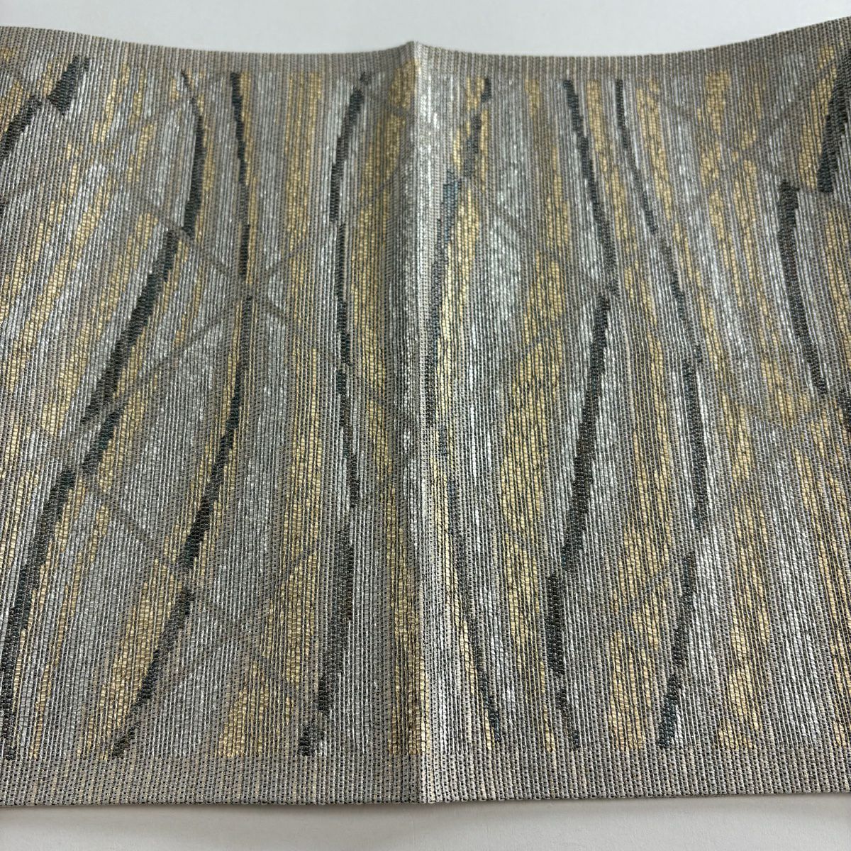 【在庫一掃】 【美品】 袋帯 秀品 幾何学模様 箔 銀色 六通 正絹