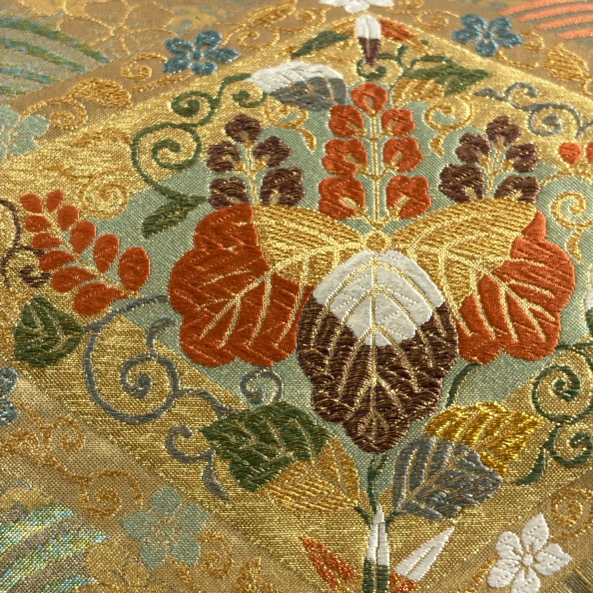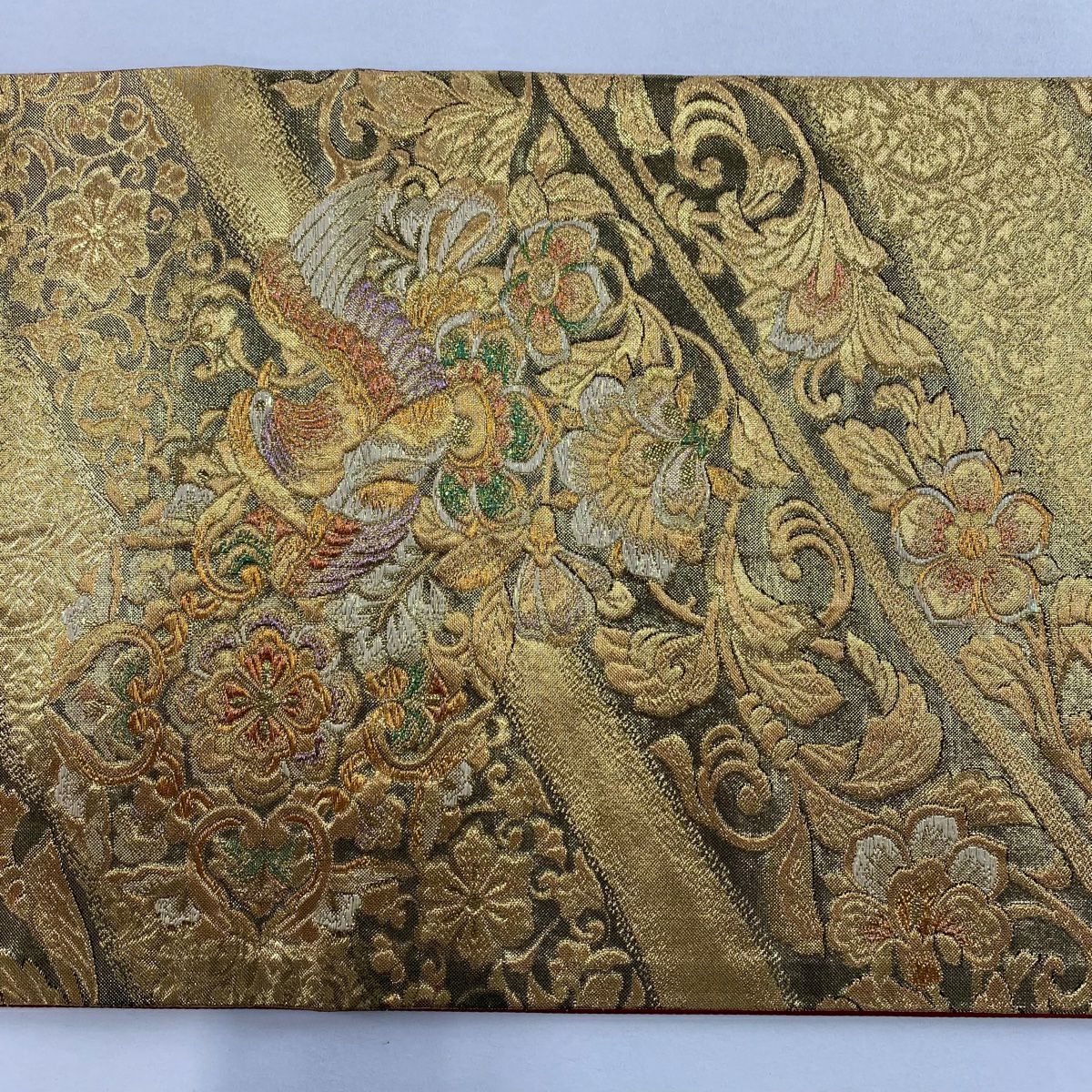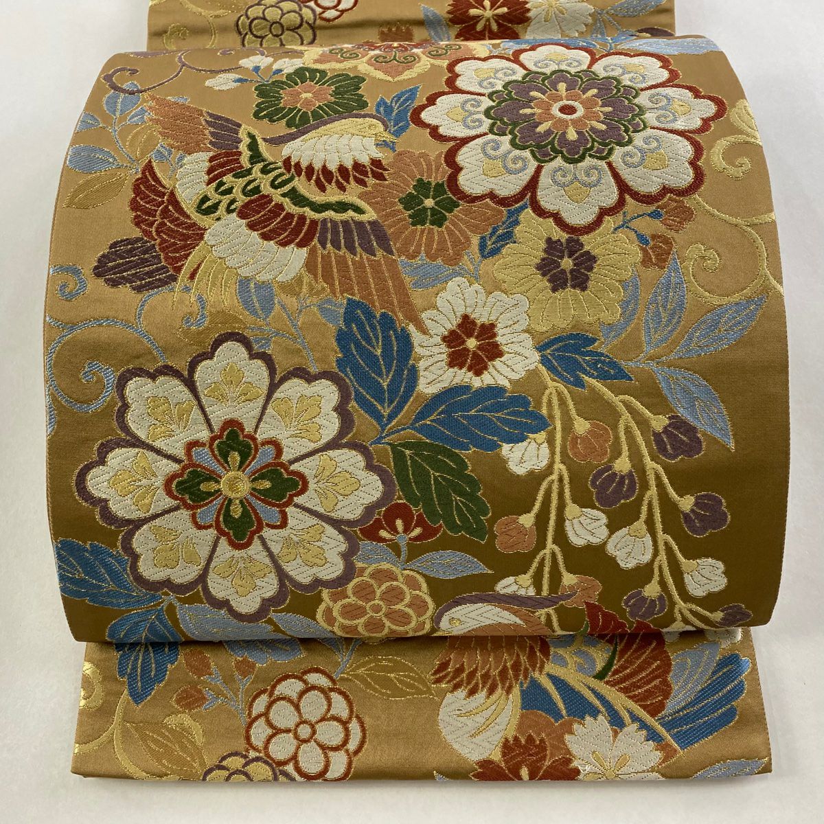 【在庫一掃】 【美品】 袋帯 秀品 華文 花鳥 箔 金色 六通 正絹