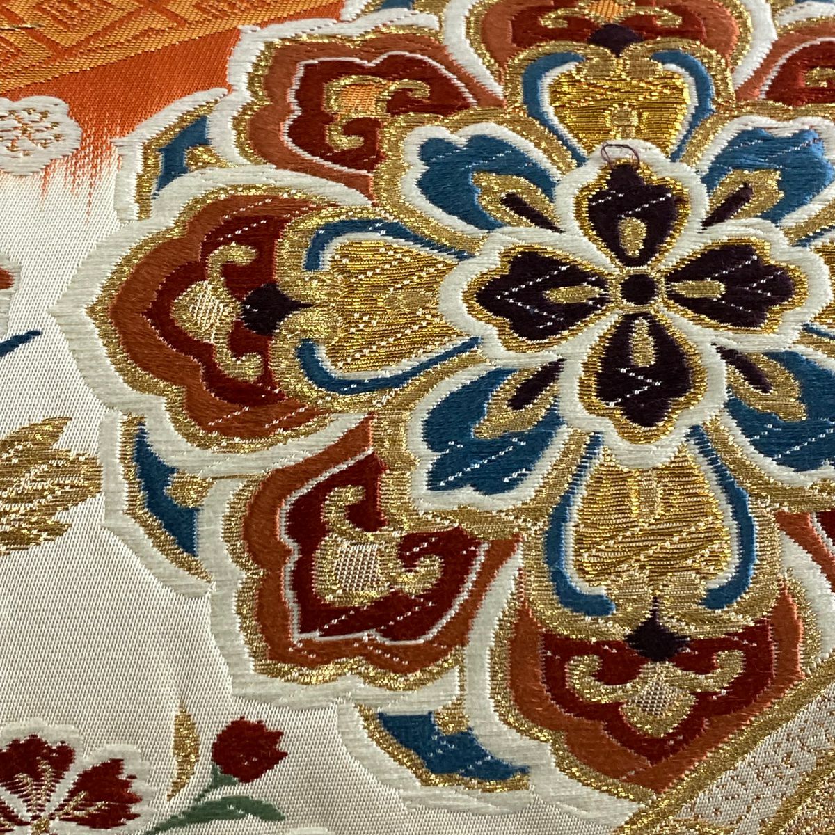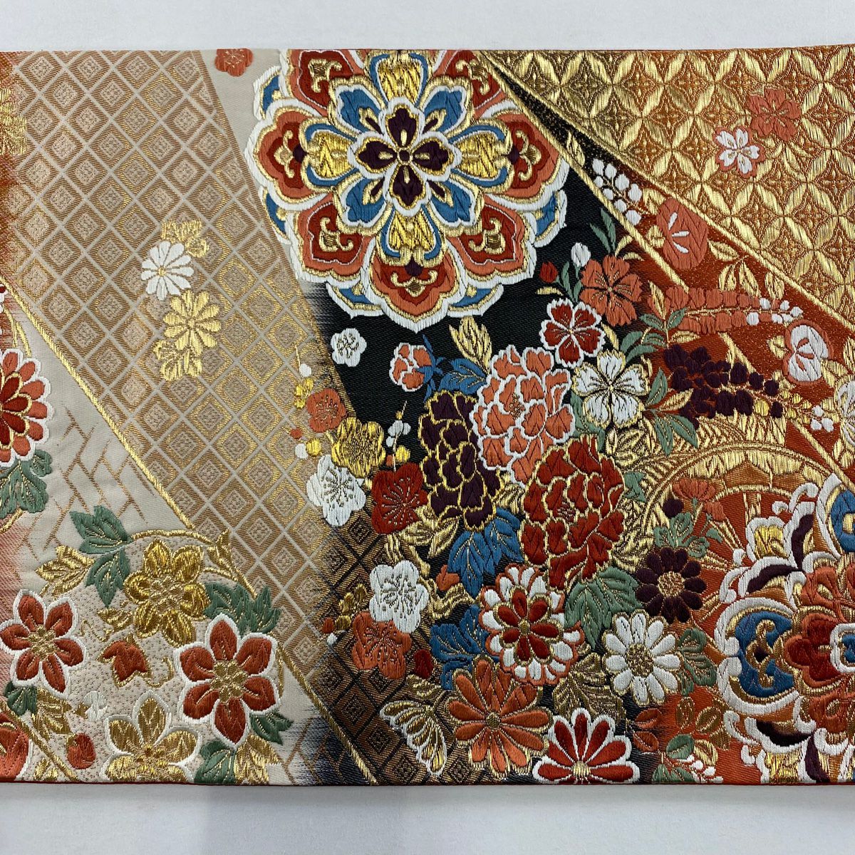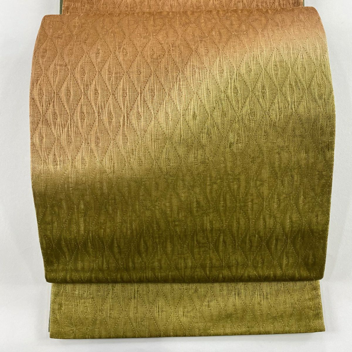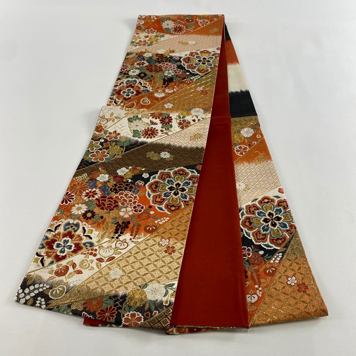 【在庫一掃】 【美品】 袋帯 秀品 菱 金糸 オレンジ 全通 正絹