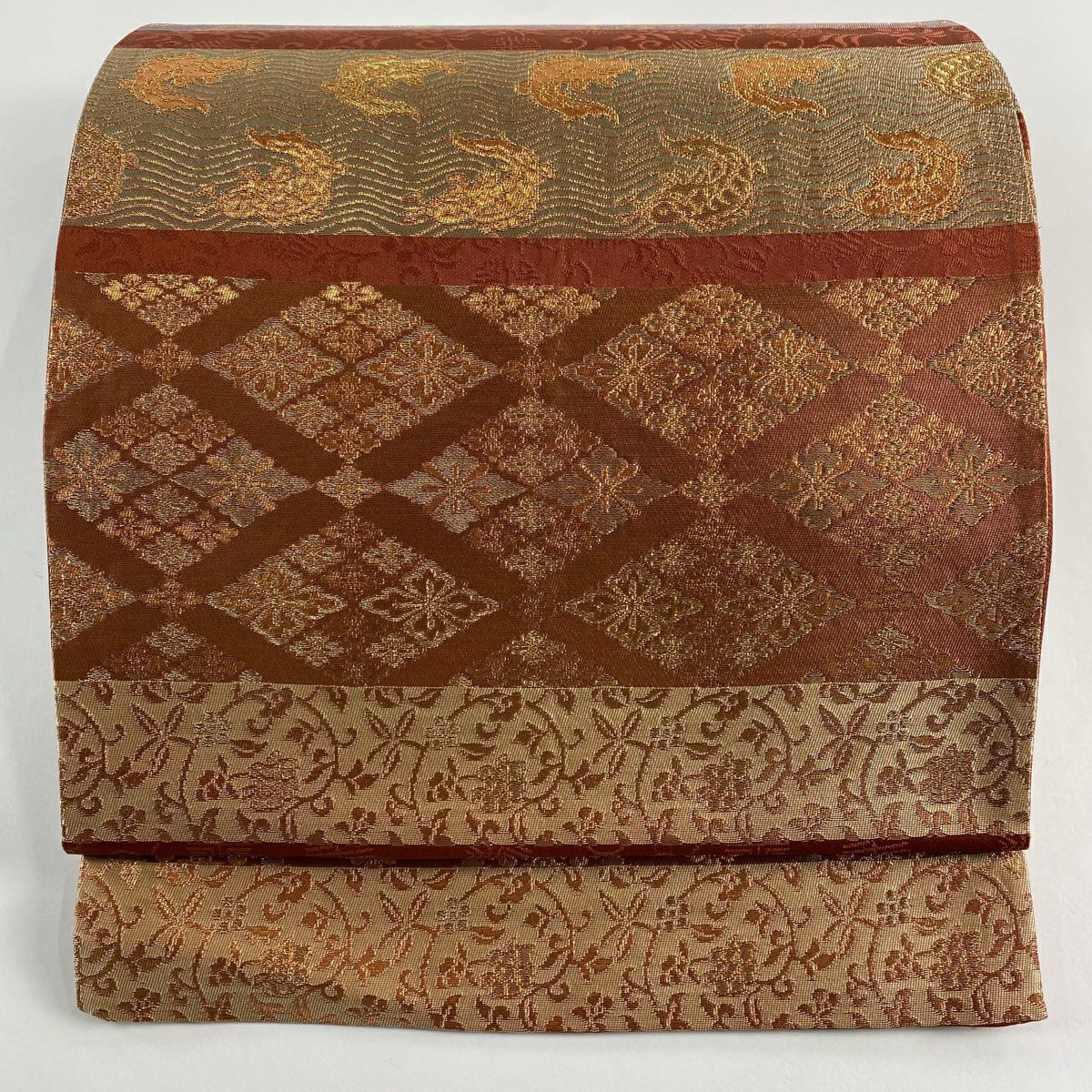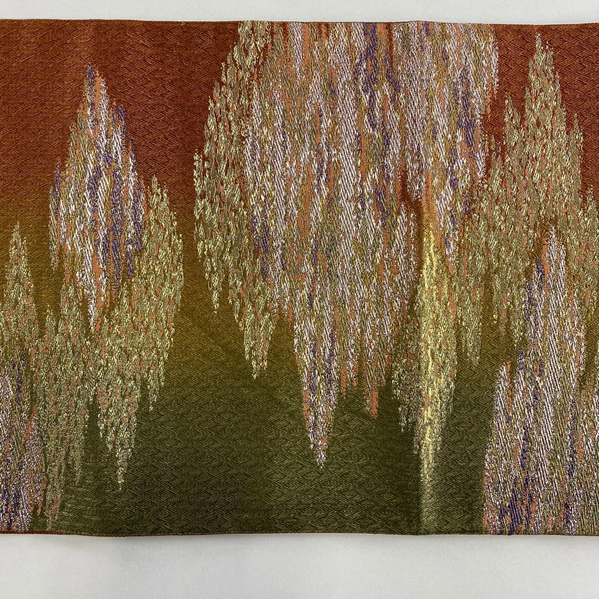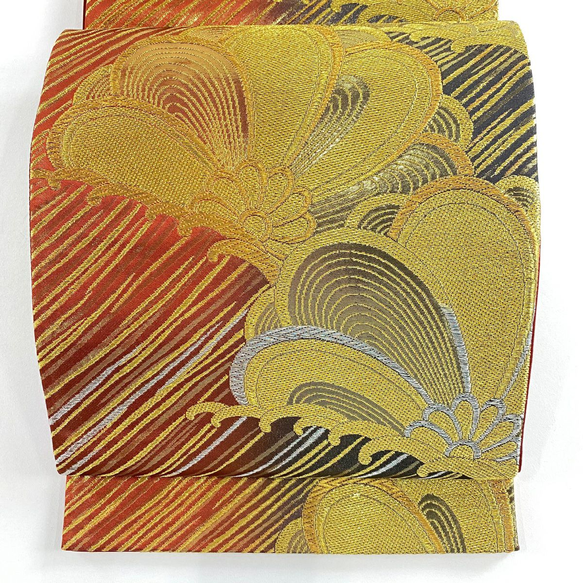 【在庫一掃】 【美品】 袋帯 秀品 花菱 荒磯 箔 赤茶 六通 正絹