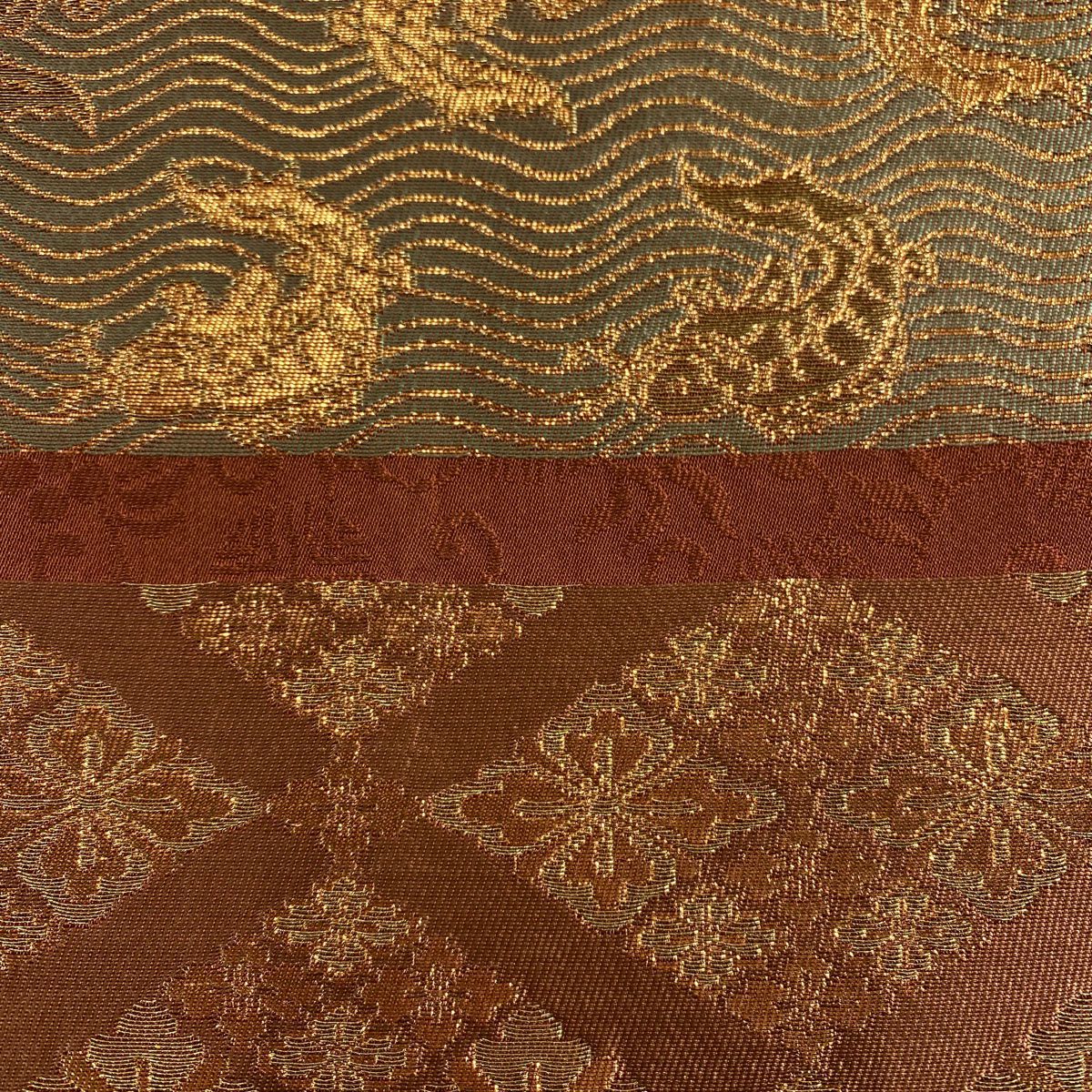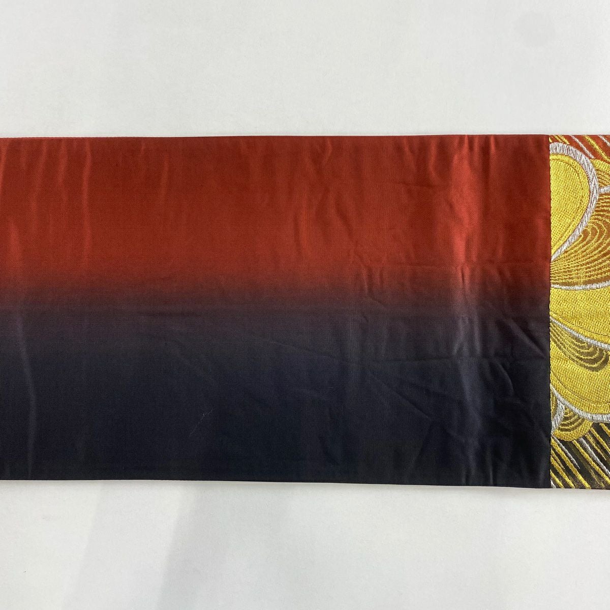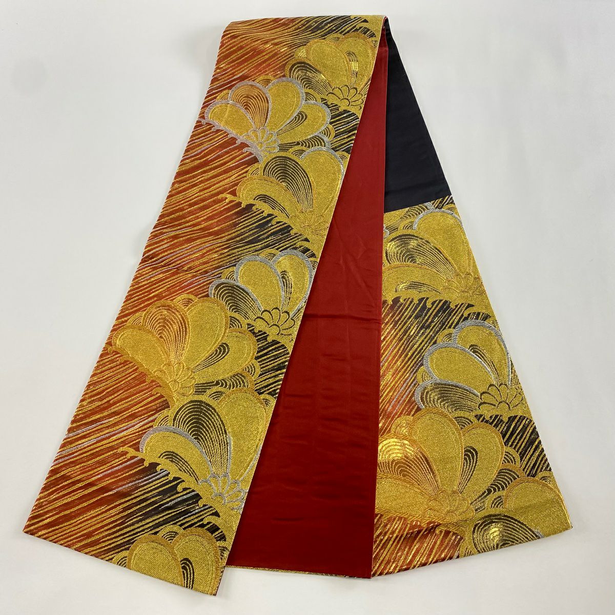 【在庫一掃】 【美品】 袋帯 秀品 花菱 荒磯 箔 赤茶 六通 正絹