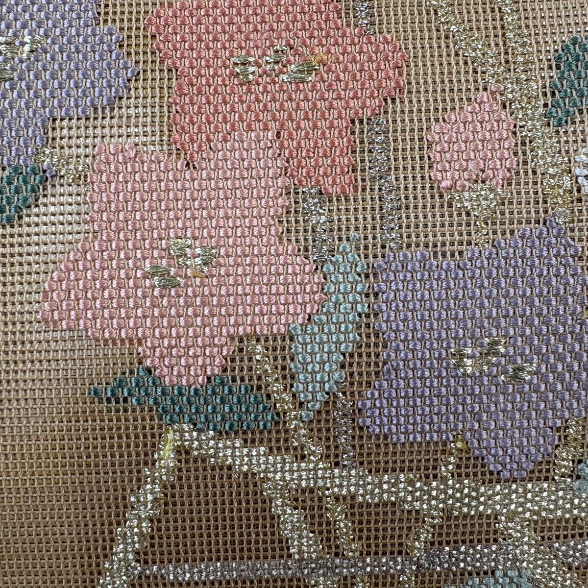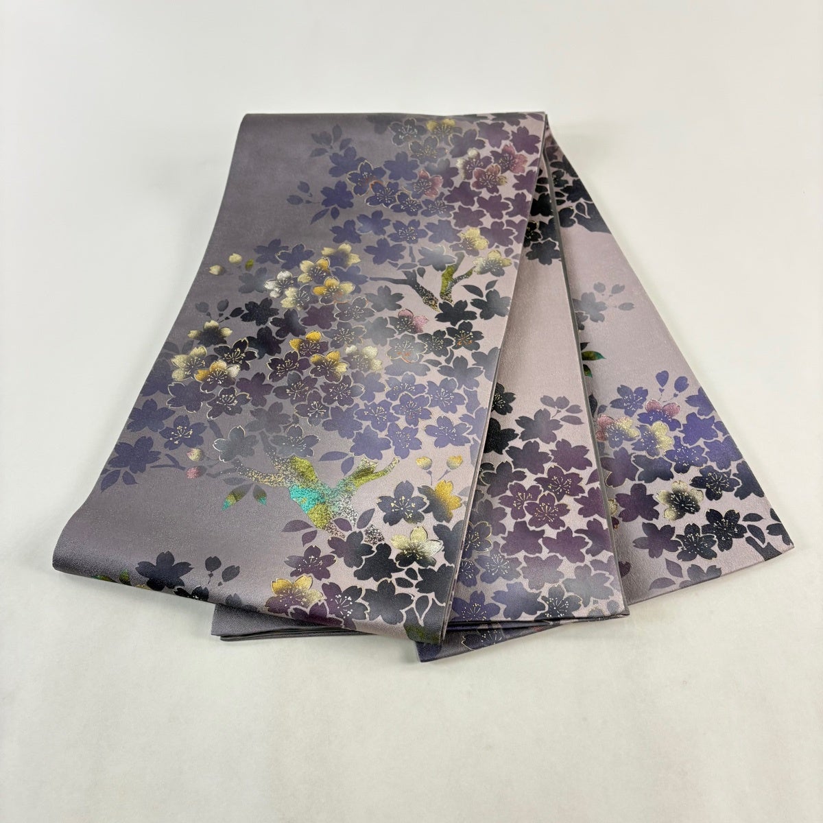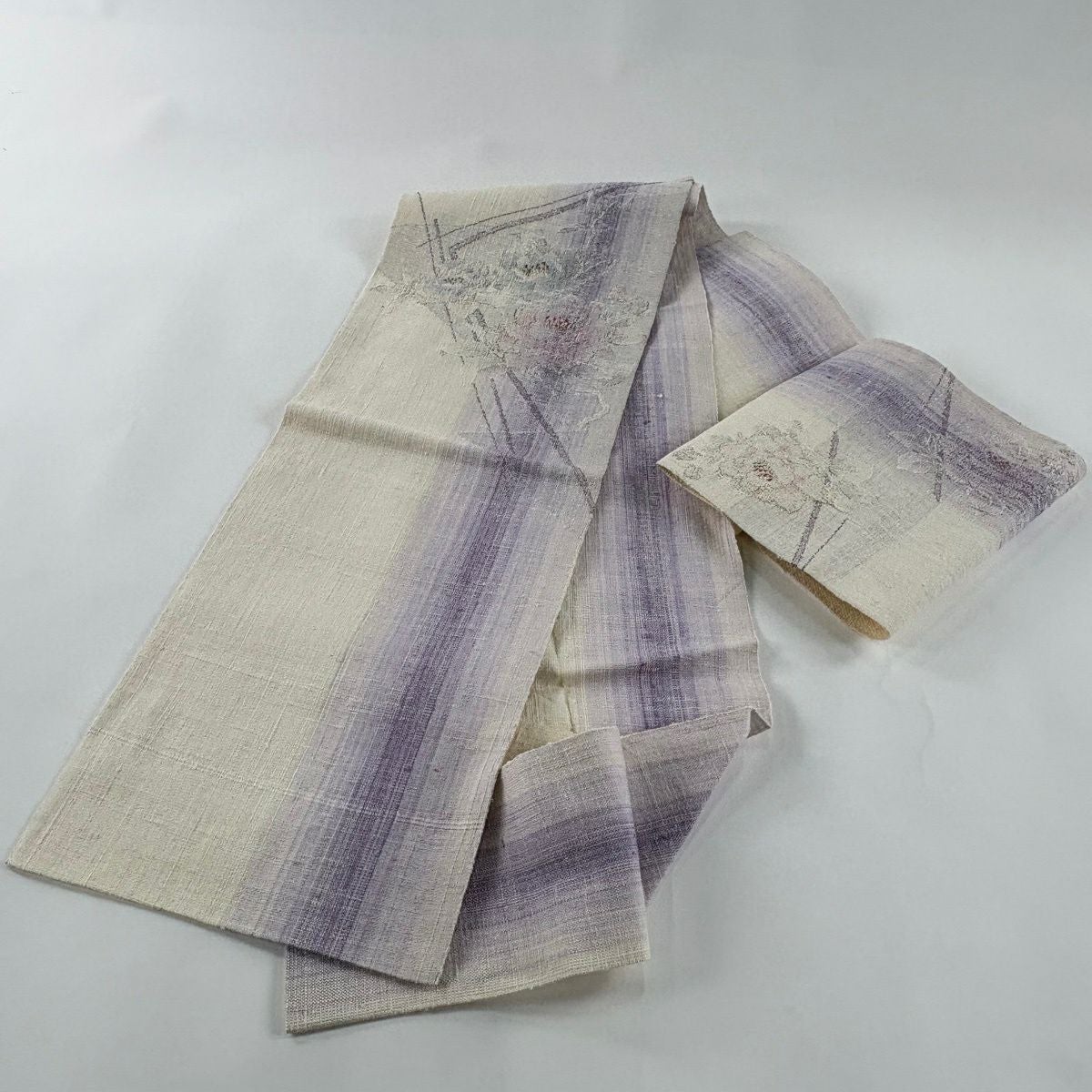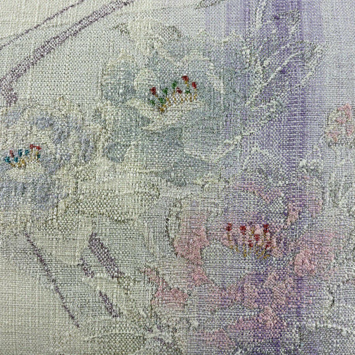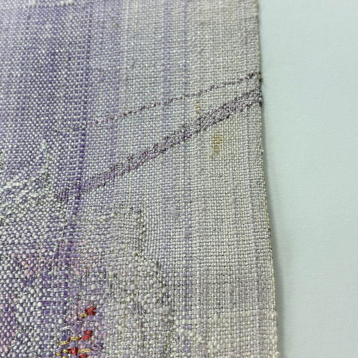 名古屋帯 秀品 八寸名古屋帯 松葉仕立て 草花 金銀糸 ラメ糸 薄紫 正絹