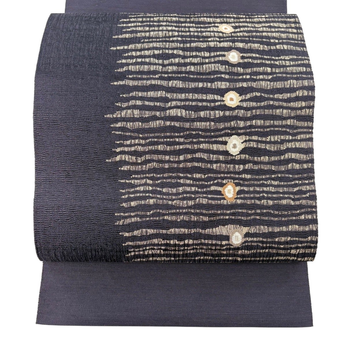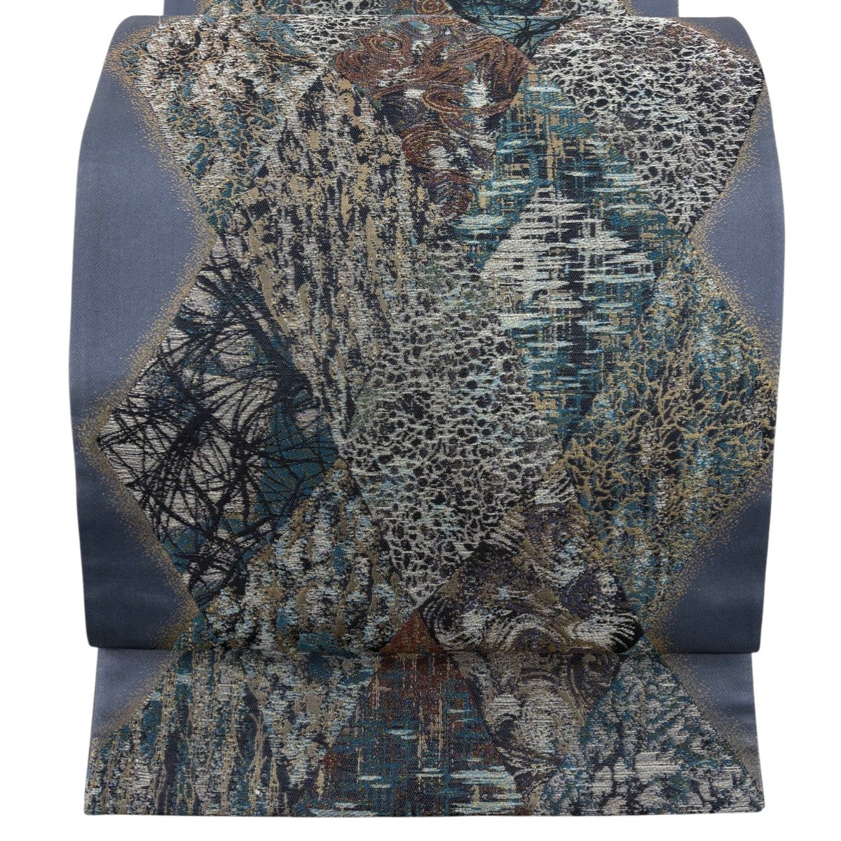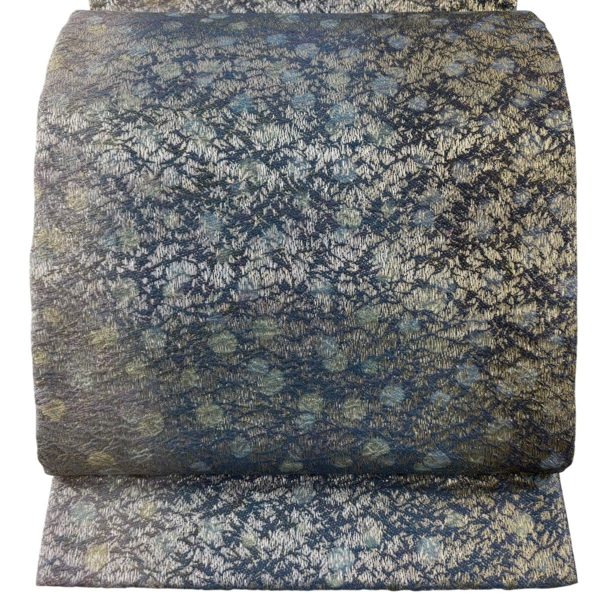 【美品】 袋帯 秀品 水玉 幾何学模様 金糸 箔 青灰色 全通 正絹