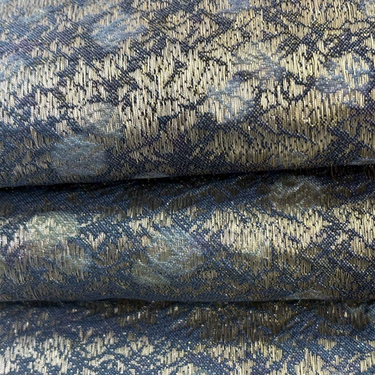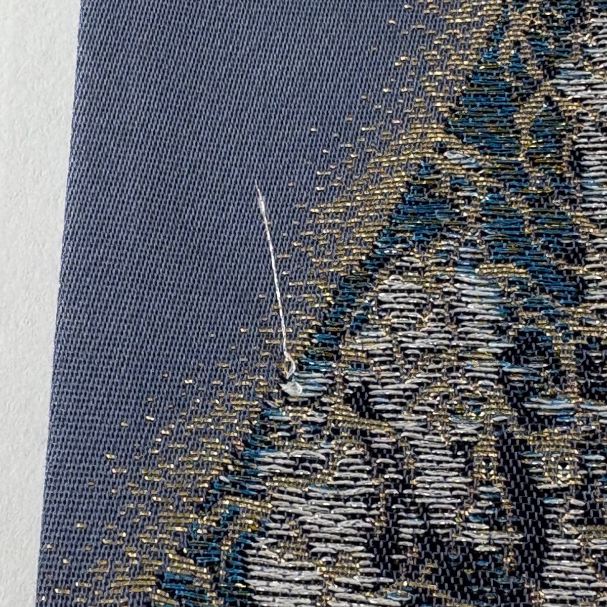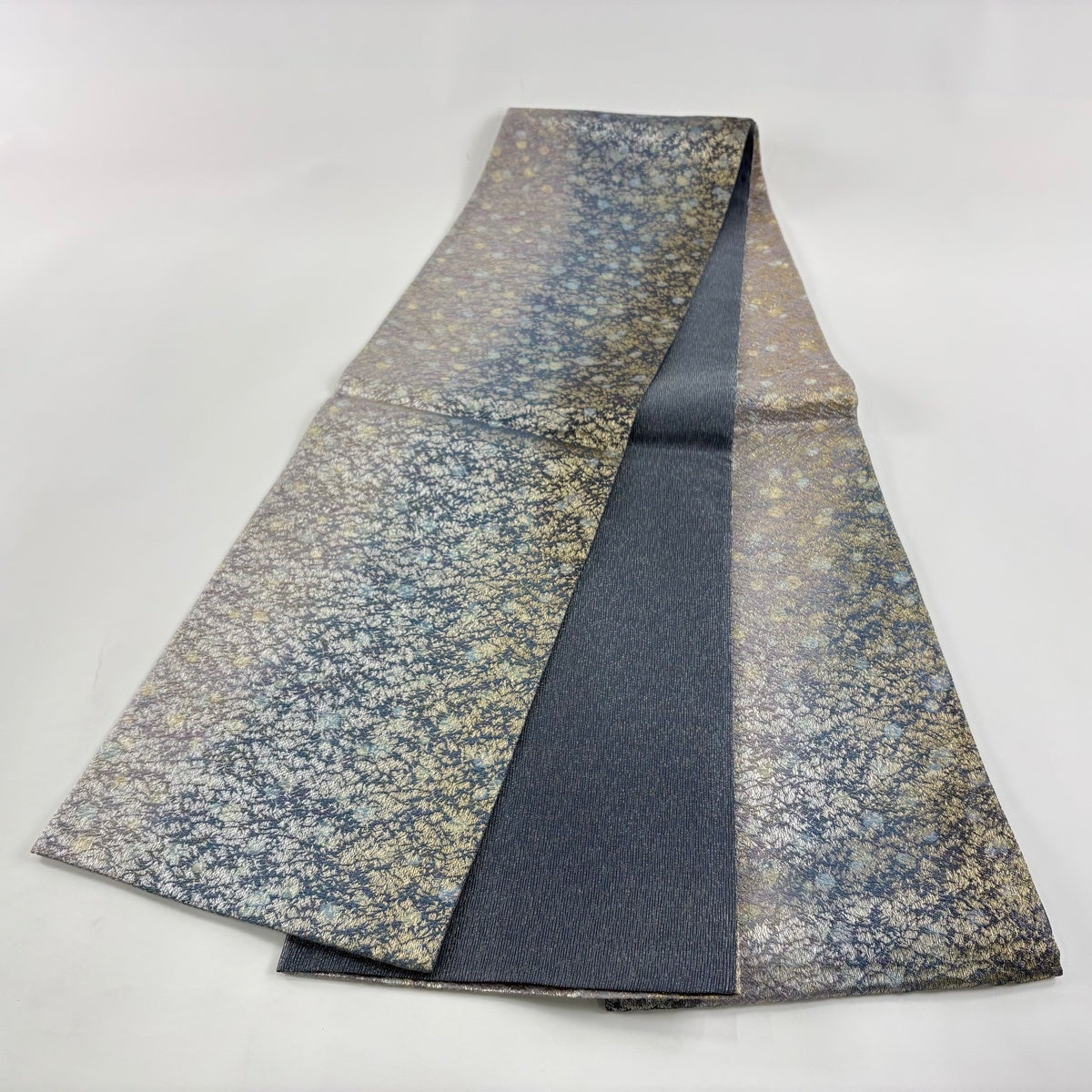 【美品】 袋帯 秀品 水玉 幾何学模様 金糸 箔 青灰色 全通 正絹