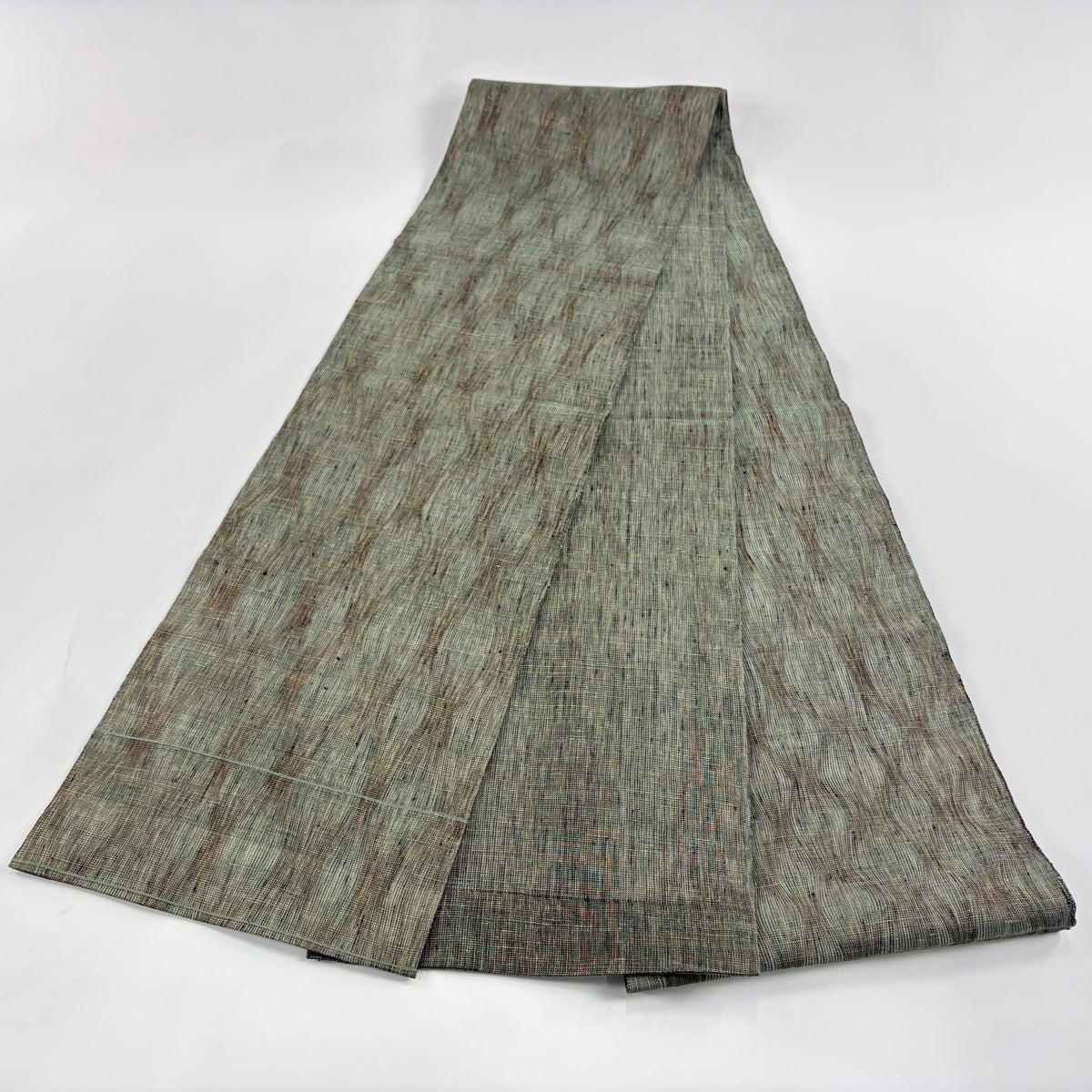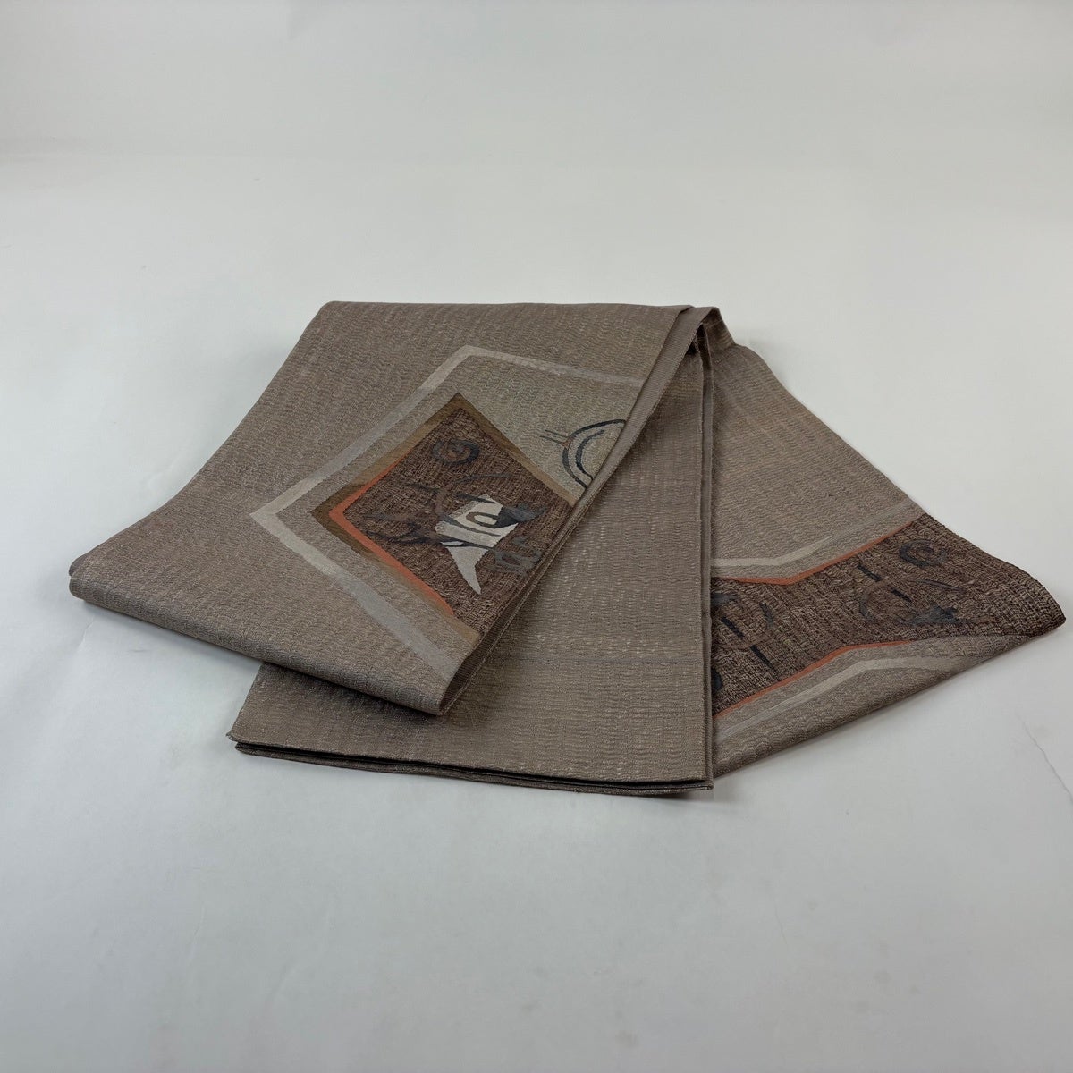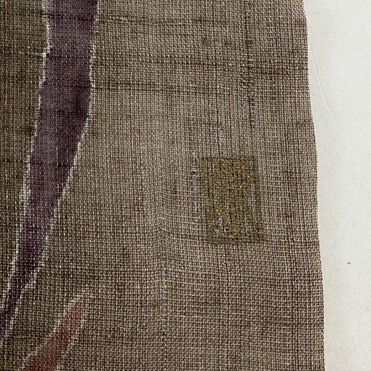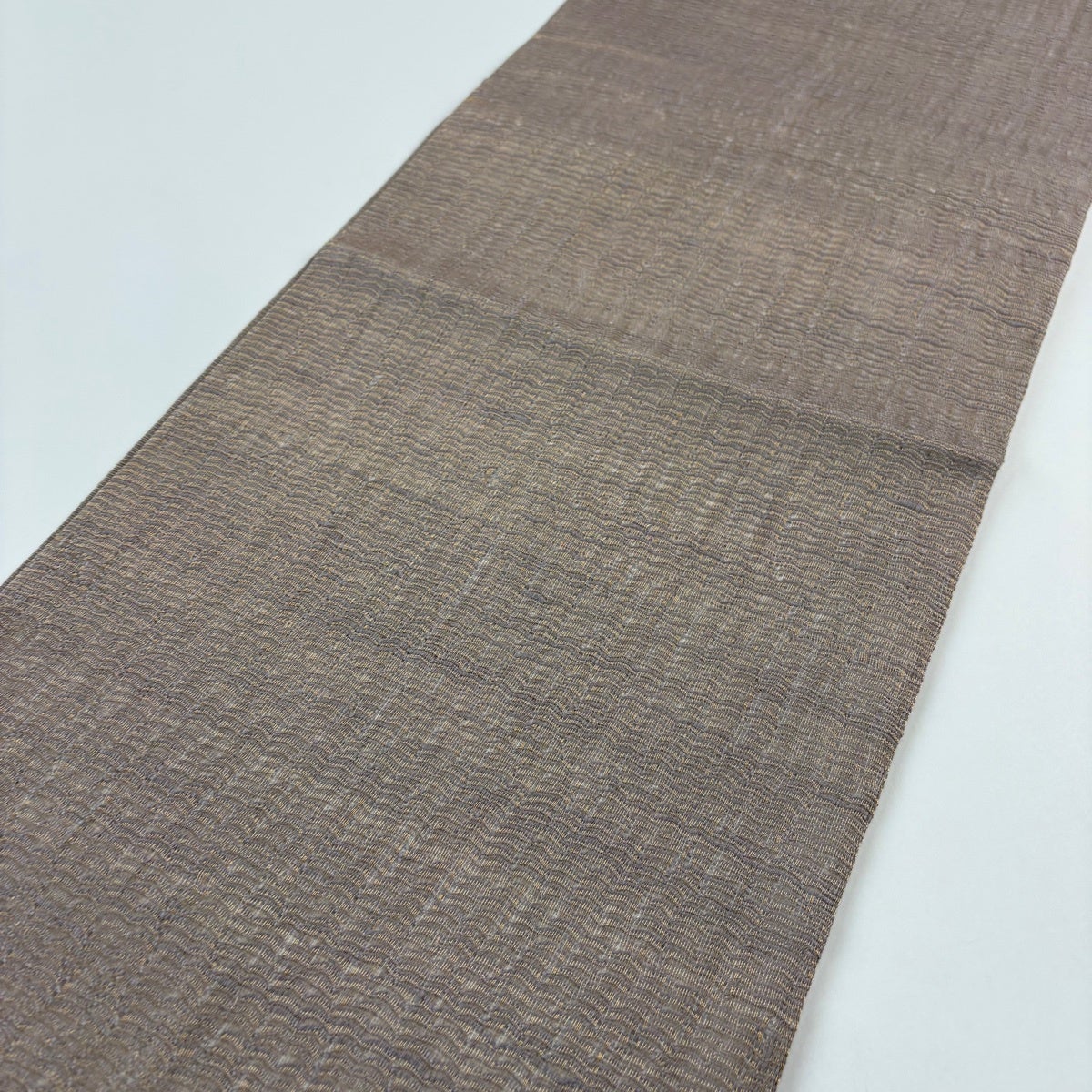 名古屋帯 秀品 落款あり 夏帯 紬地 幾何学模様 ぼかし 灰茶 正絹
