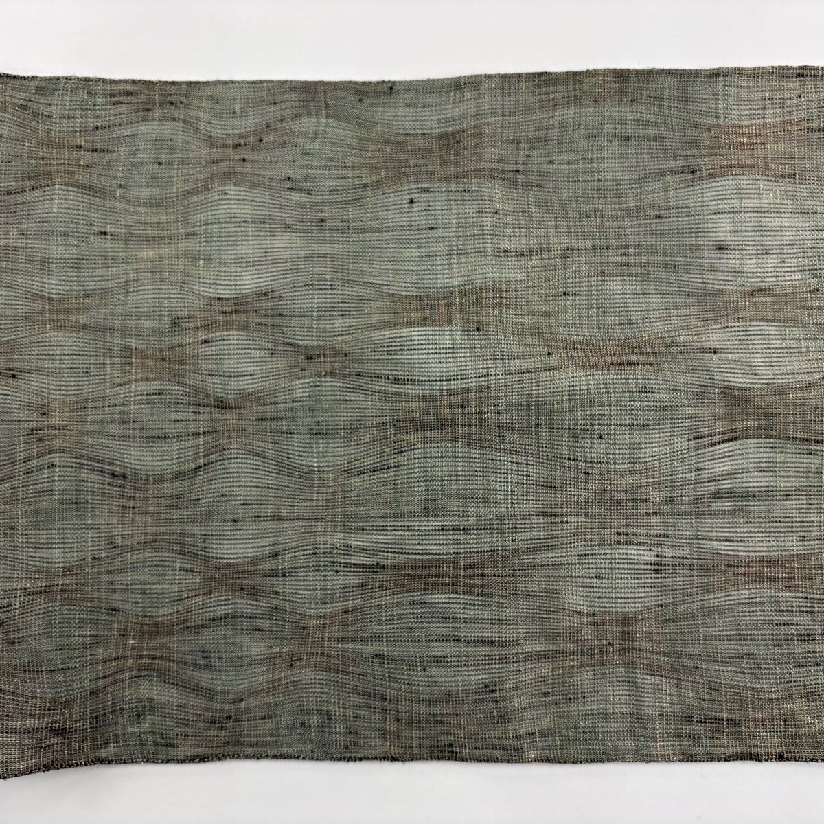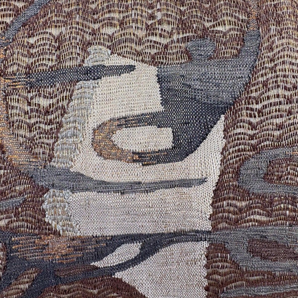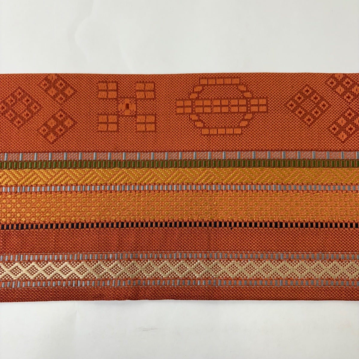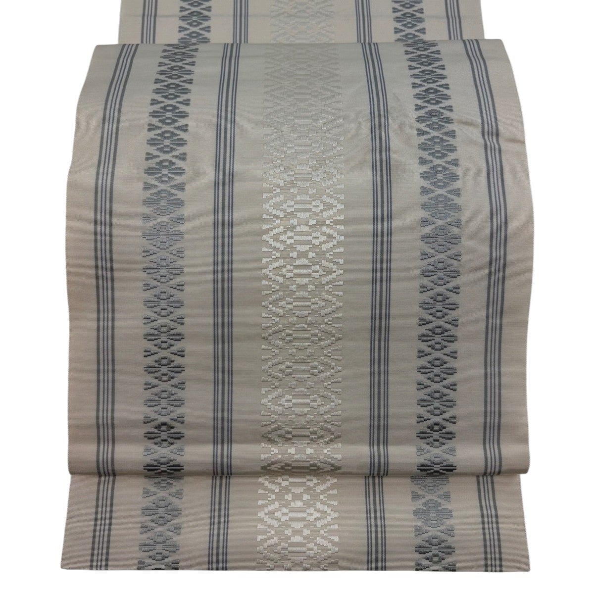 名古屋帯 秀品 落款あり 夏帯 紬地 幾何学模様 ぼかし 灰茶 正絹