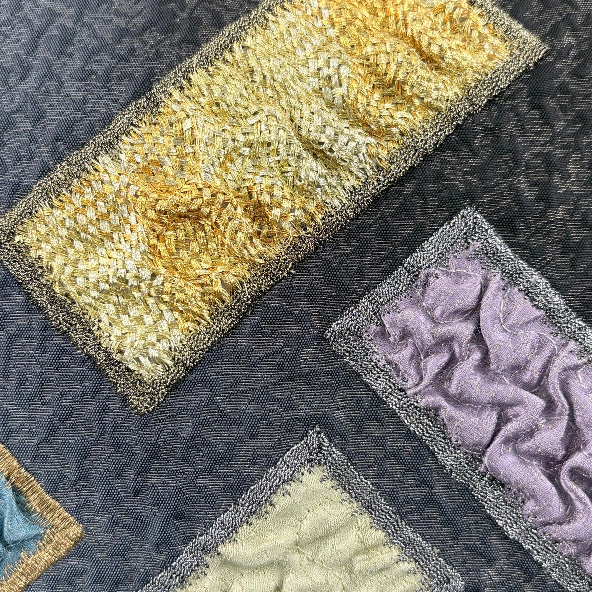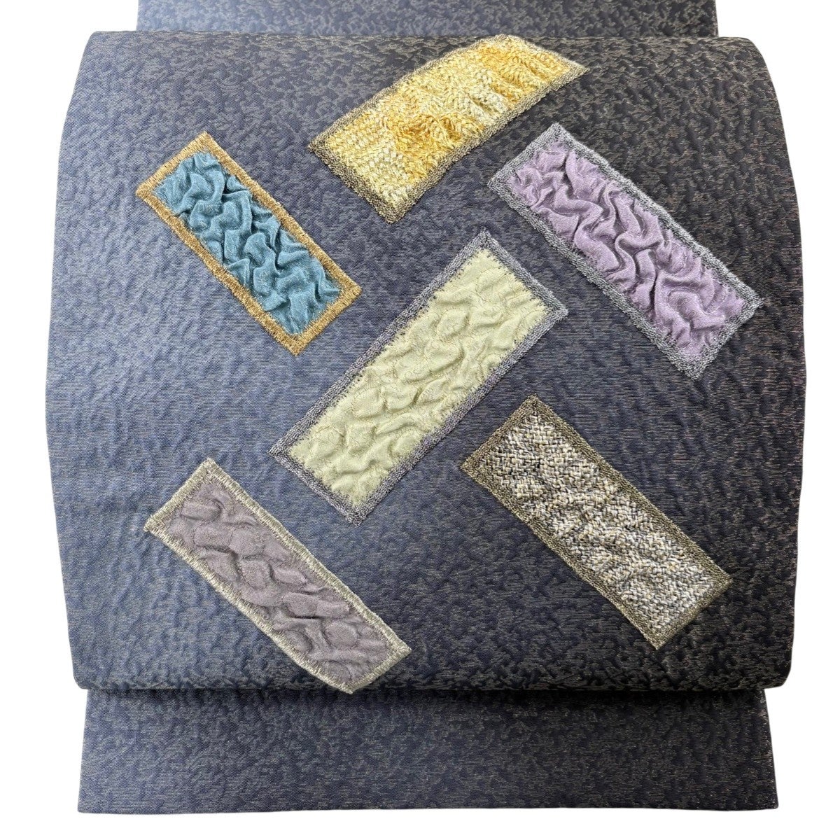 【美品】 袋帯 秀品 短冊 幾何学模様 金銀糸 濃紺 お太鼓柄 正絹
