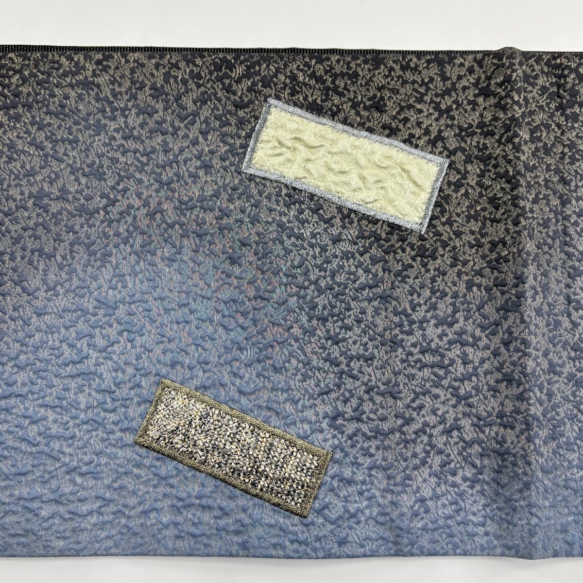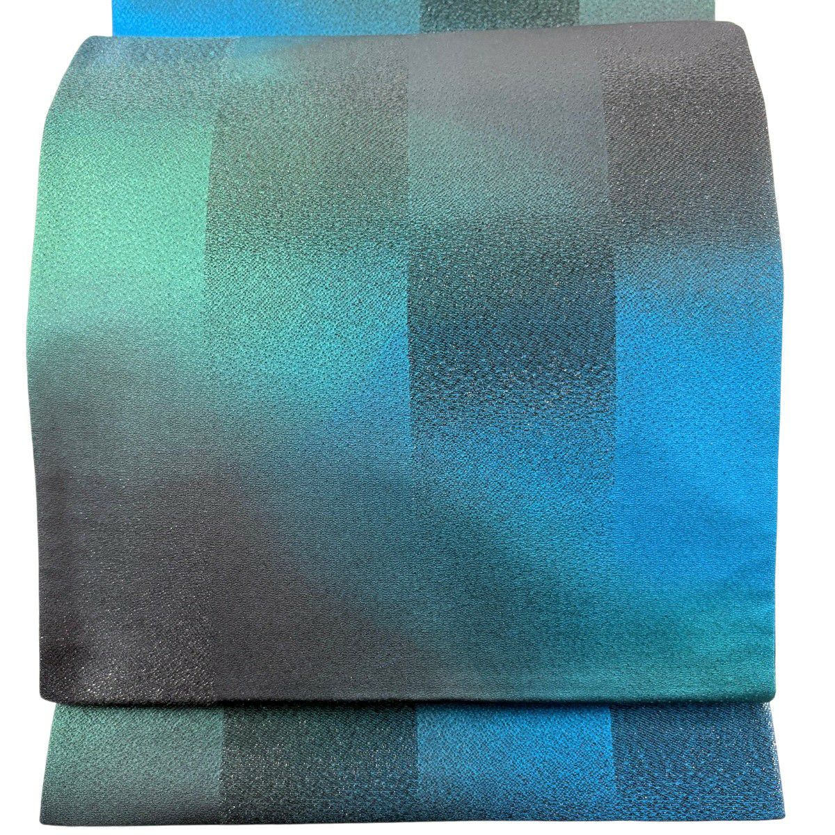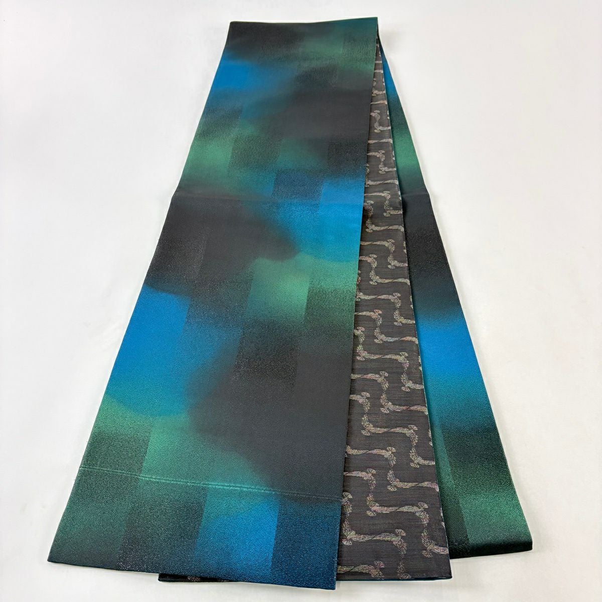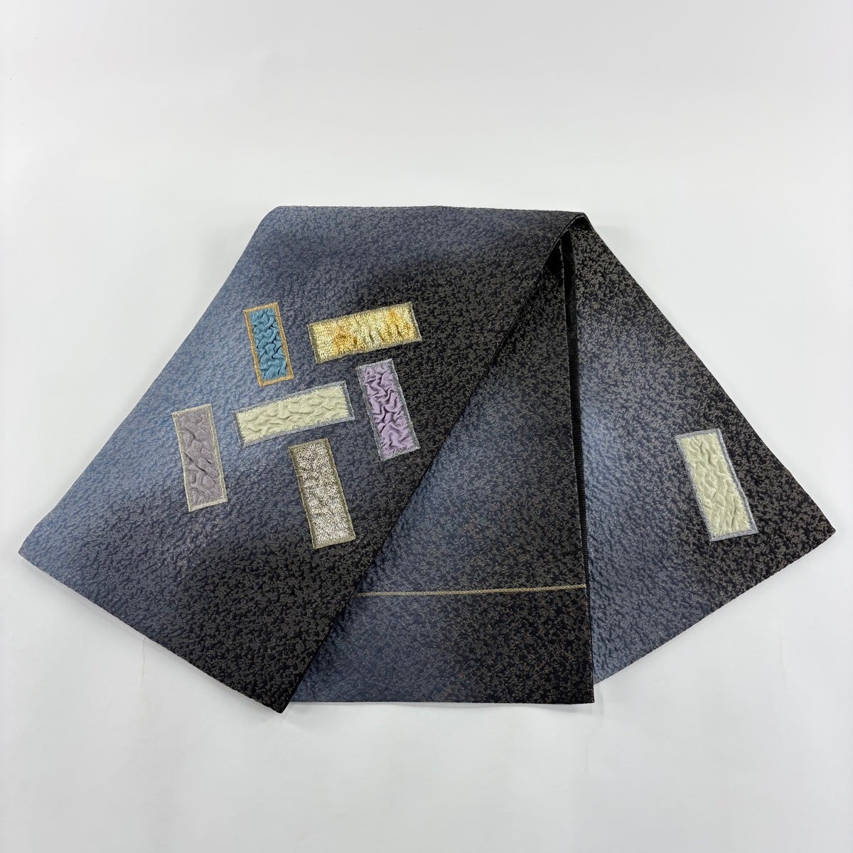 【美品】 袋帯 秀品 変わり市松 幾何学 箔 ぼかし 黒 全通 正絹