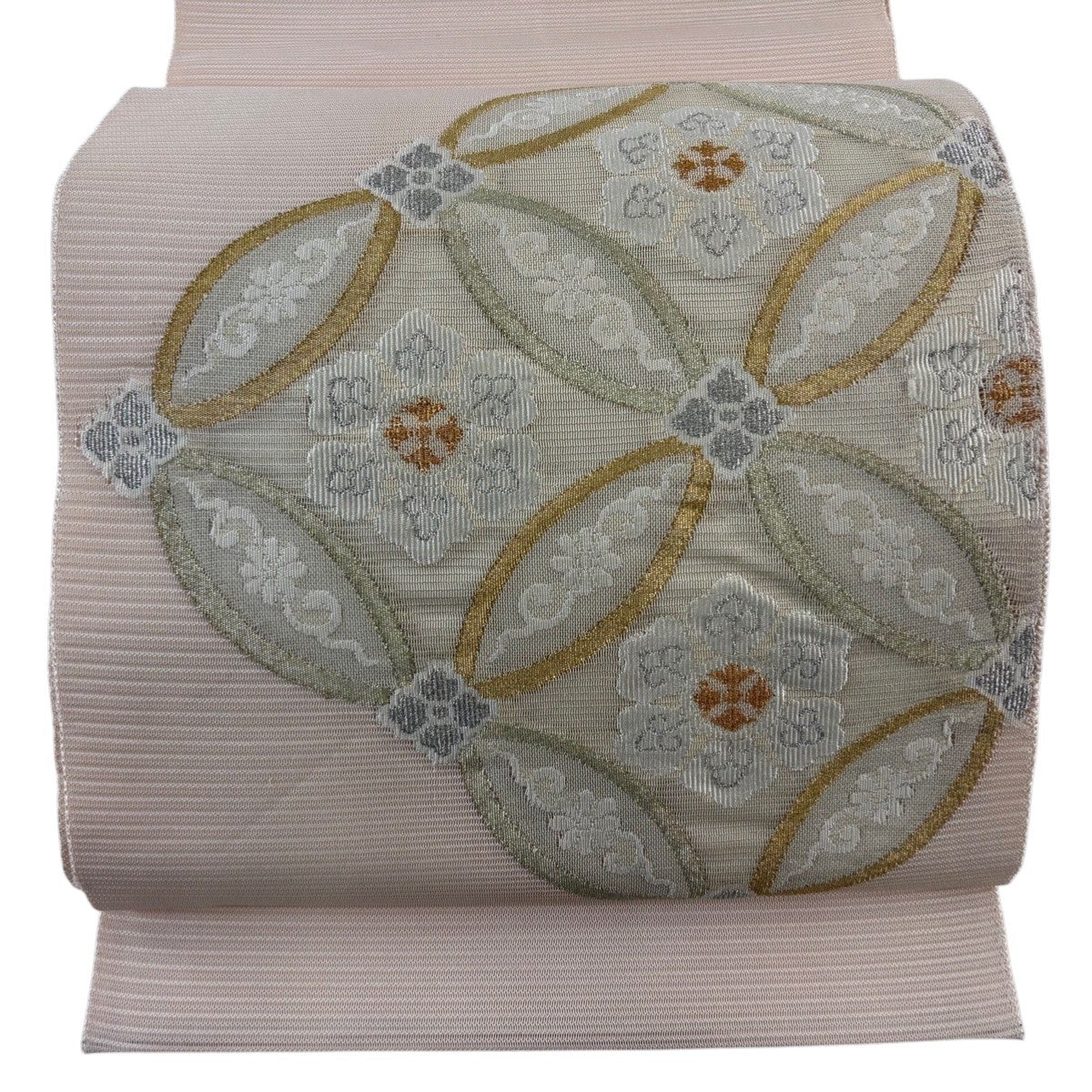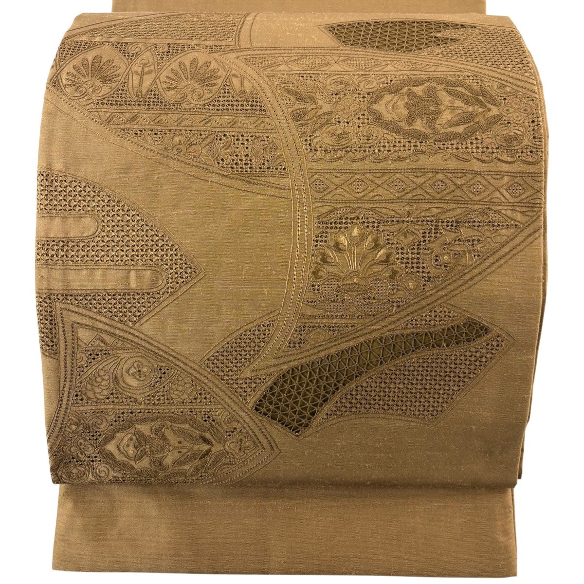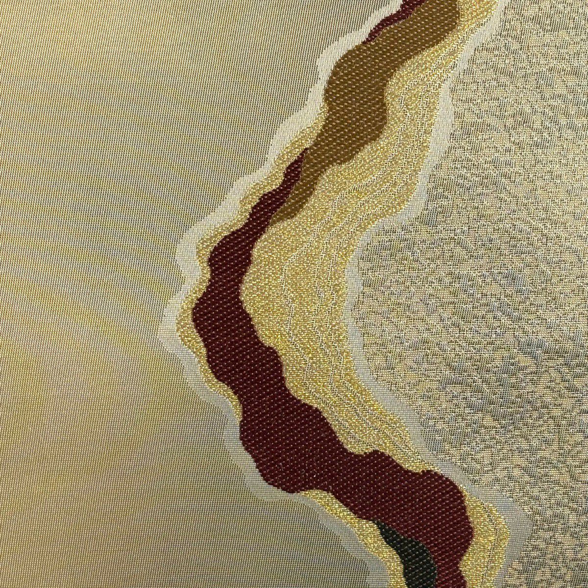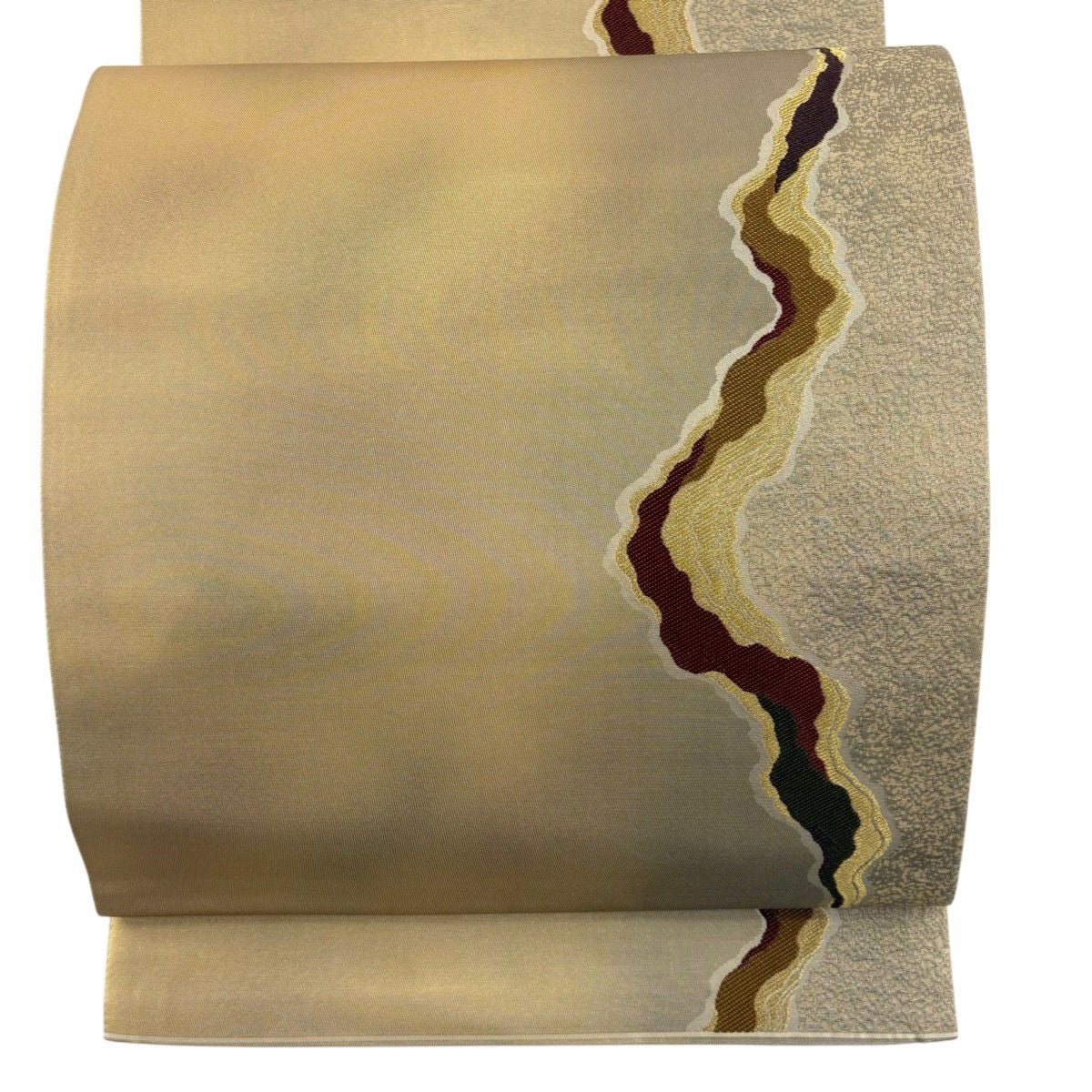 【美品】 袋帯 秀品 幾何学模様 金糸 箔 ベージュ 六通 正絹