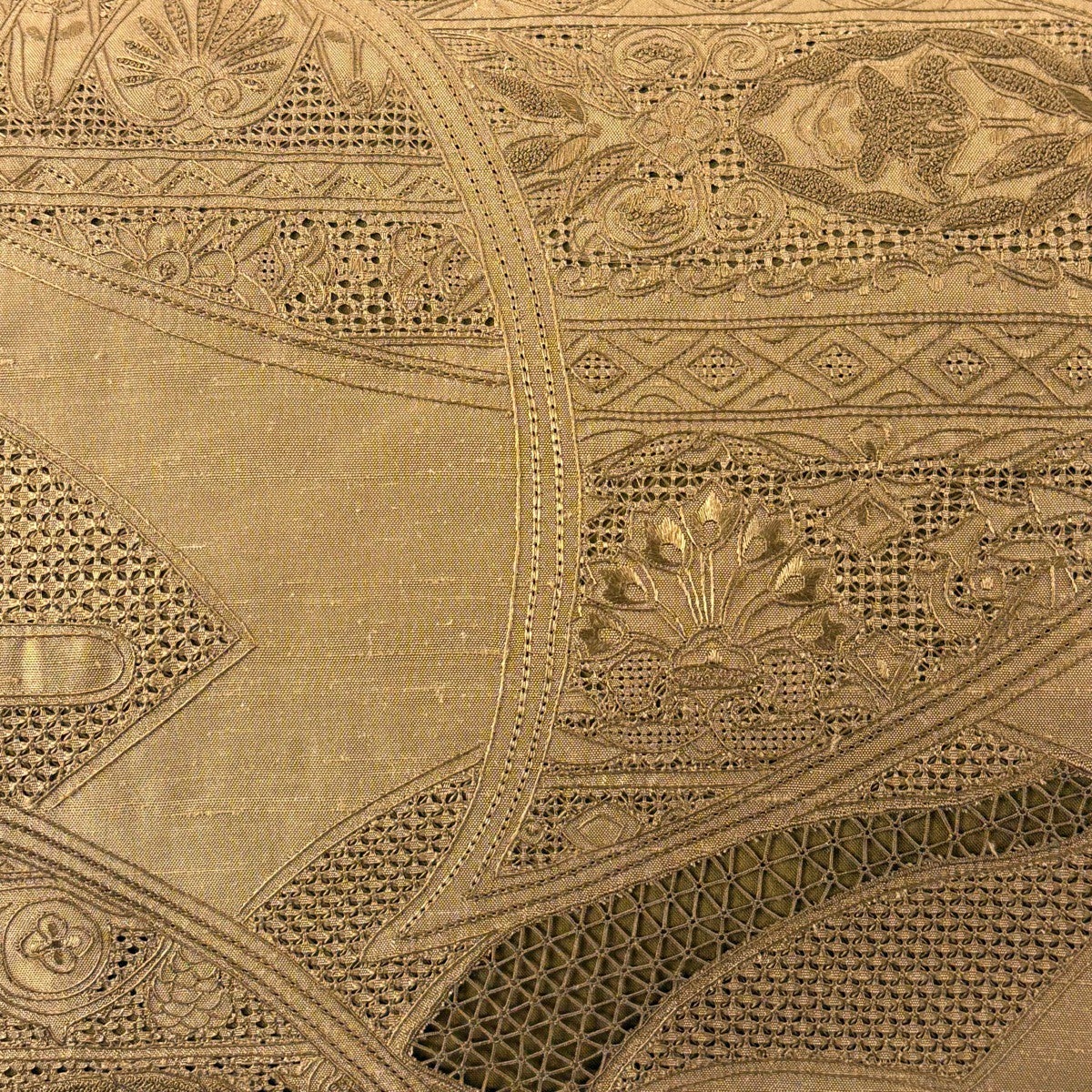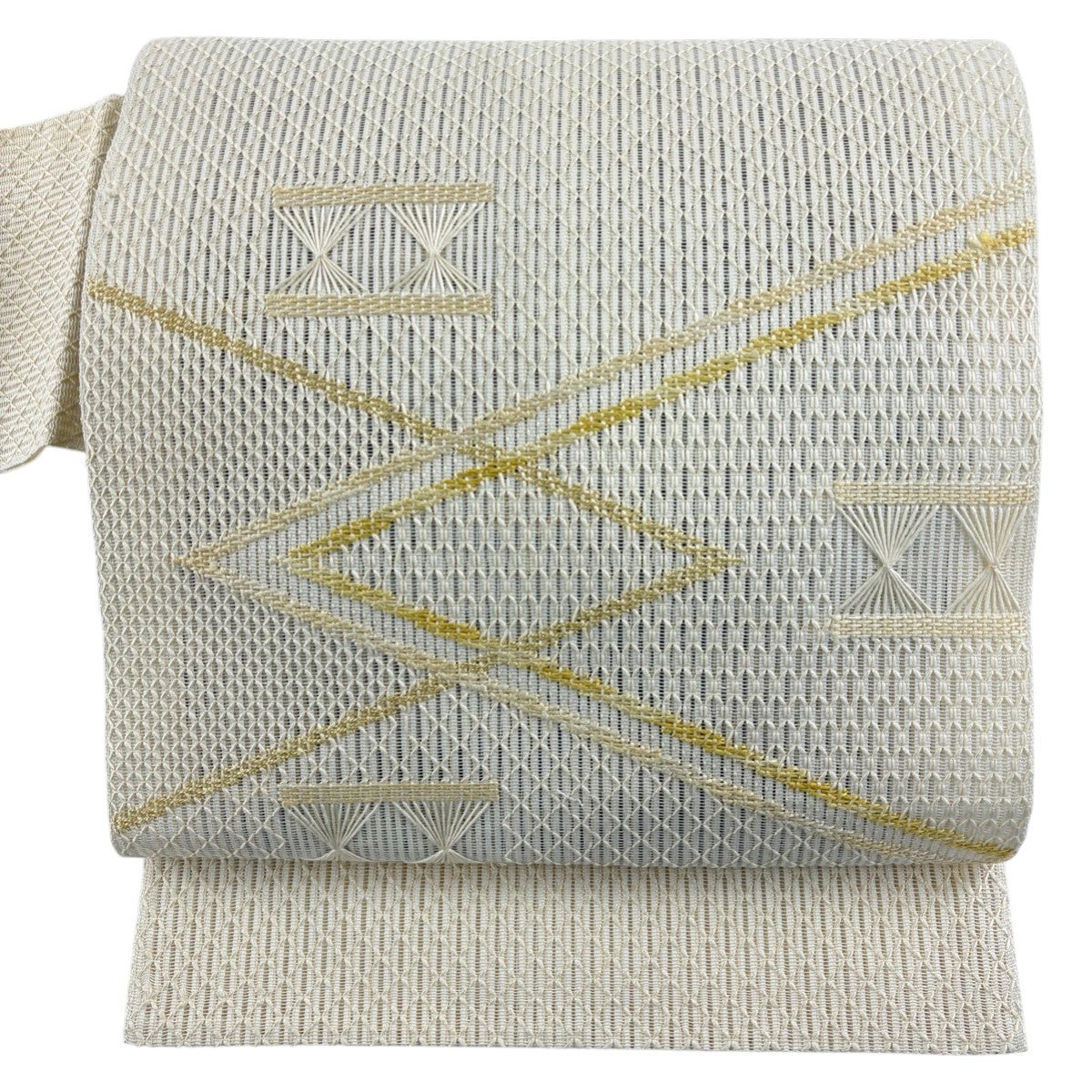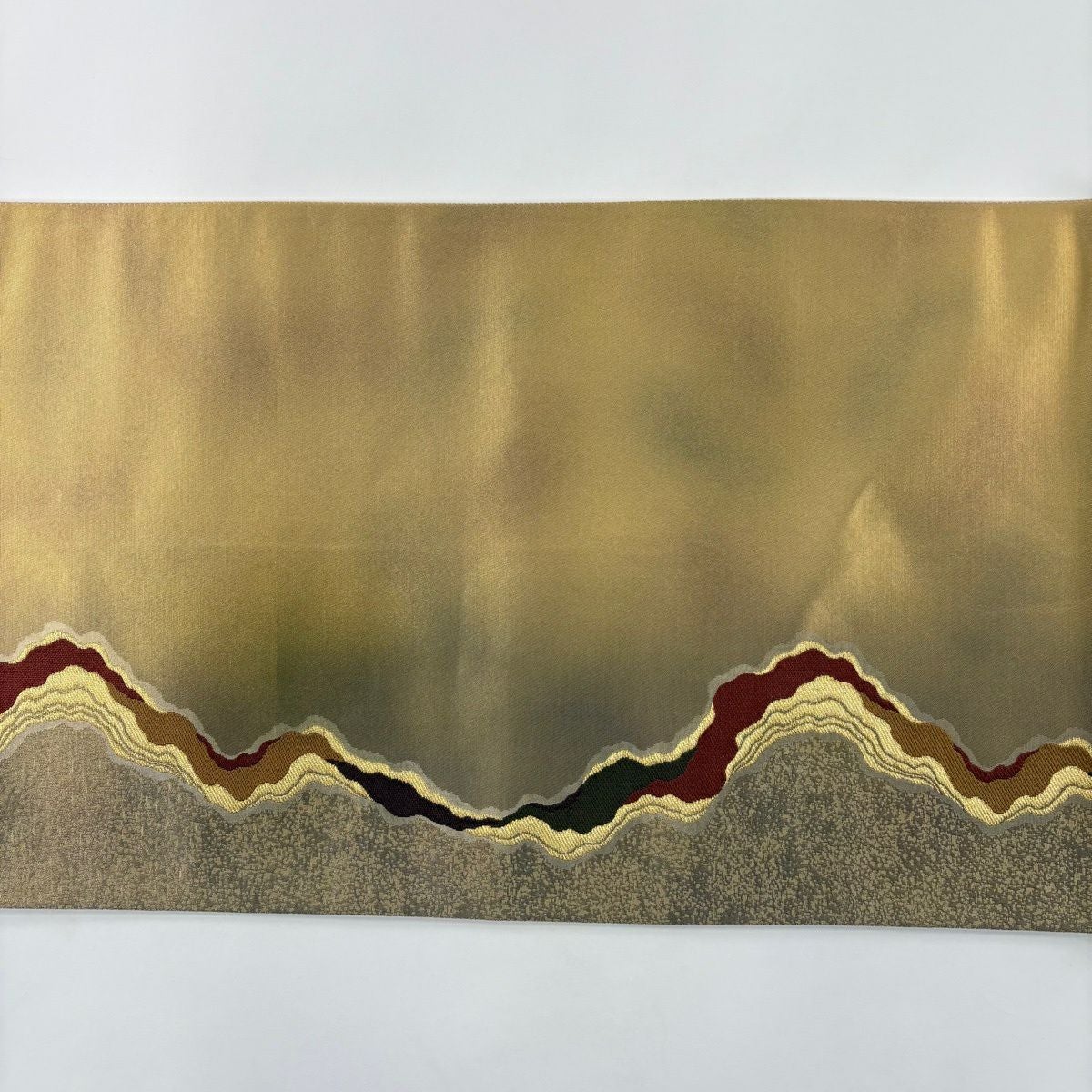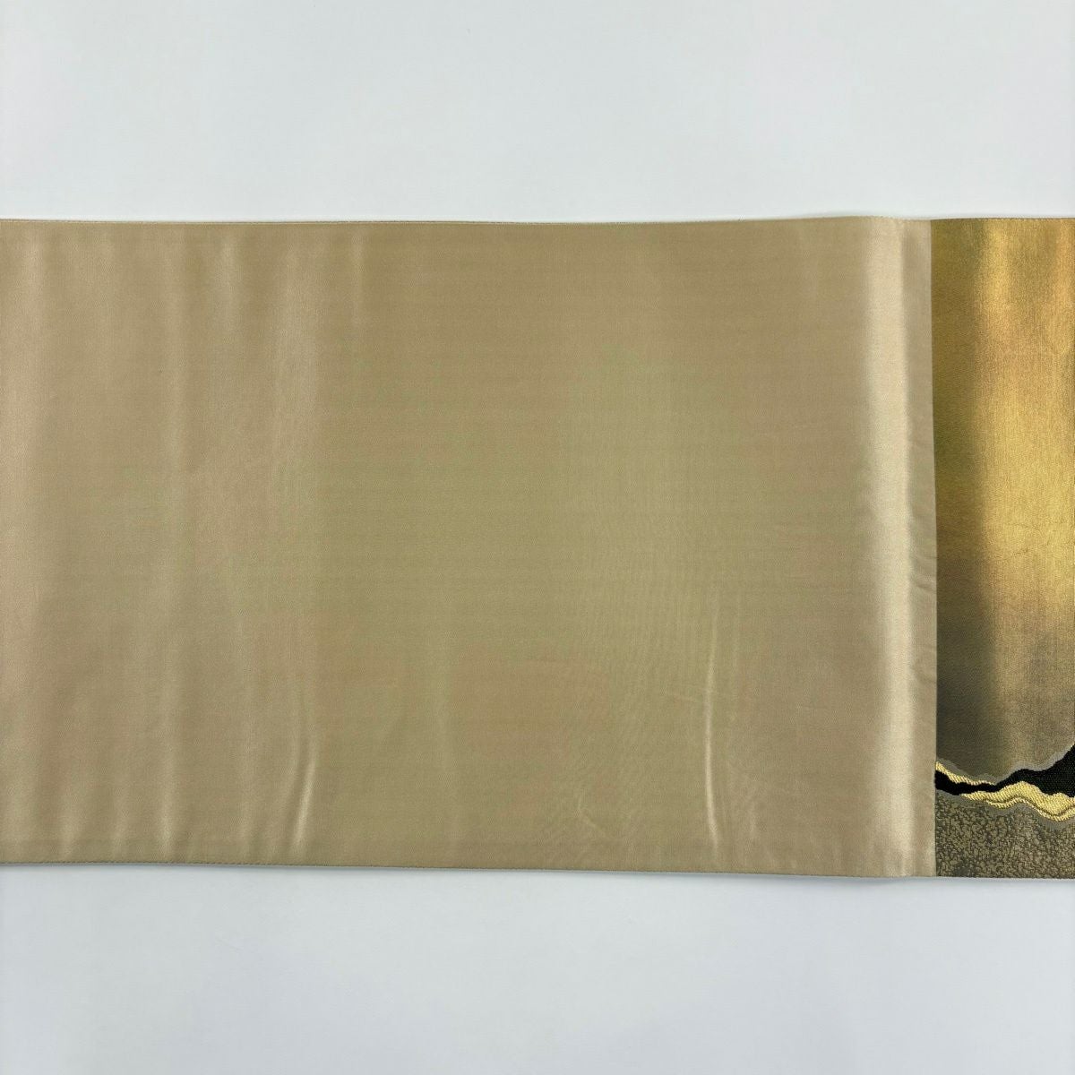 【美品】 袋帯 秀品 幾何学模様 金糸 箔 ベージュ 六通 正絹