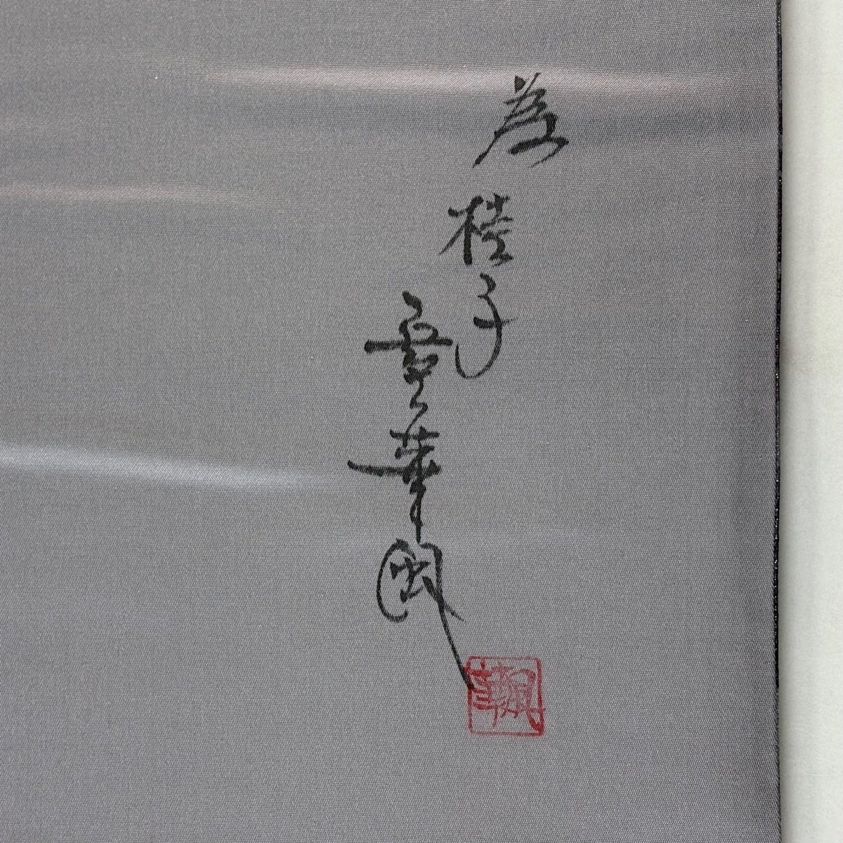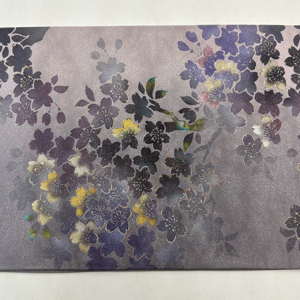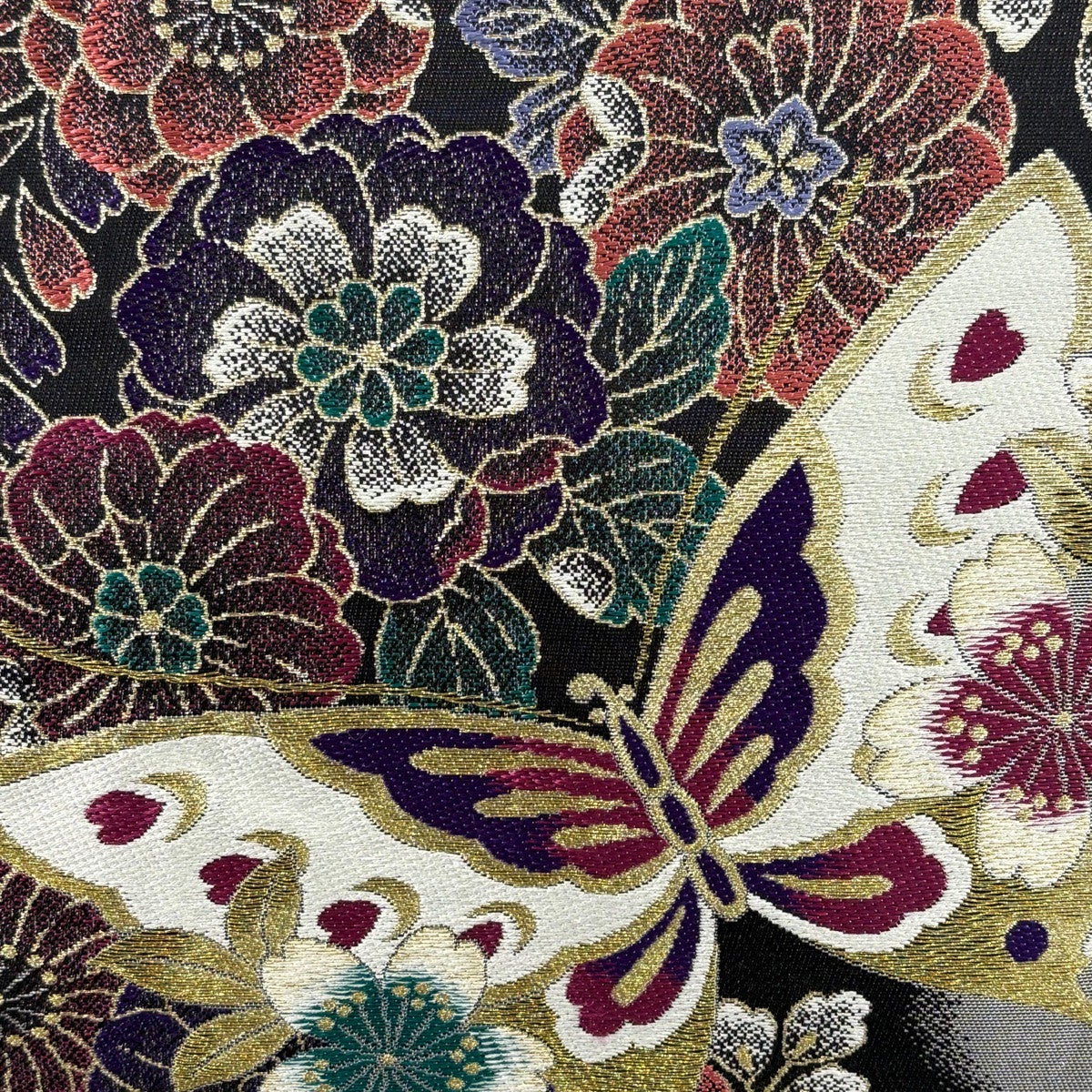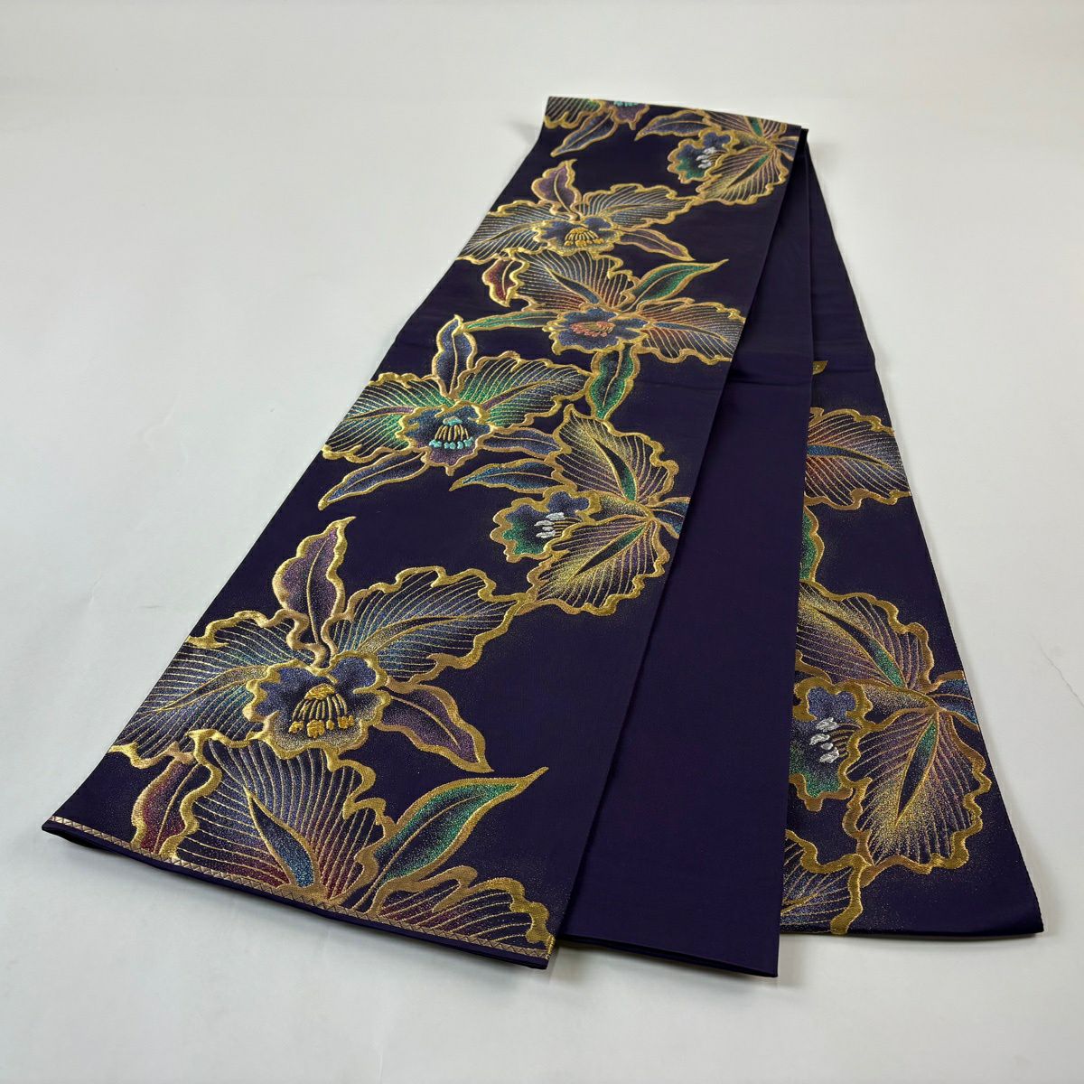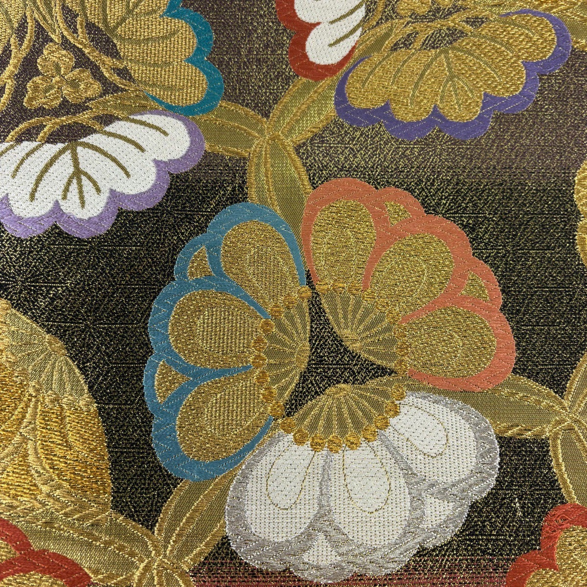 【美品】 袋帯 秀品 じゅらく 落款あり 花 金糸 濃紫 六通 正絹