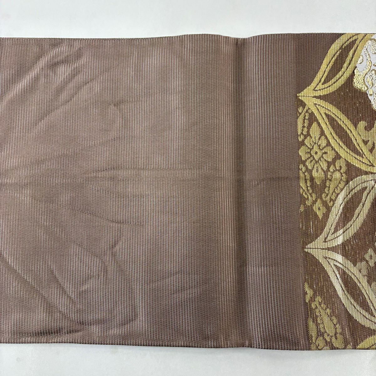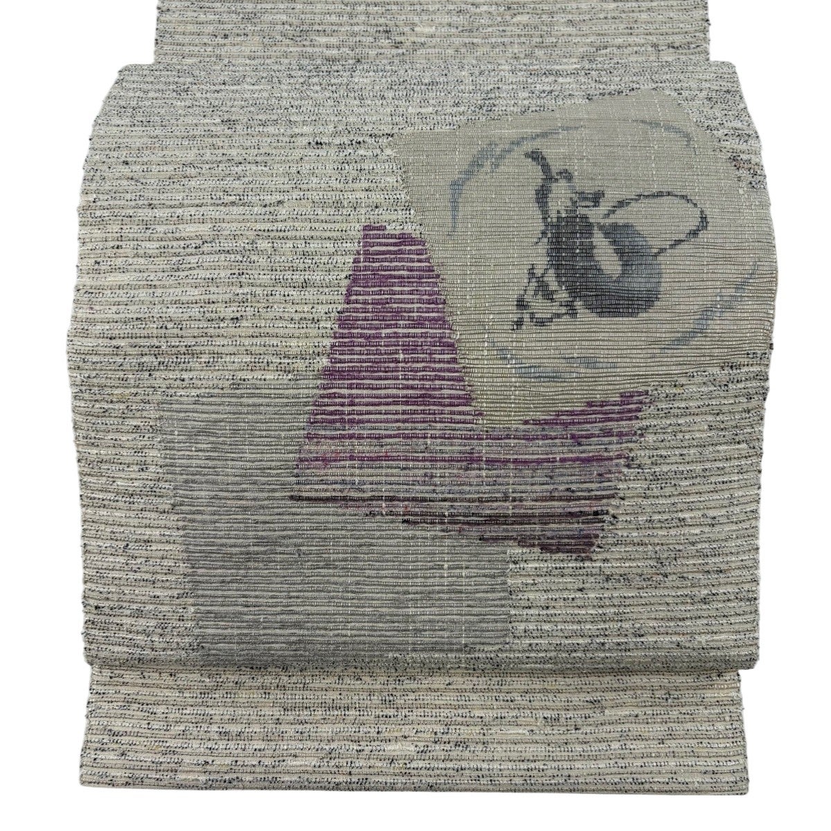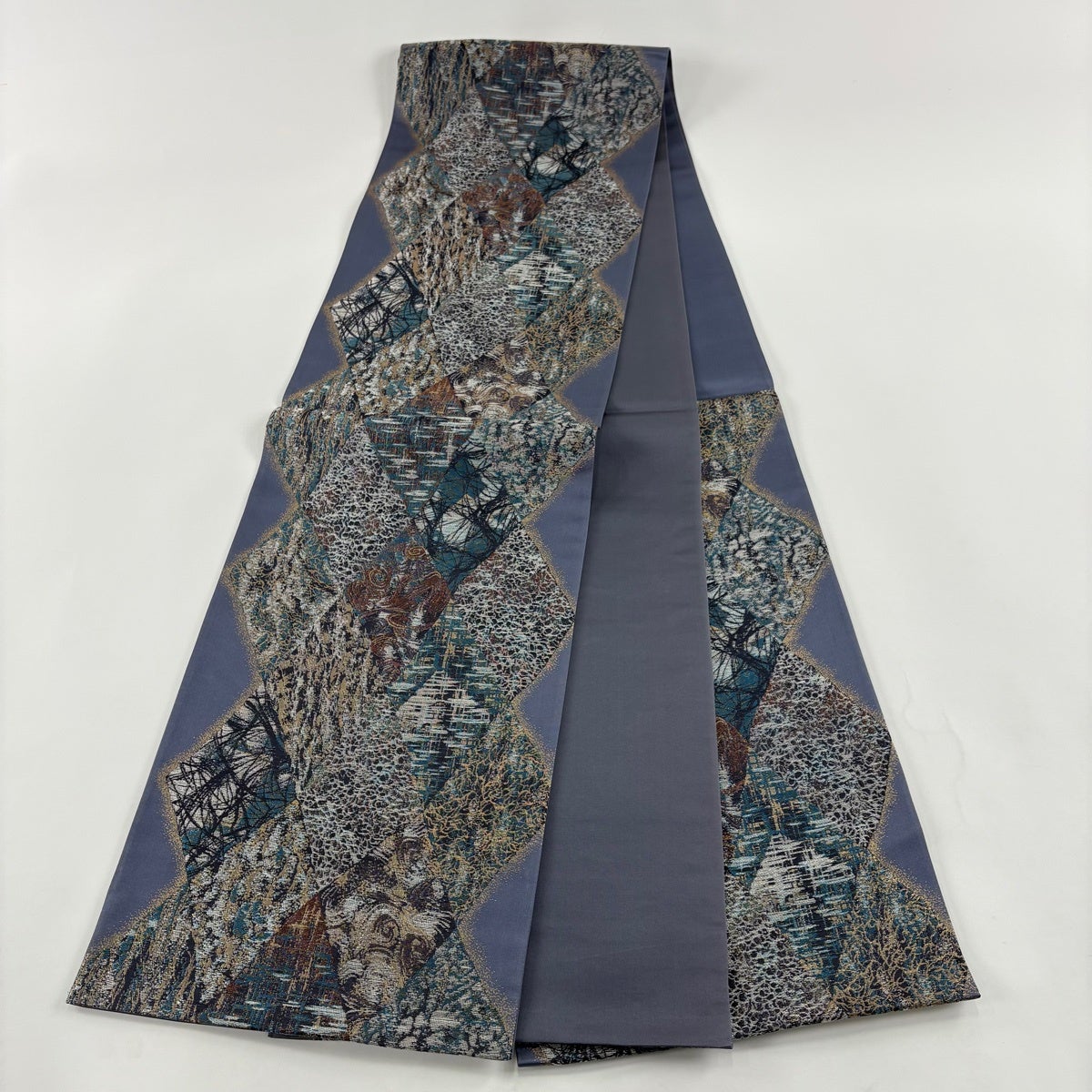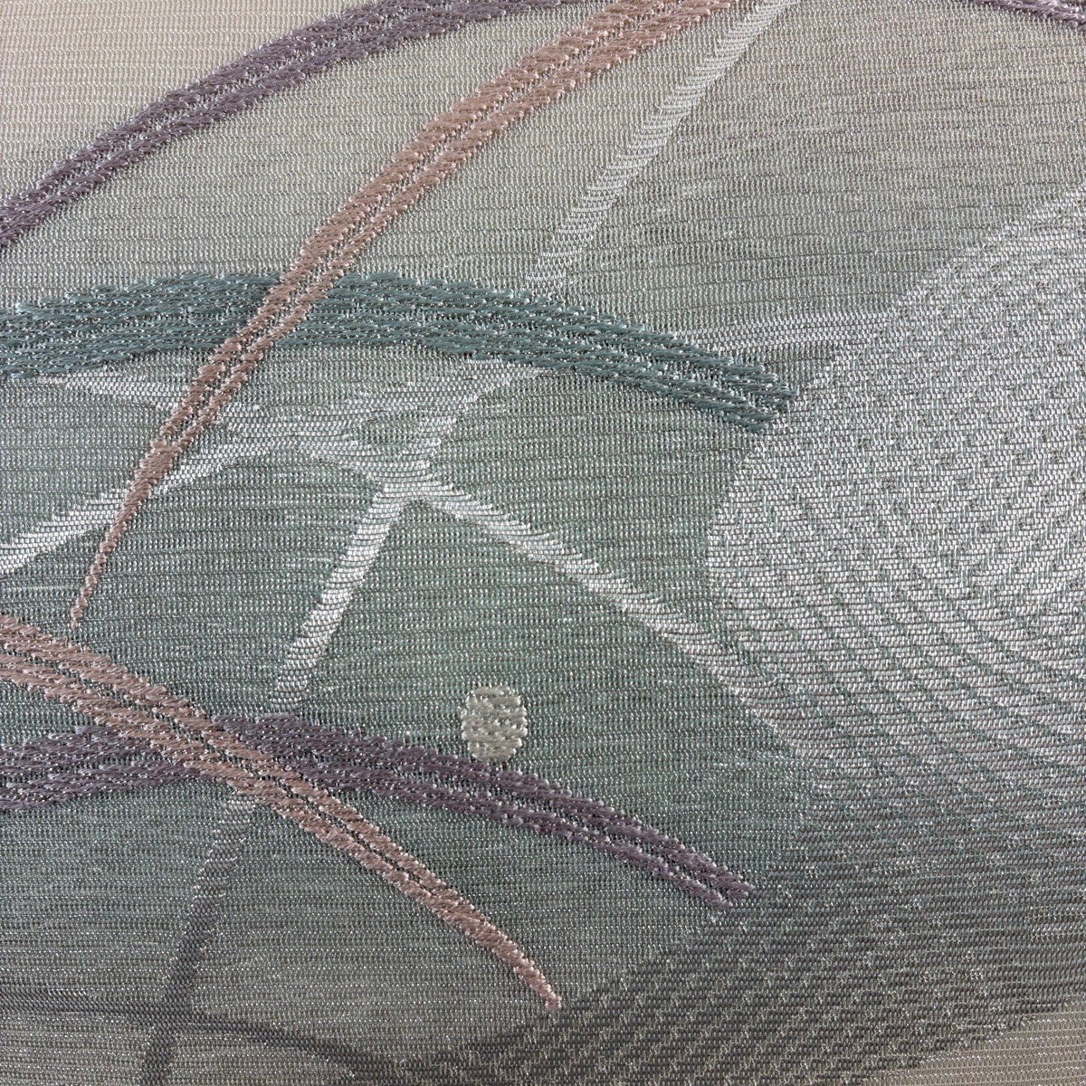 【美品】 袋帯 秀品 夏帯 幾何学模様 金通し 灰紫 お太鼓柄 正絹