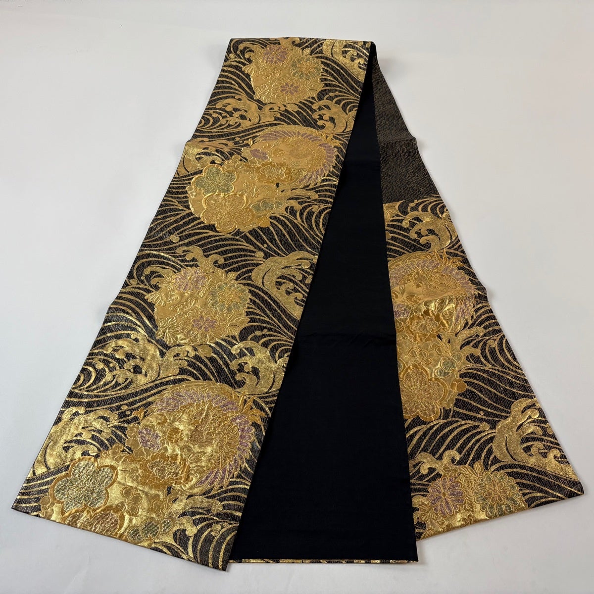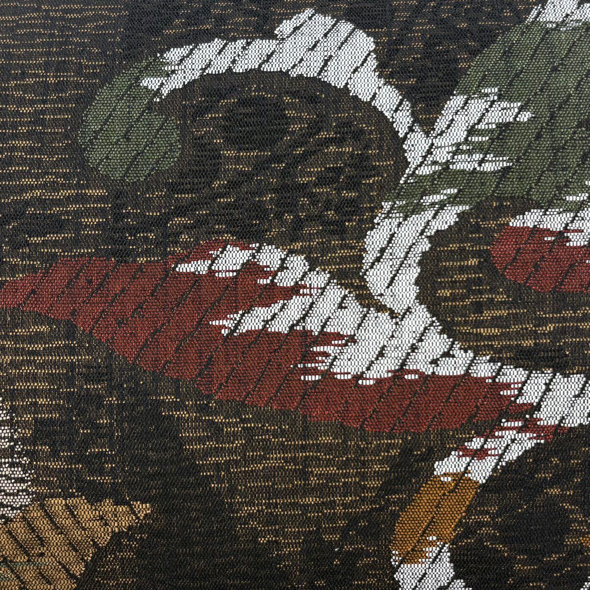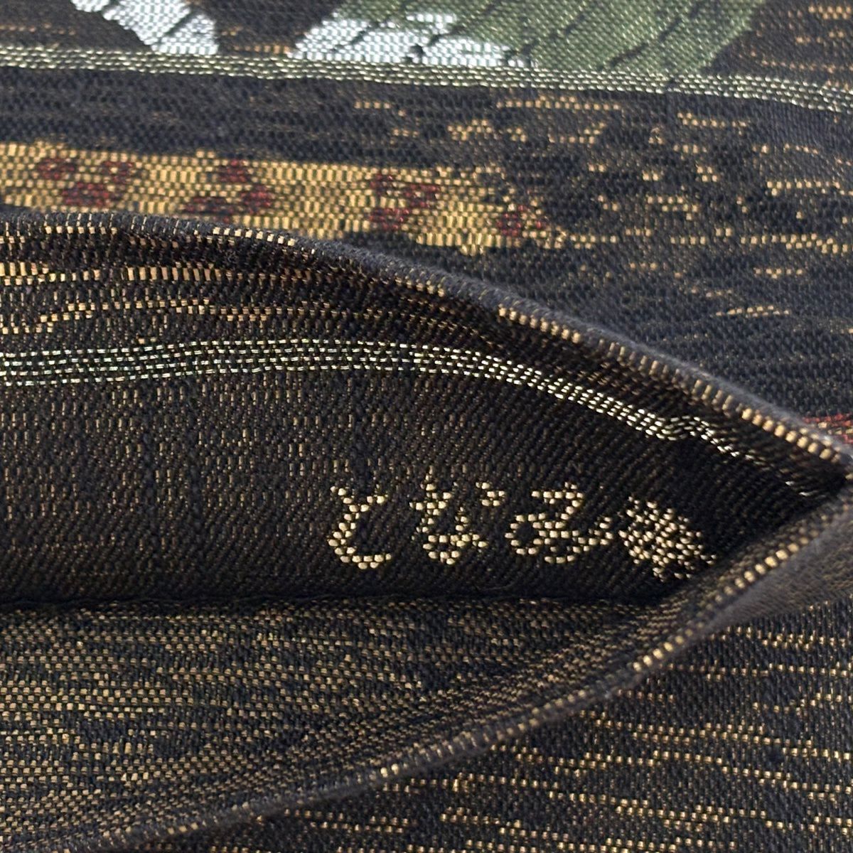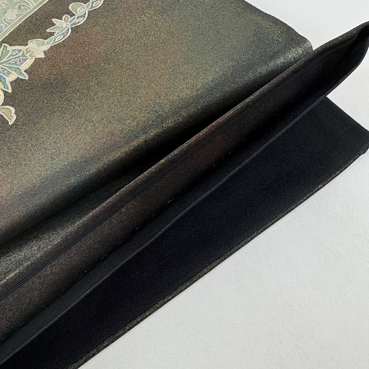 【美品】 袋帯 秀品 となみ織物 落款あり 唐草 箔 黒 六通 正絹