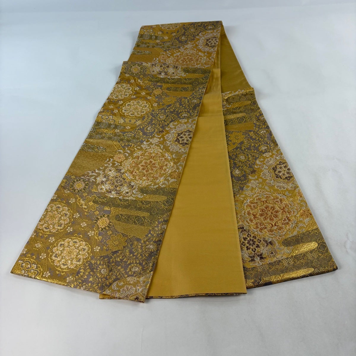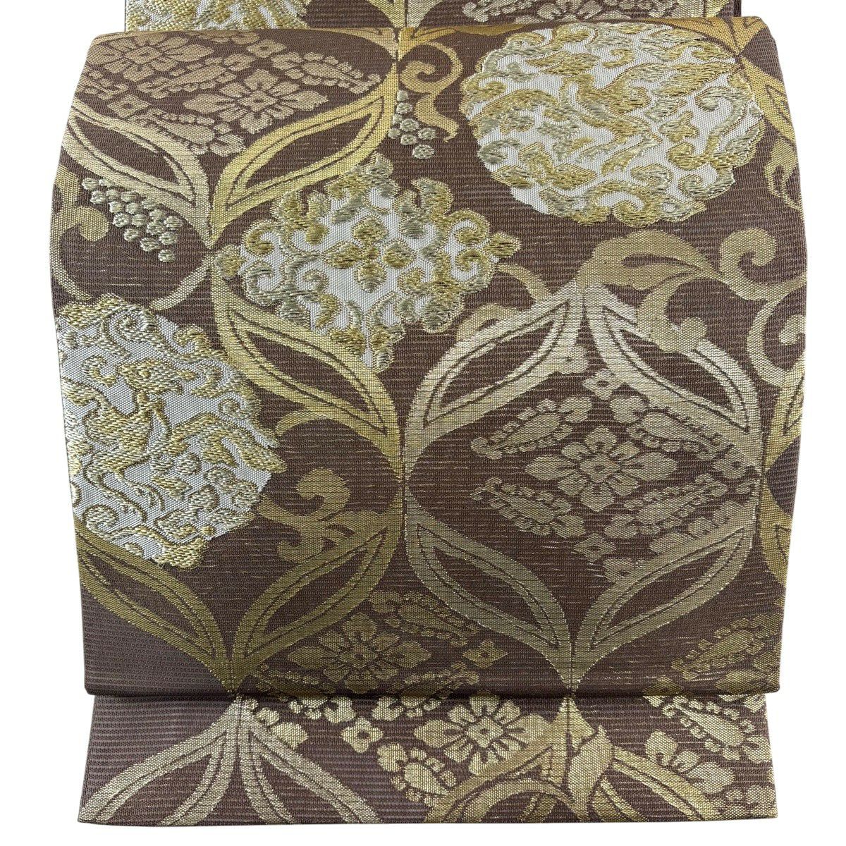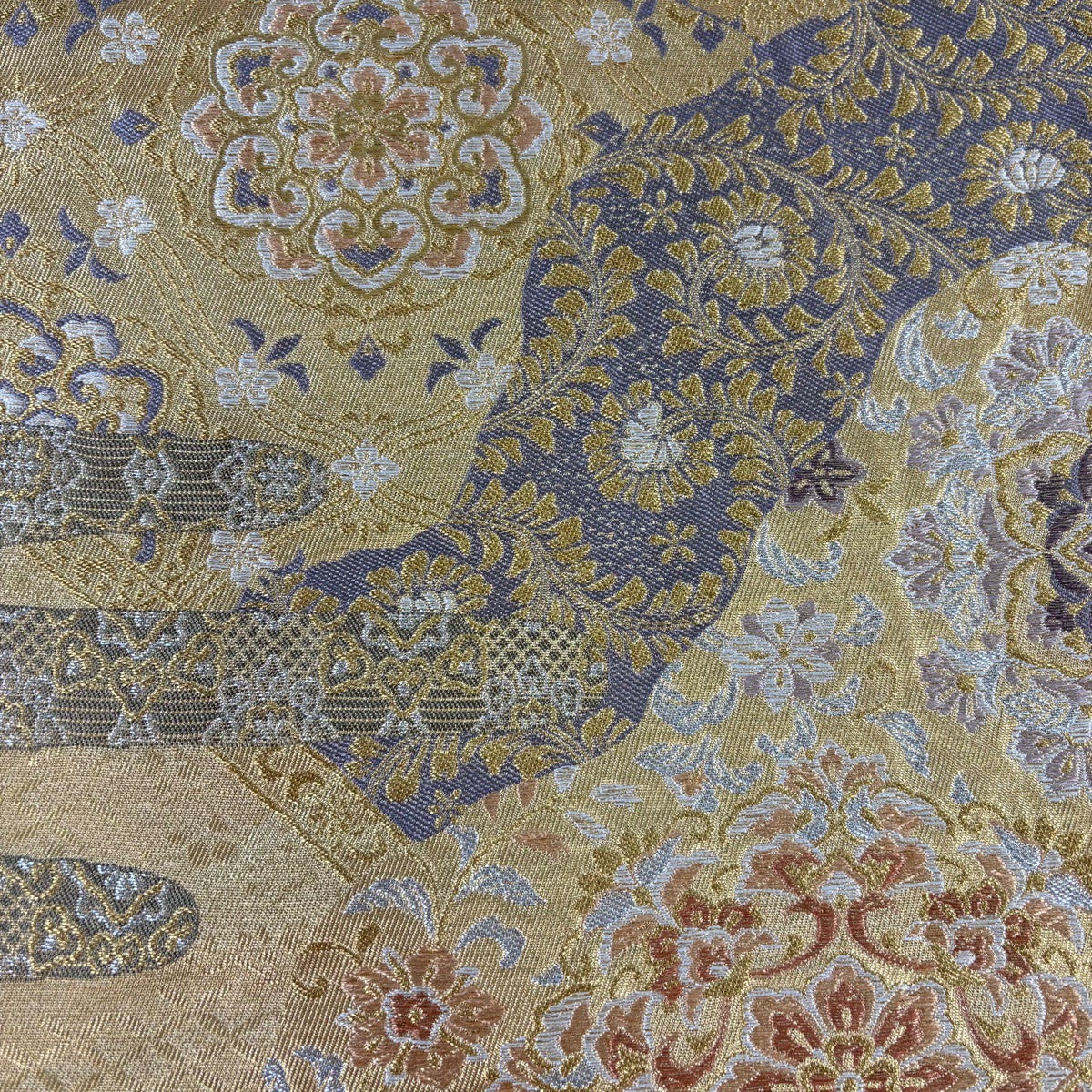 【美品】 袋帯 秀品 七宝華文 草花 金銀糸 壽光織 金色 六通 正絹
