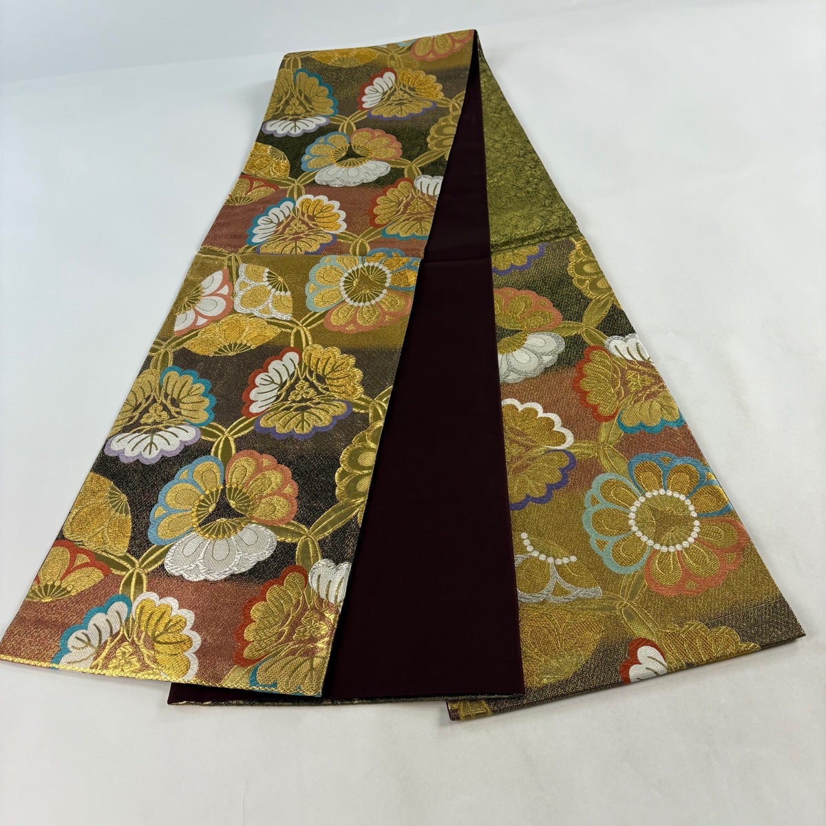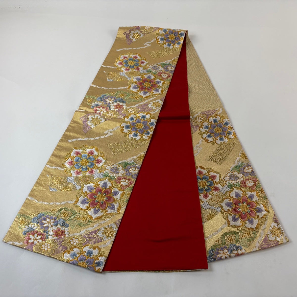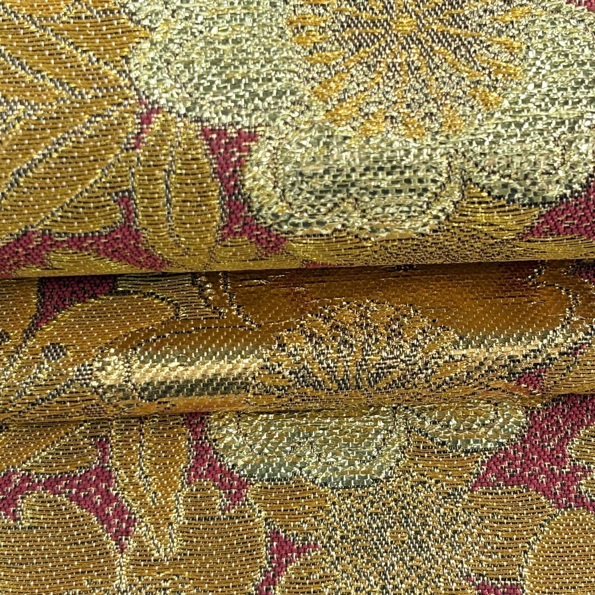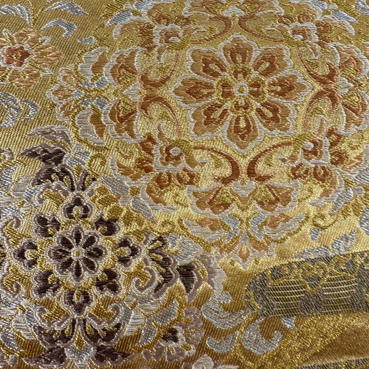 【美品】 袋帯 秀品 七宝華文 草花 金銀糸 壽光織 金色 六通 正絹