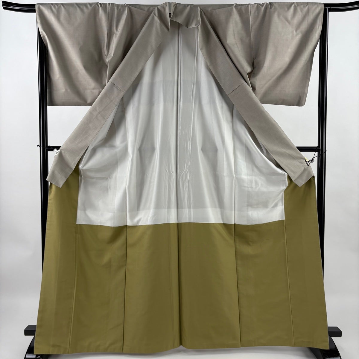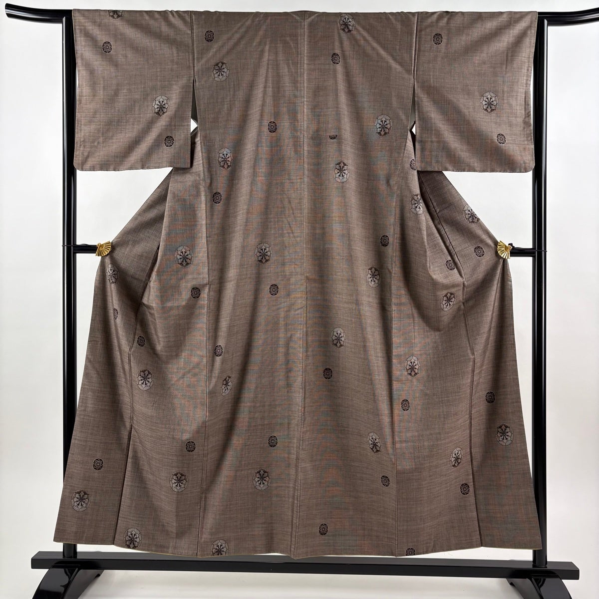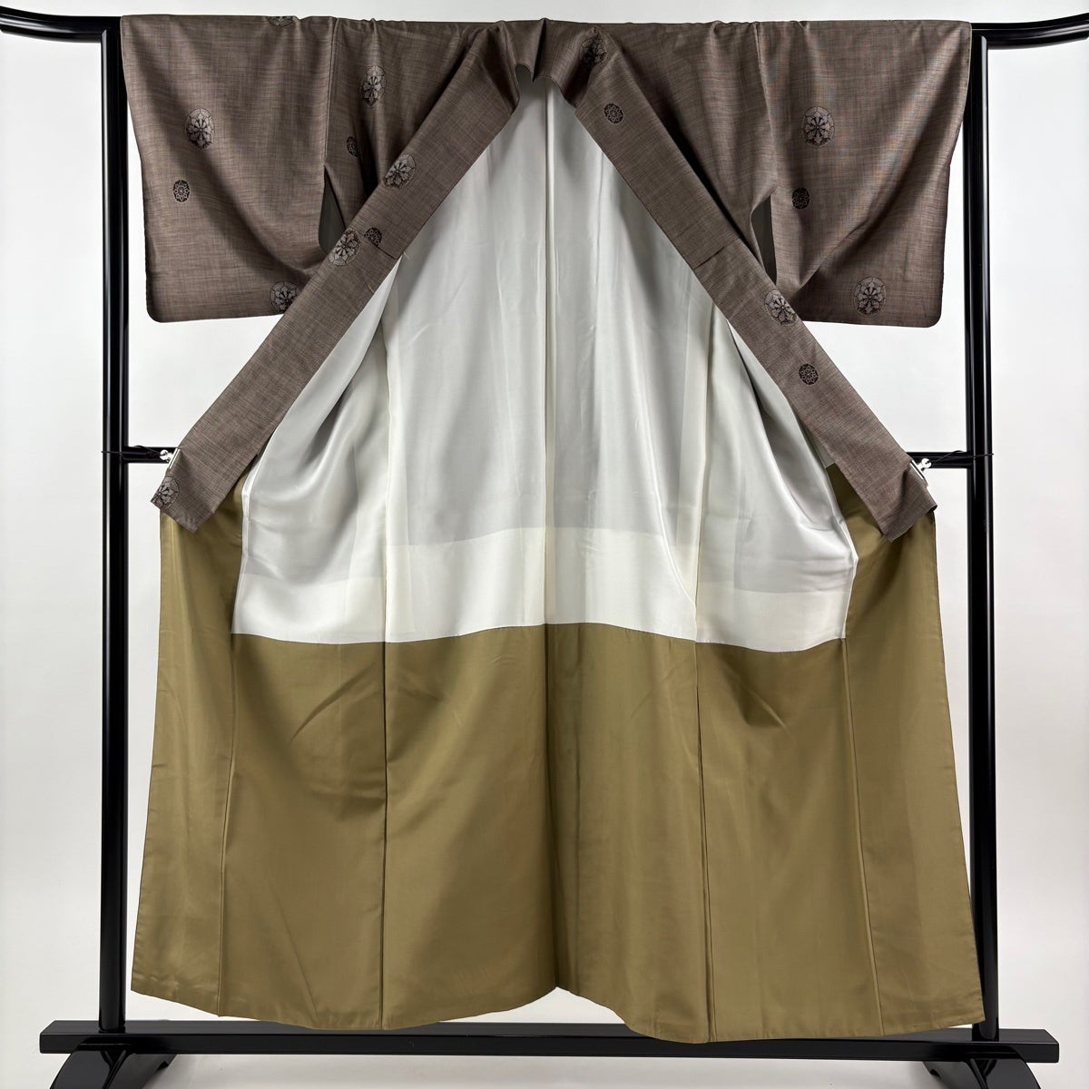 紬 身丈159cm 裄丈62.5cm S 袷 格子 薄茶色 正絹 秀品