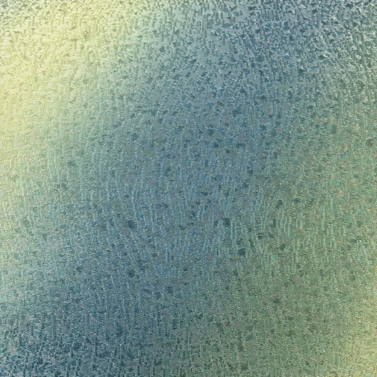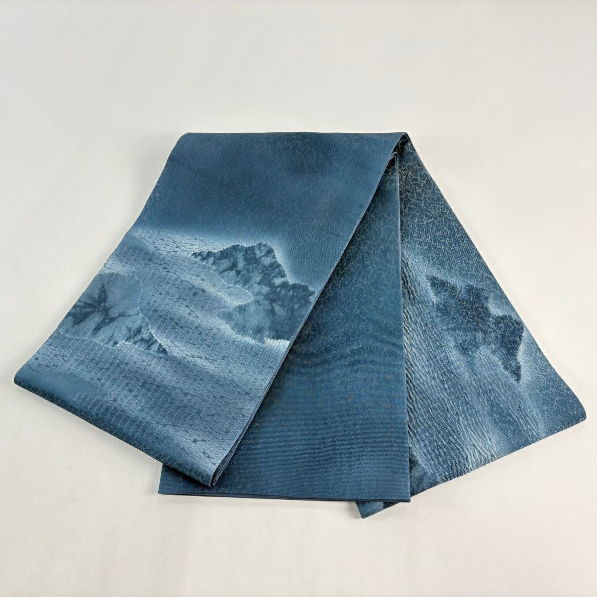 【美品】 袋帯 秀品 風景 山並み 銀糸 絞り 青緑 お太鼓柄 正絹