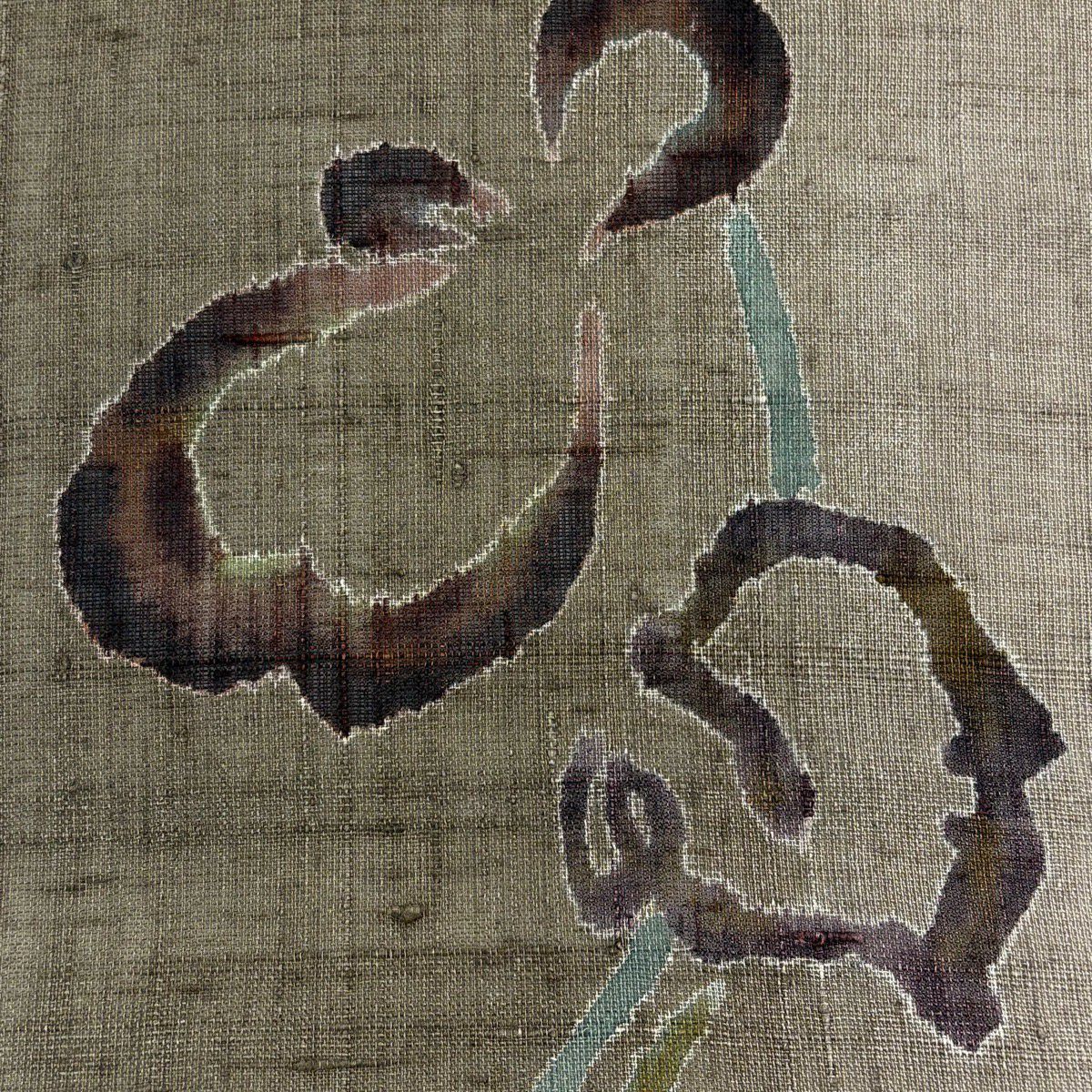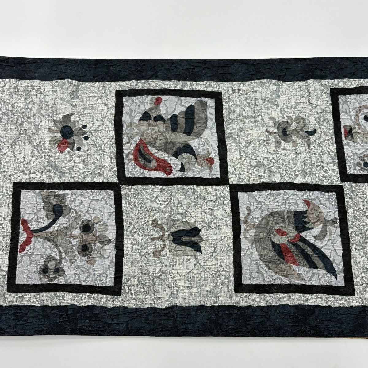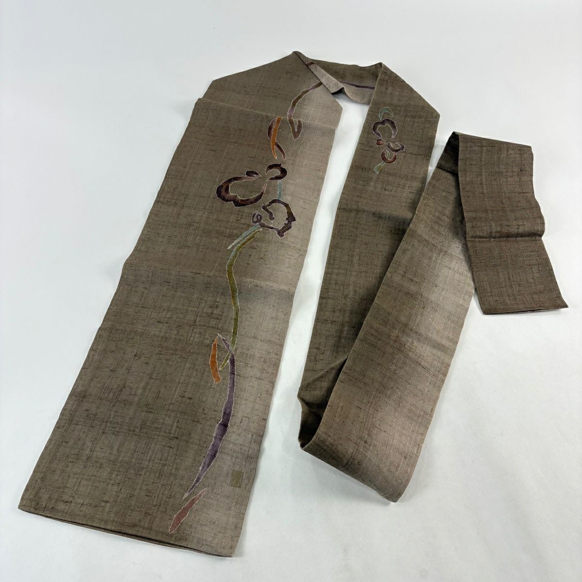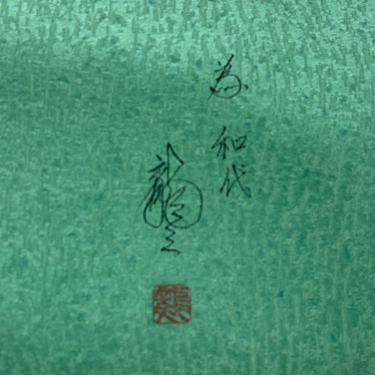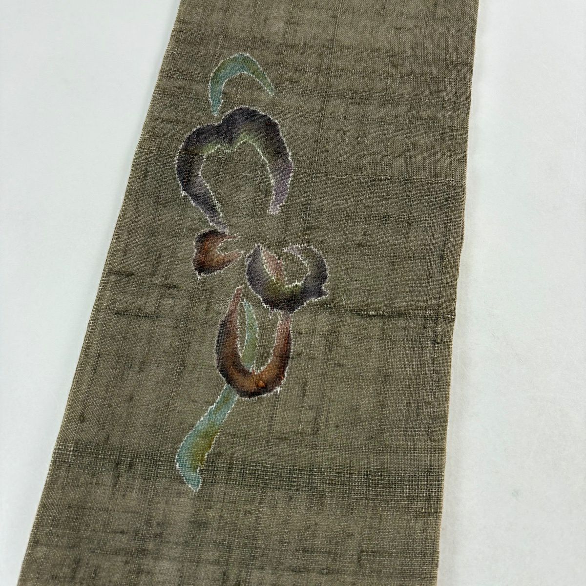 【美品】 袋帯 秀品 落款あり 纐纈 渡文 鳥 花 灰緑 全通 正絹