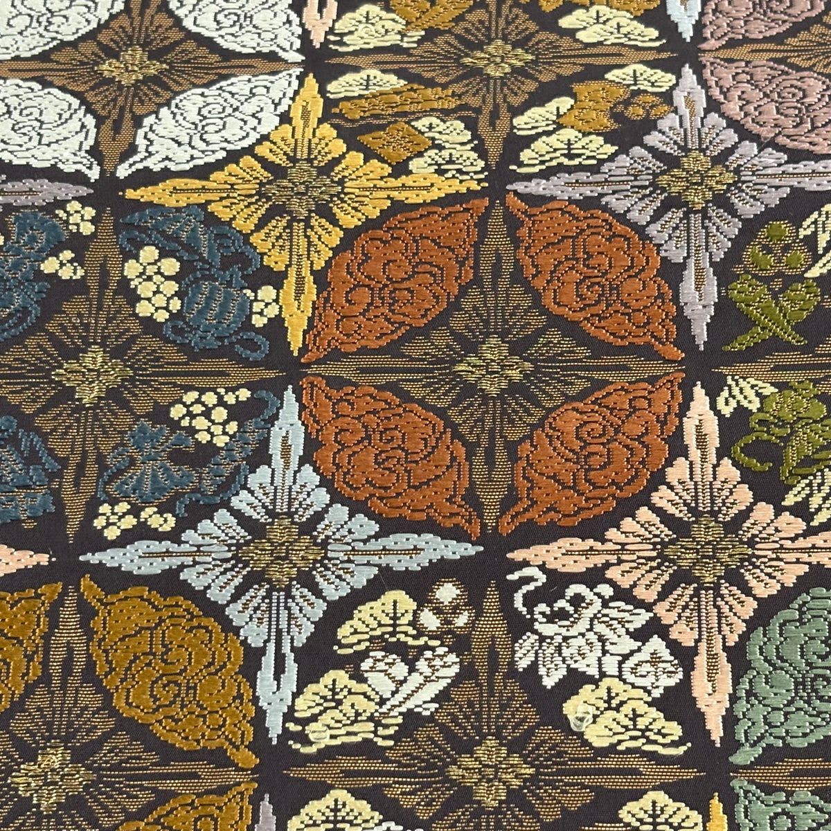 70%OFF 袋帯 秀品 菊 鳥 唐織 箔 灰色 六通 正絹 K70