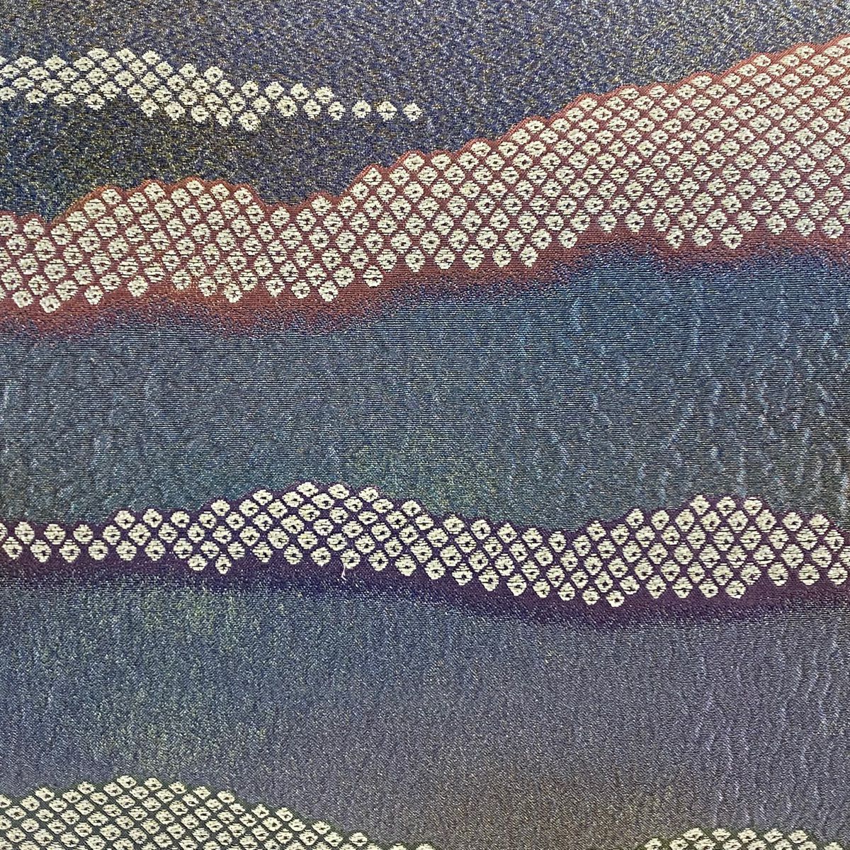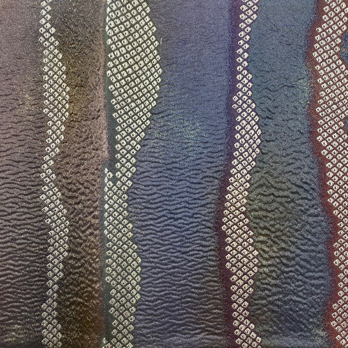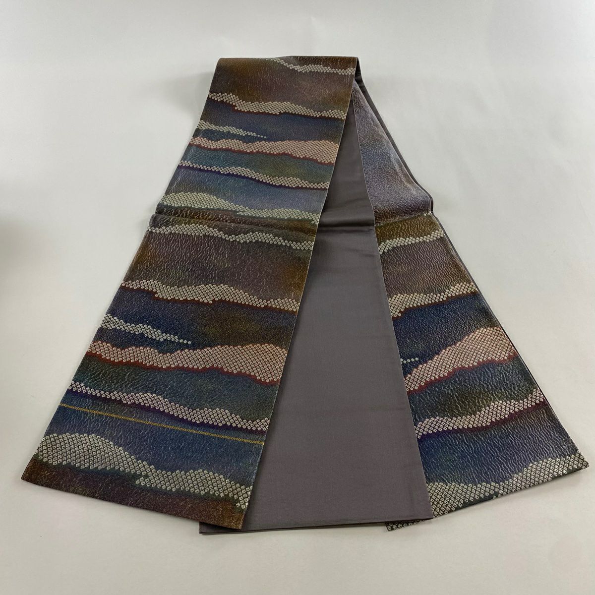 【在庫一掃】 【美品】 袋帯 秀品 段縞 幾何学 箔 灰紫 六通 正絹