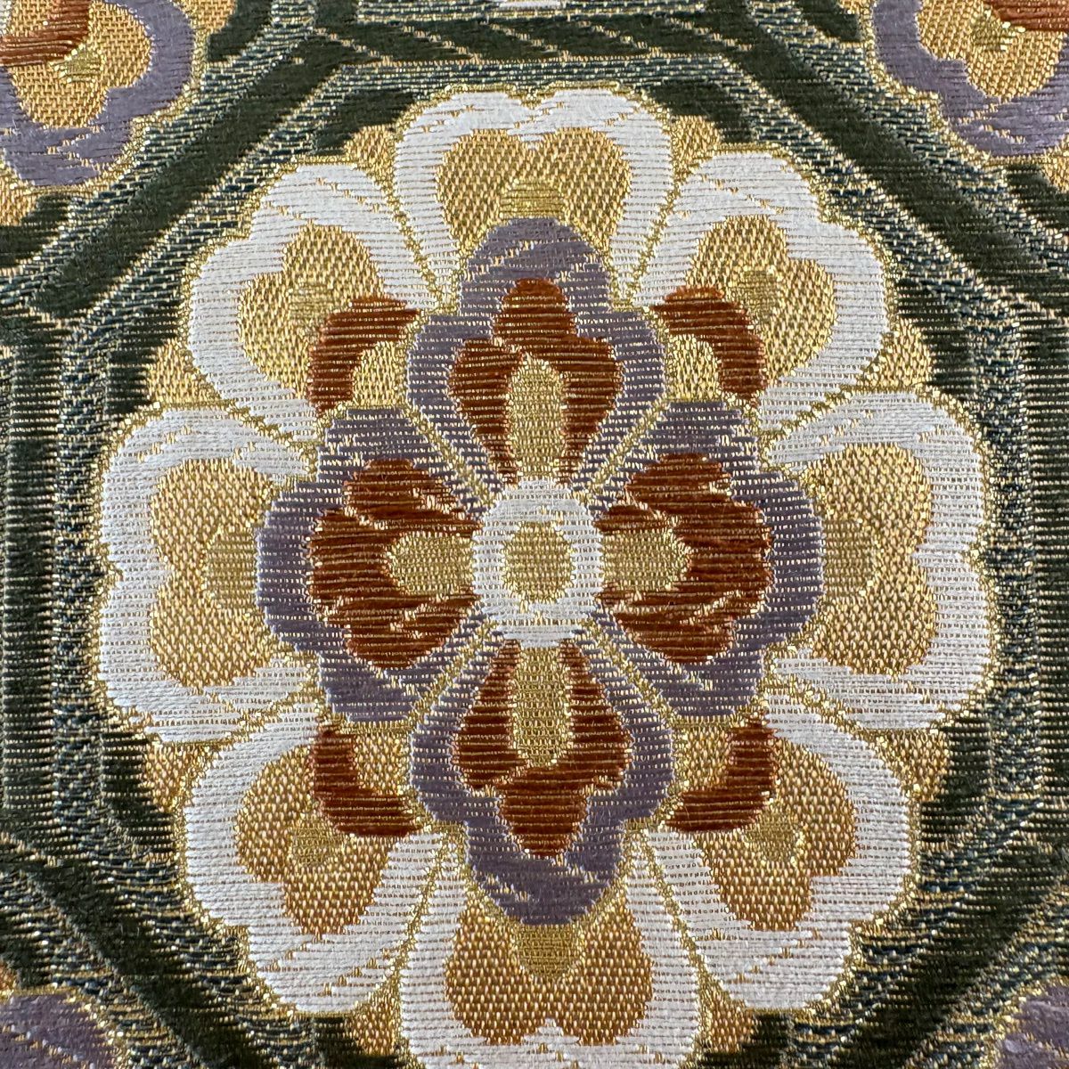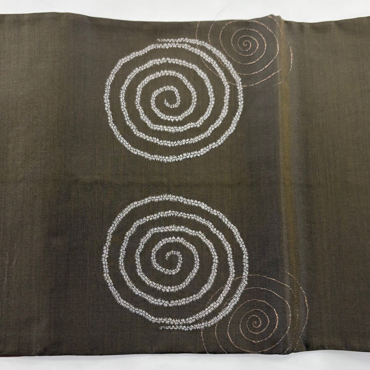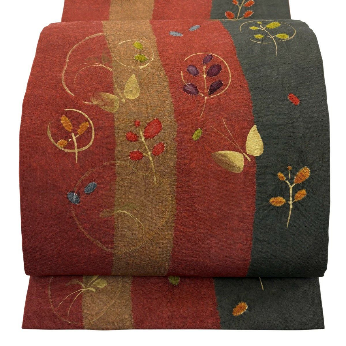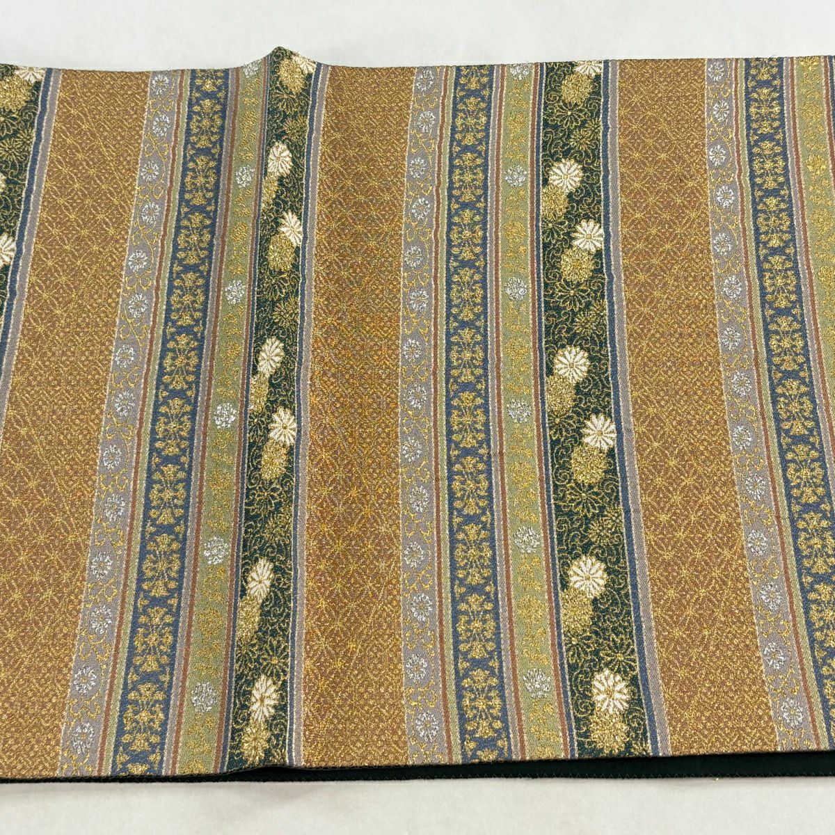 袋帯 秀品 堀省平 落款あり 花唐草 箔 金糸 焦茶色 お太鼓柄 正絹