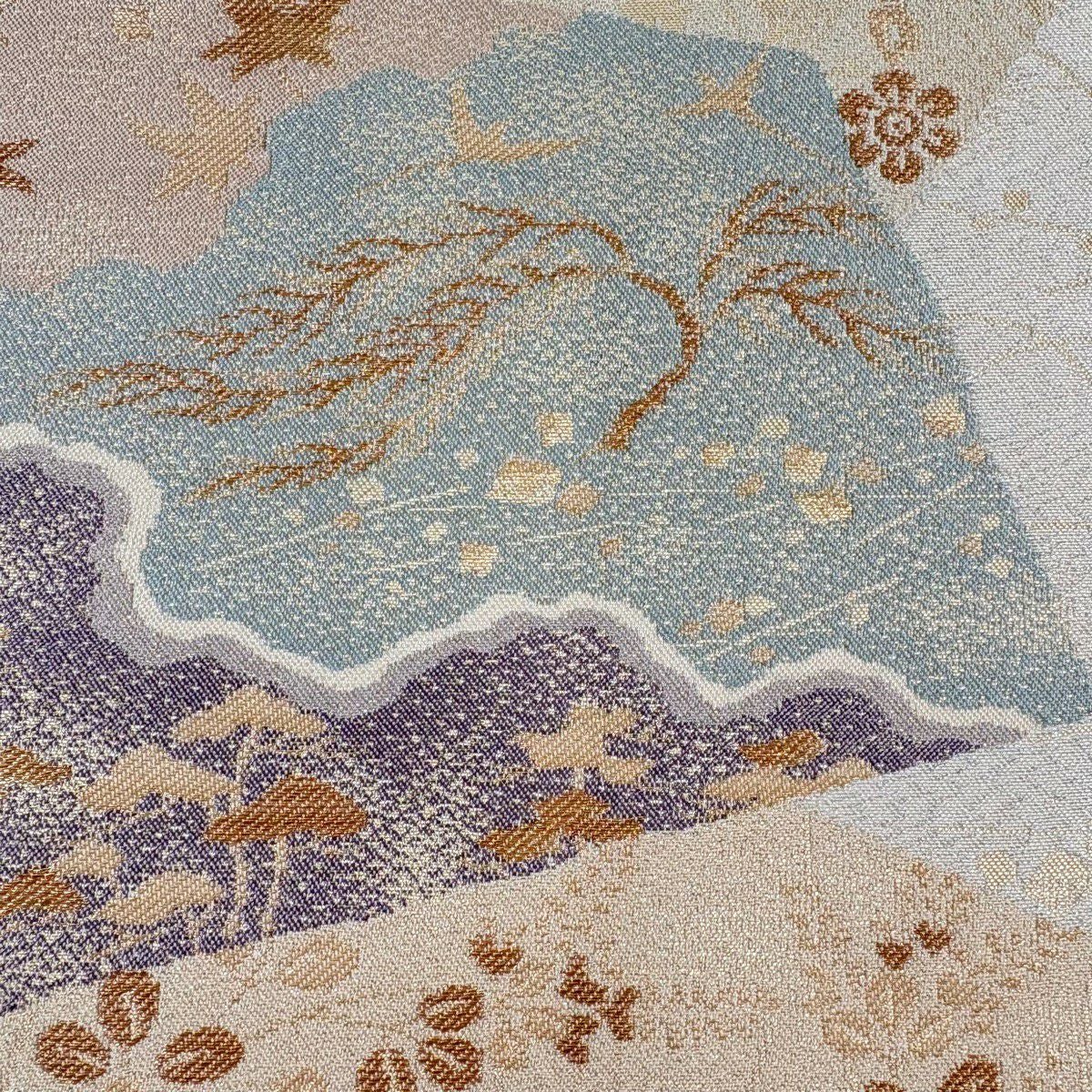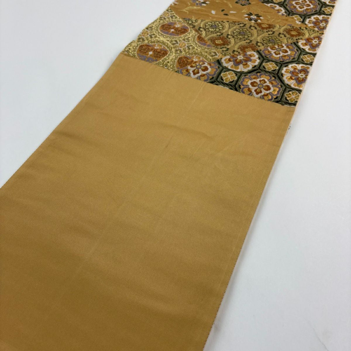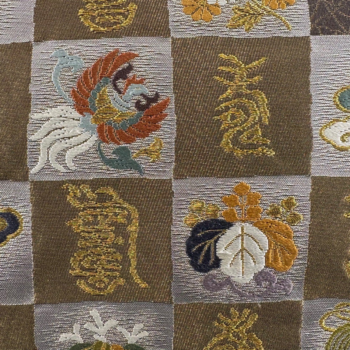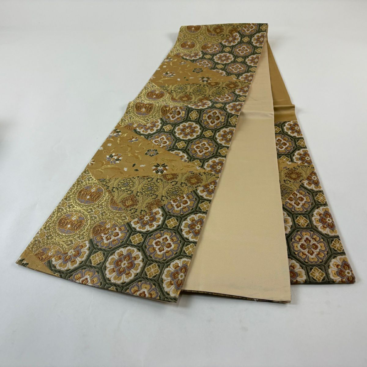 袋帯 秀品 朱雀つづれ 扇面 草花 箔 金糸 ベージュ 六通 正絹