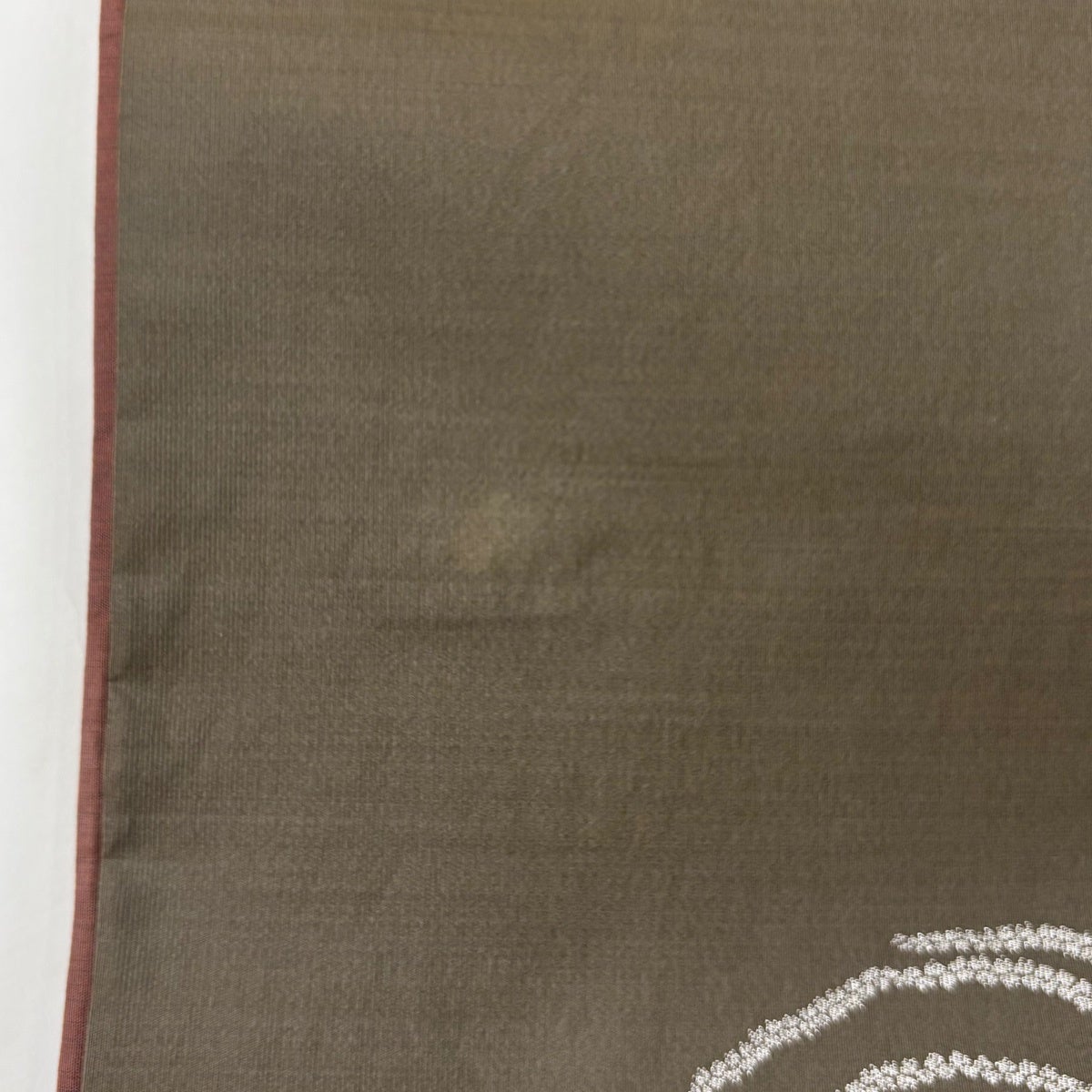 【美品】 袋帯 秀品 雲文 葉柄 銀通し 絞り 薄茶色 お太鼓柄 正絹