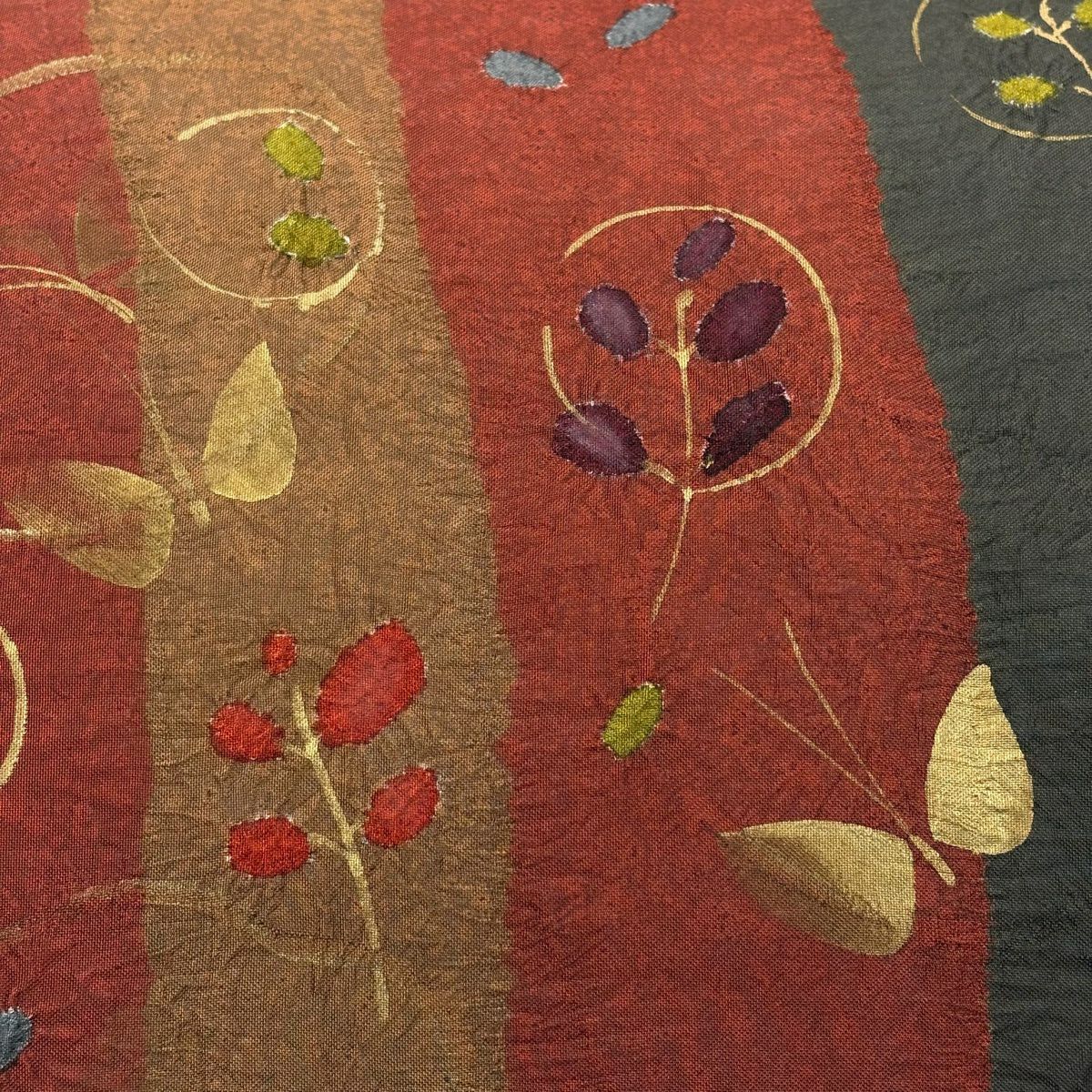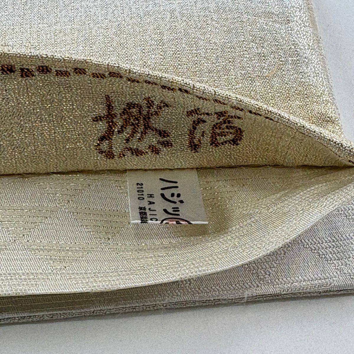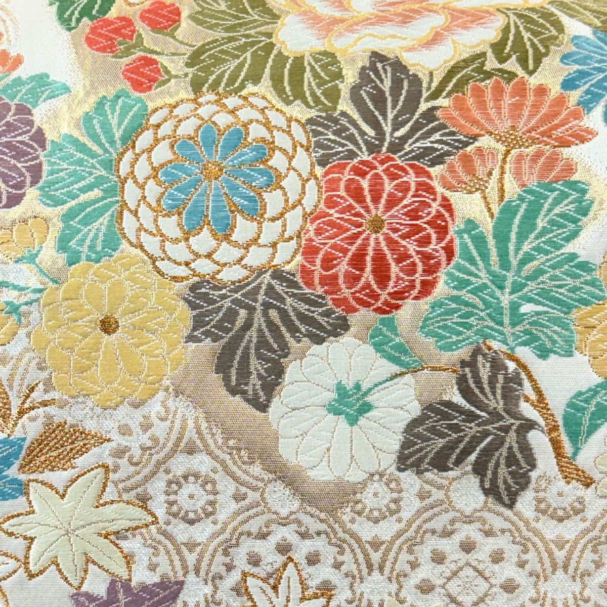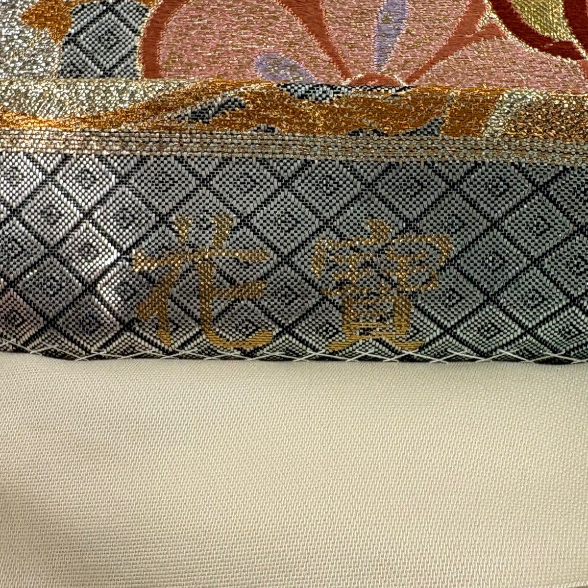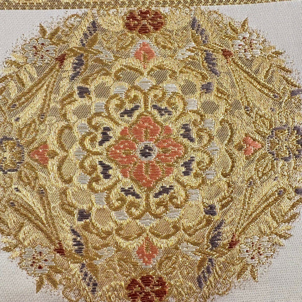 【美品】 袋帯 秀品 名匠華千種 草花 唐織 箔 クリーム 六通 正絹