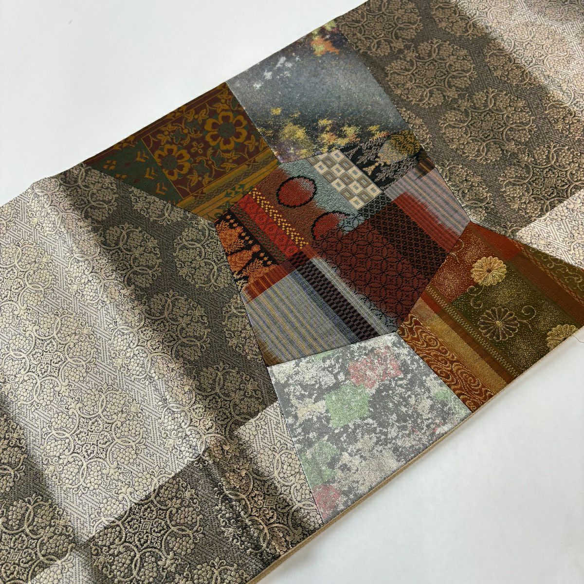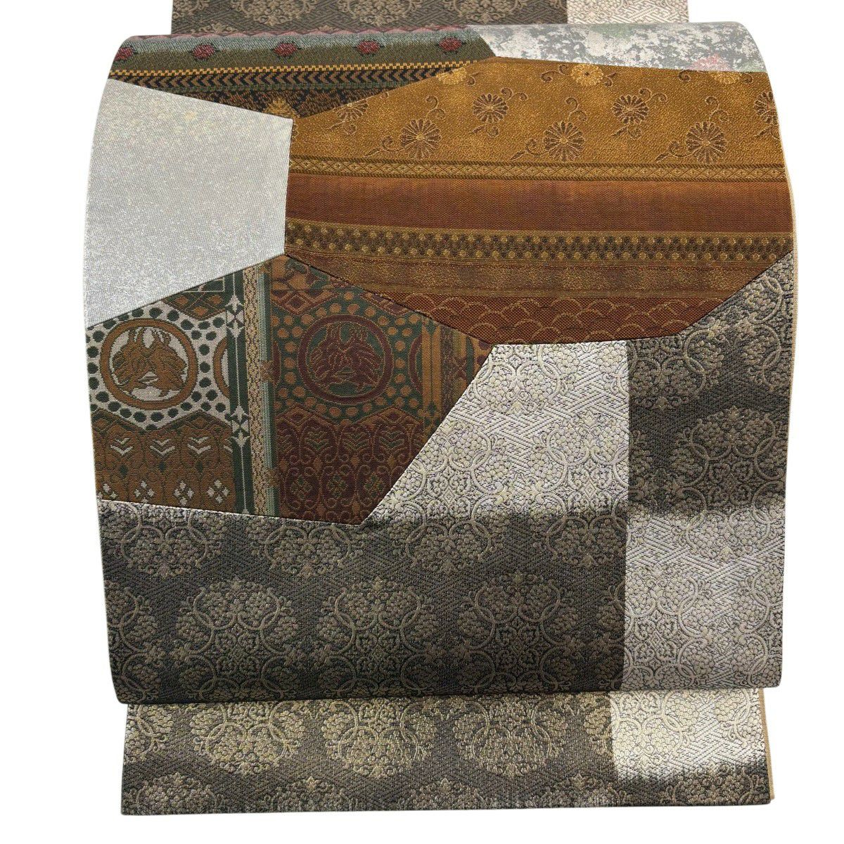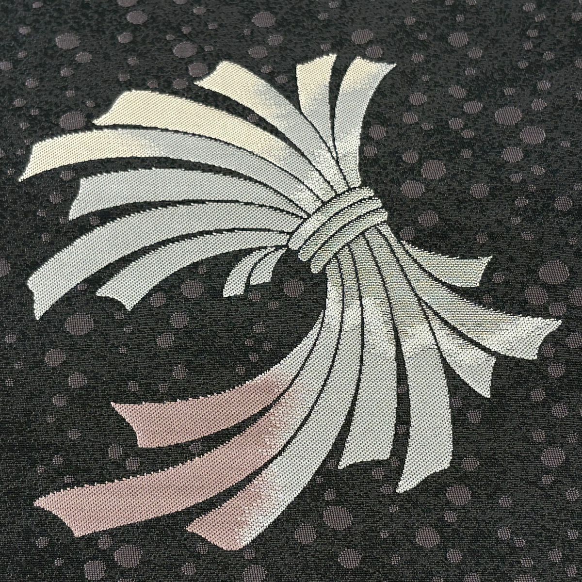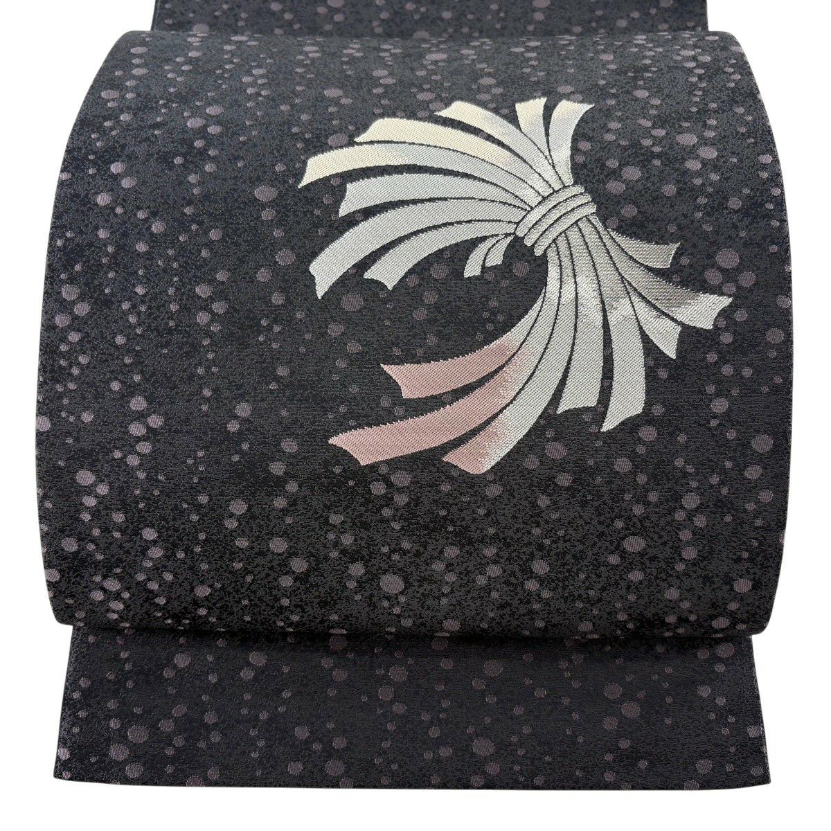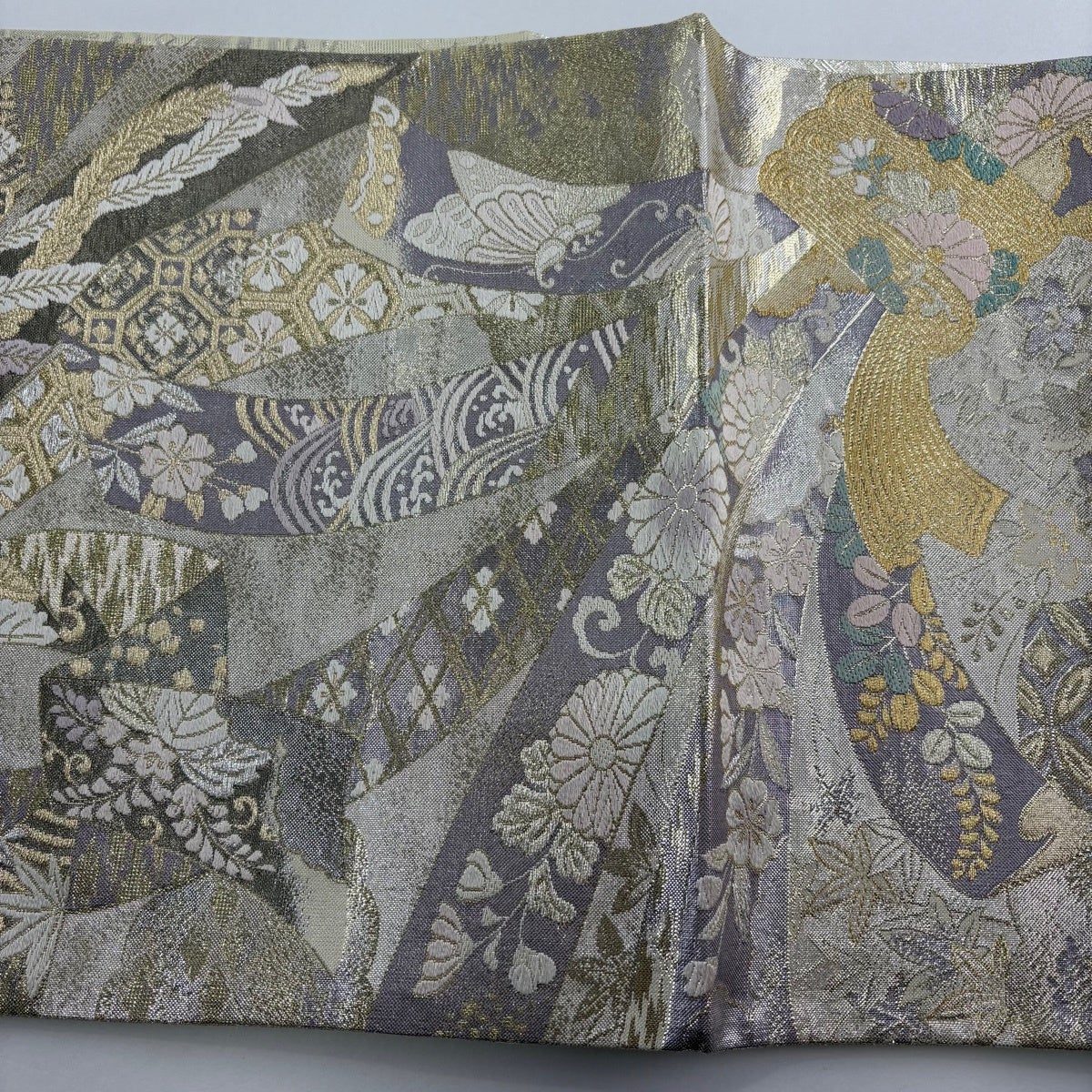 【美品】 袋帯 秀品 束ね熨斗 幾何学模様 銀糸 灰色 お太鼓柄 正絹