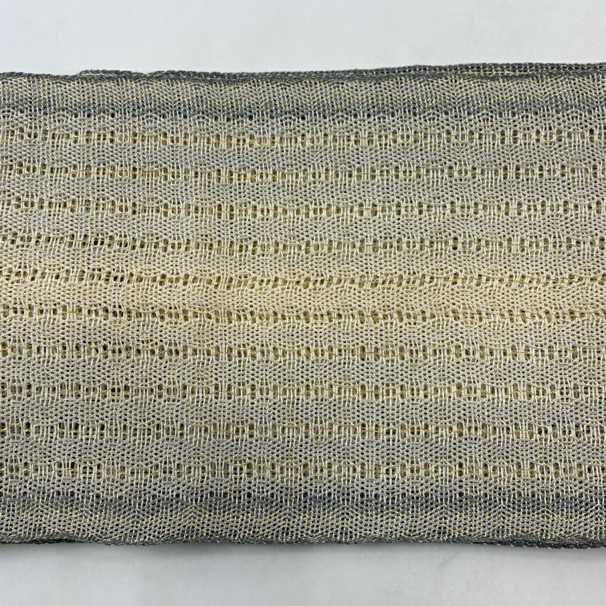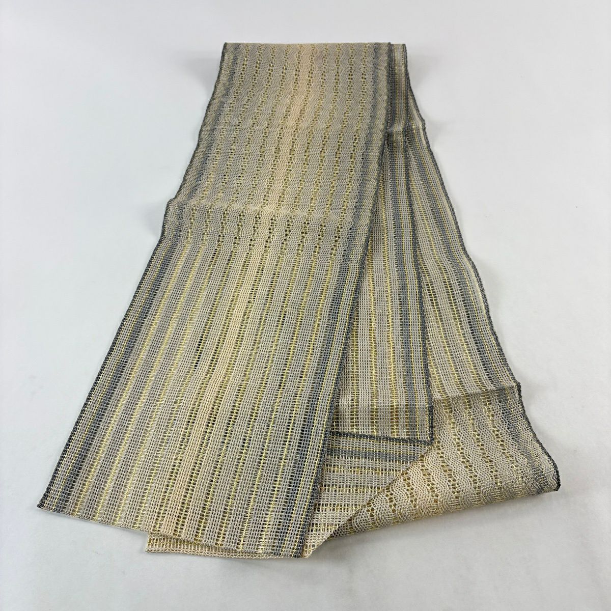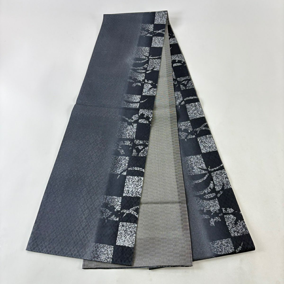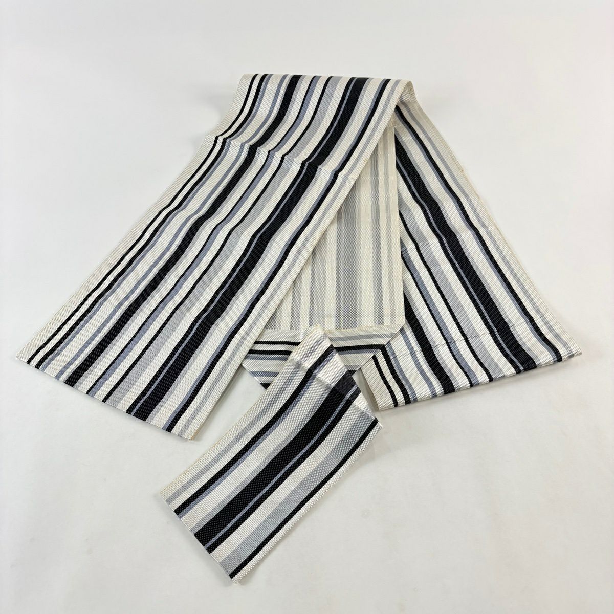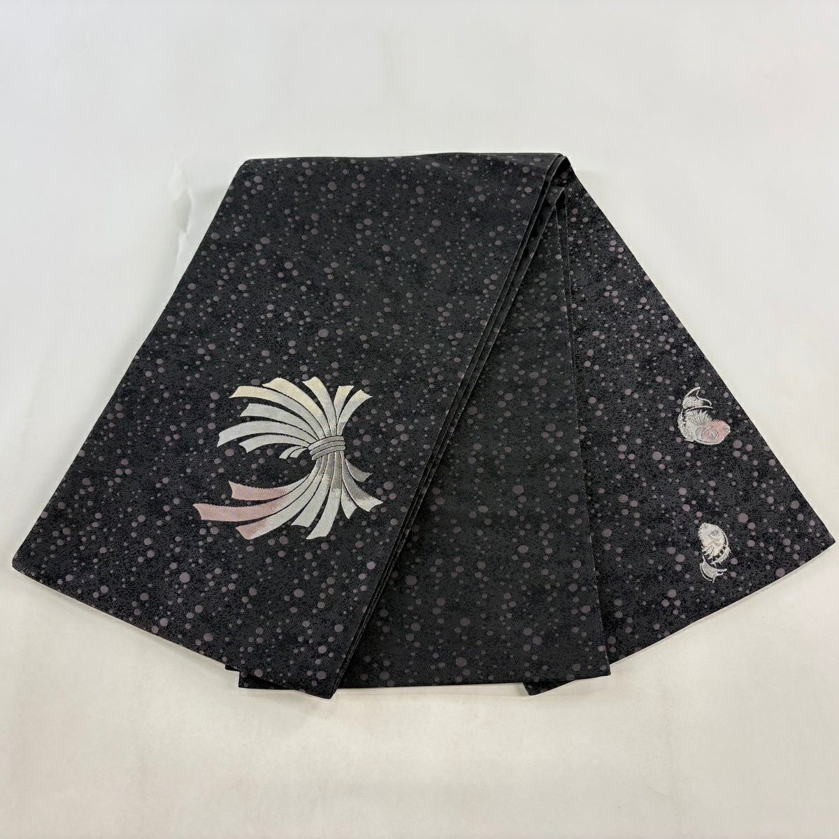 【美品】 袋帯 秀品 束ね熨斗 幾何学模様 銀糸 灰色 お太鼓柄 正絹
