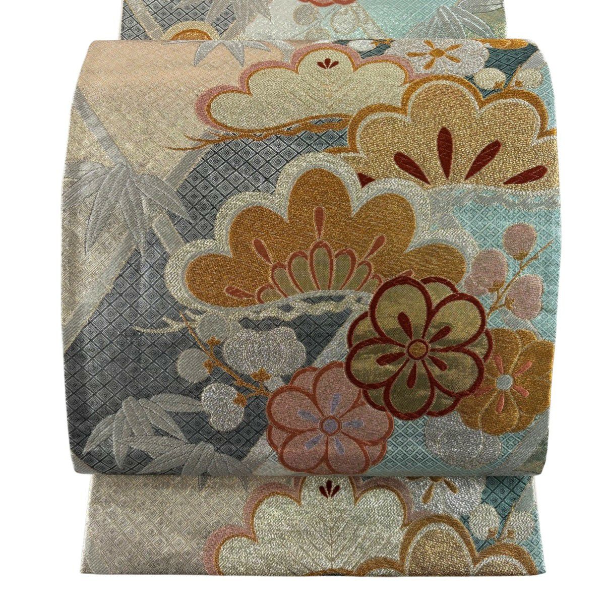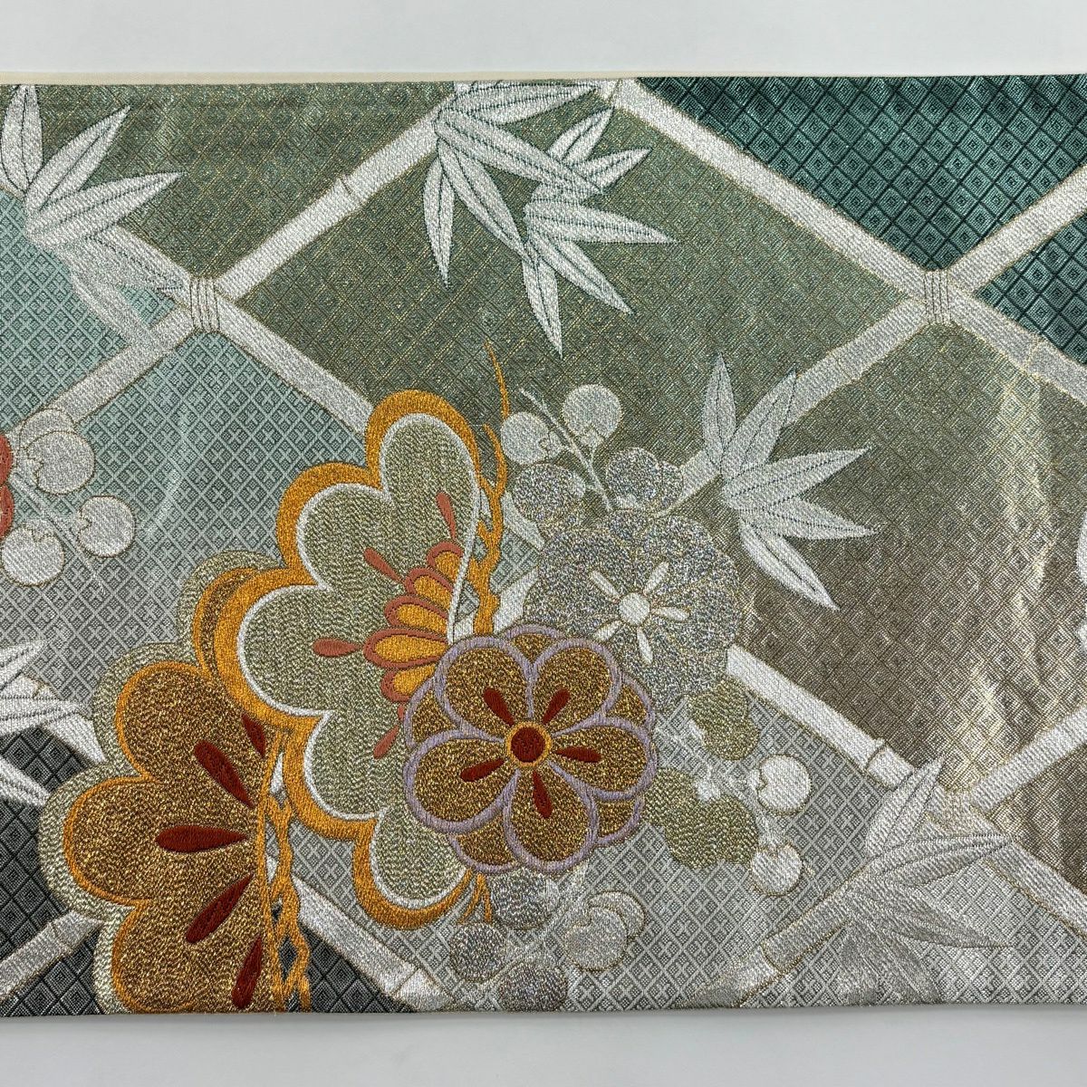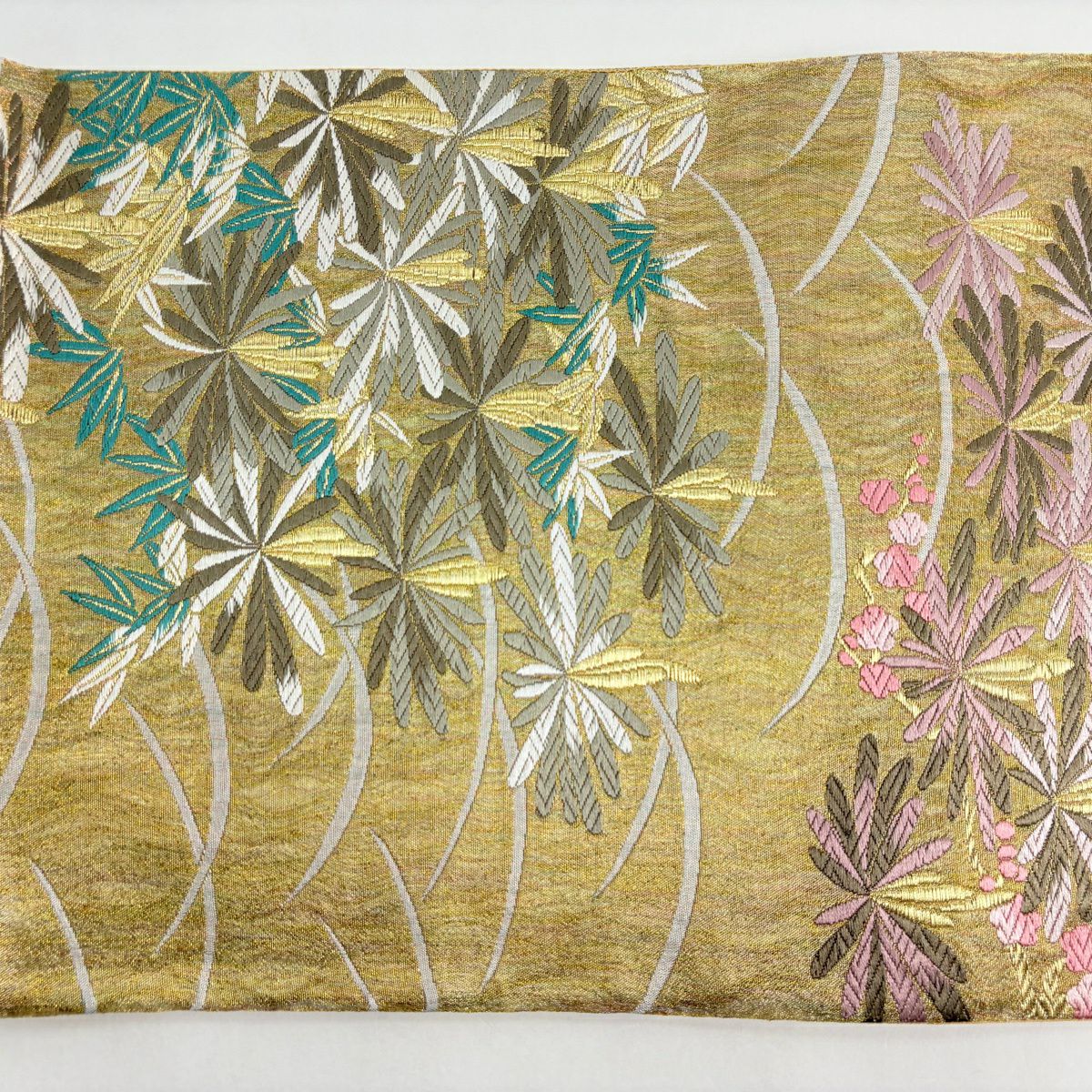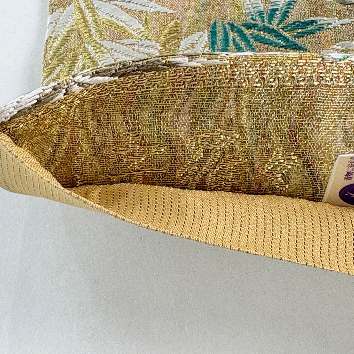 【美品】 袋帯 秀品 証紙あり 松竹梅 芝 唐織 金糸 金色 六通 正絹