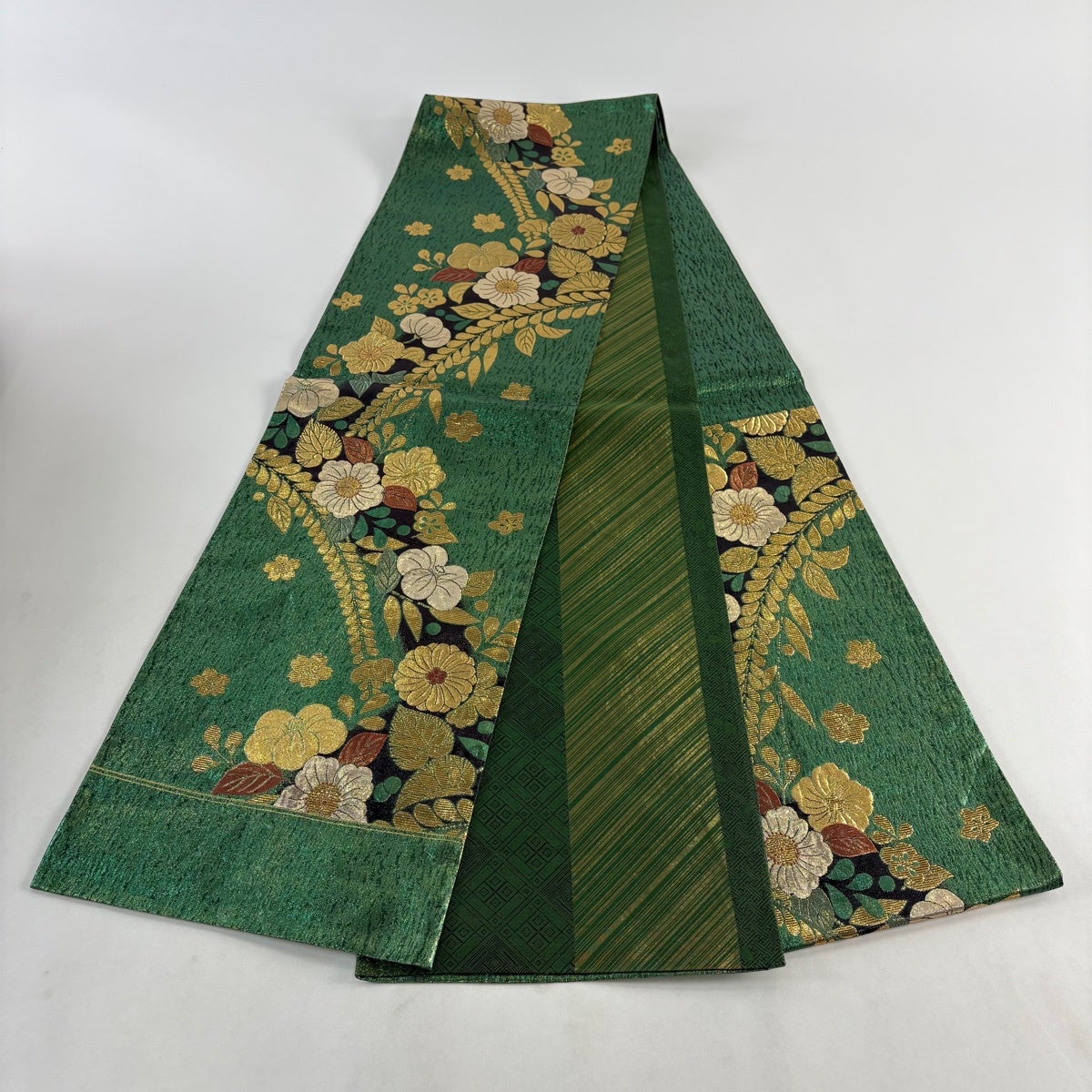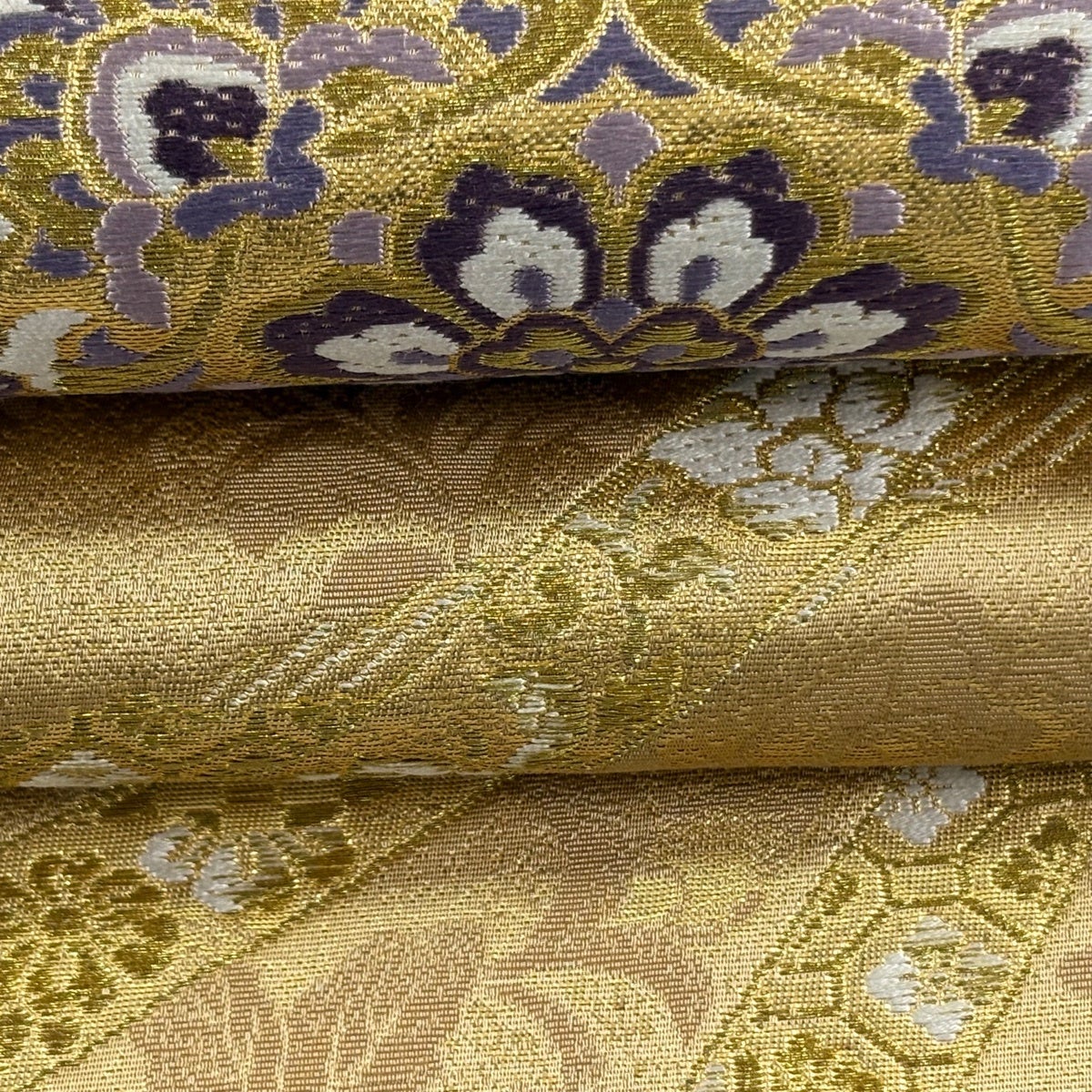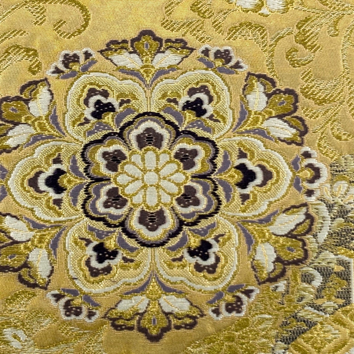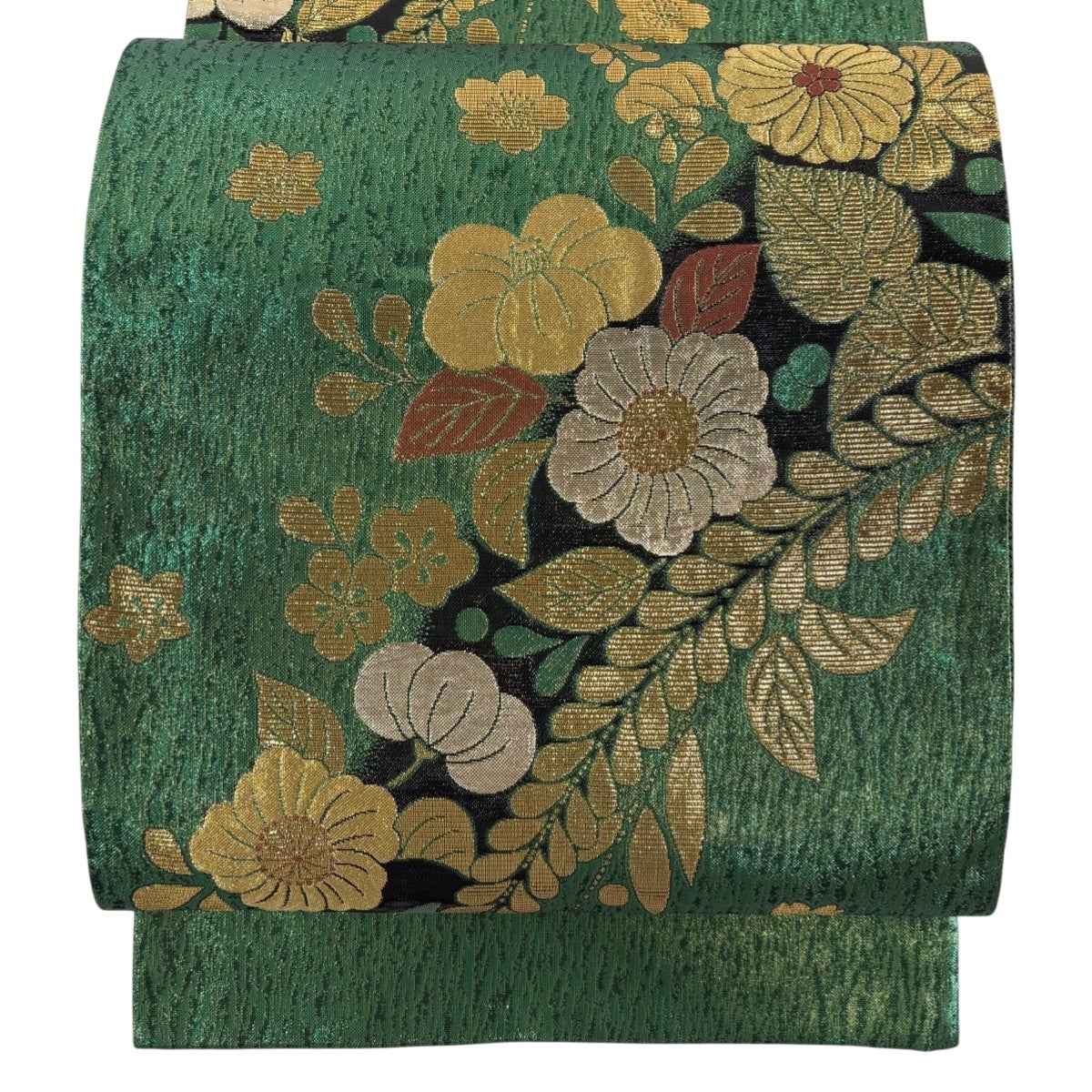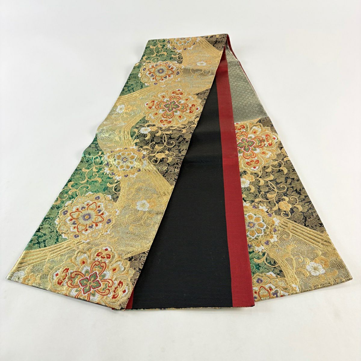 【美品】 袋帯 秀品 証紙あり 松竹梅 芝 唐織 金糸 金色 六通 正絹
