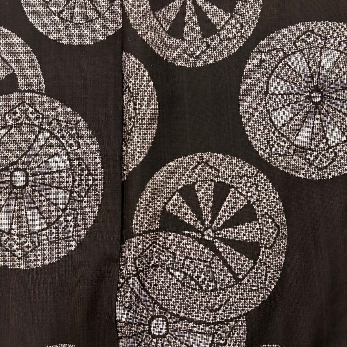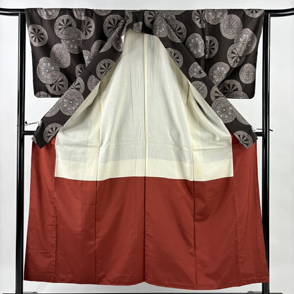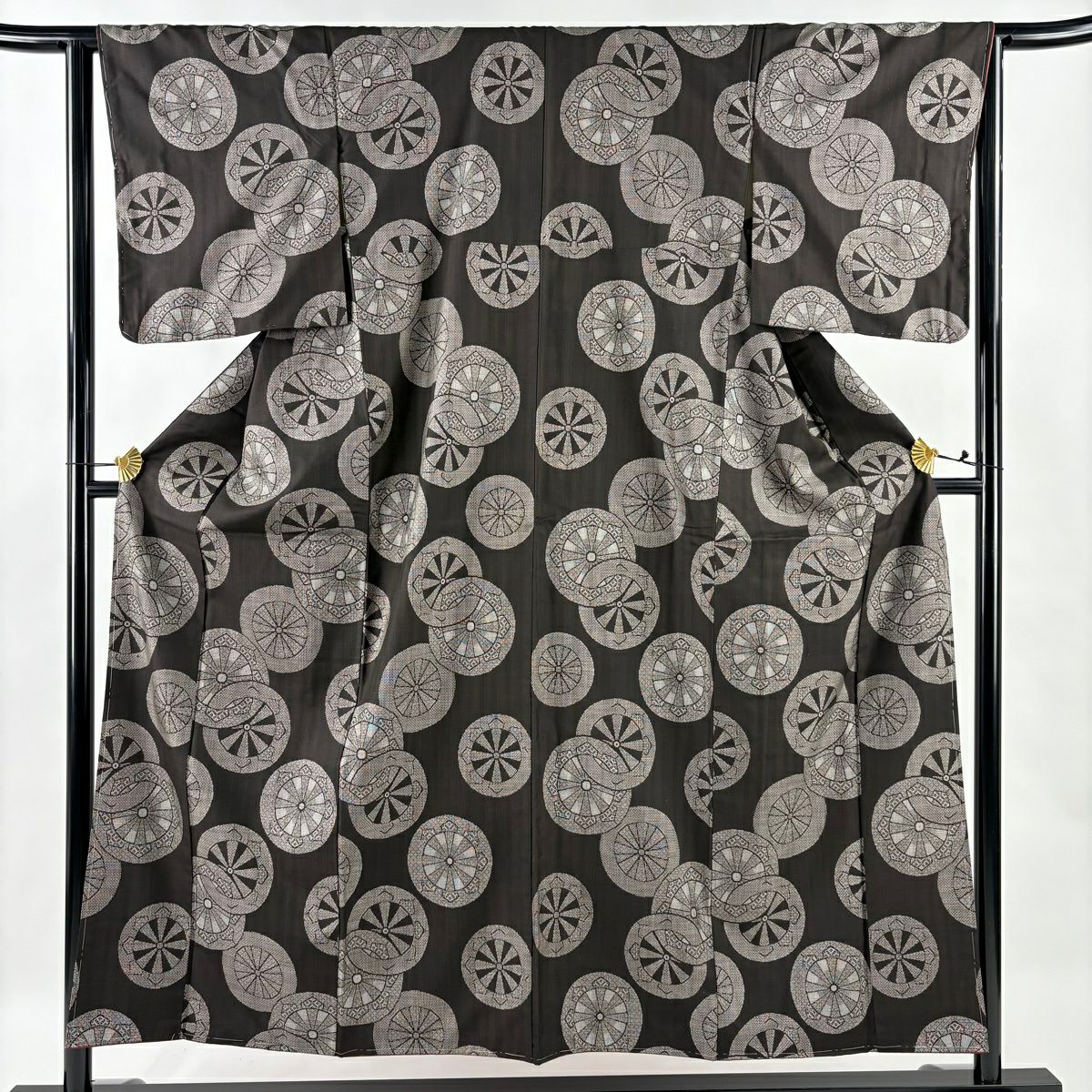 紬 身丈155.5cm 裄丈63cm S 袷 源氏車 焦茶色 正絹 秀品