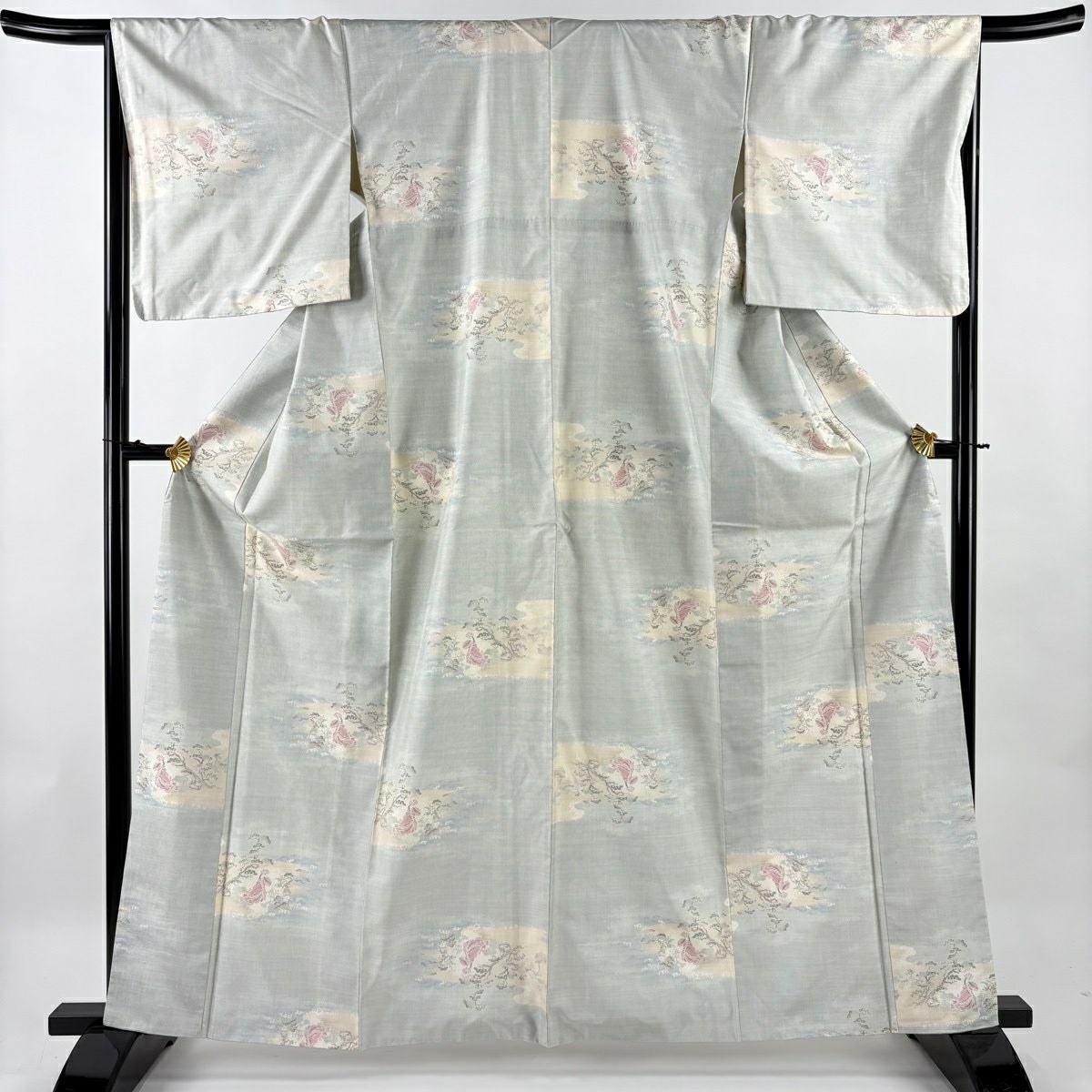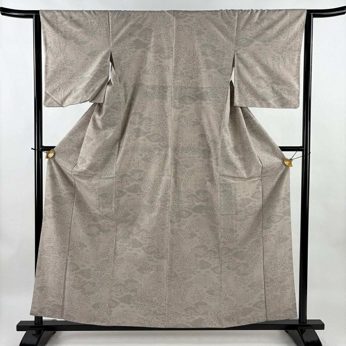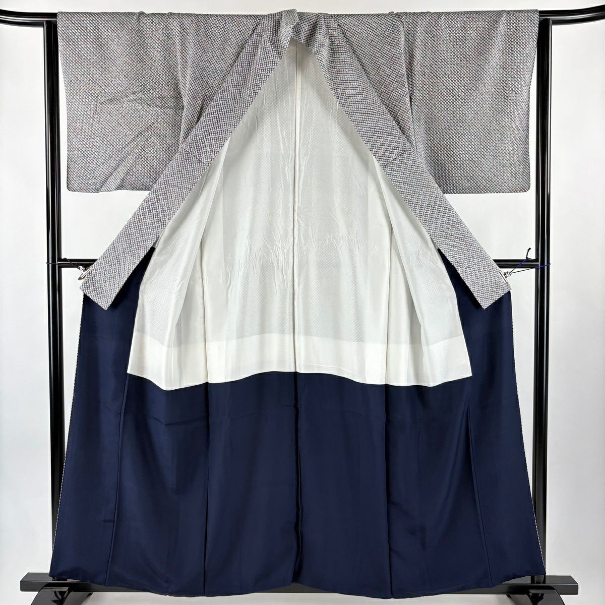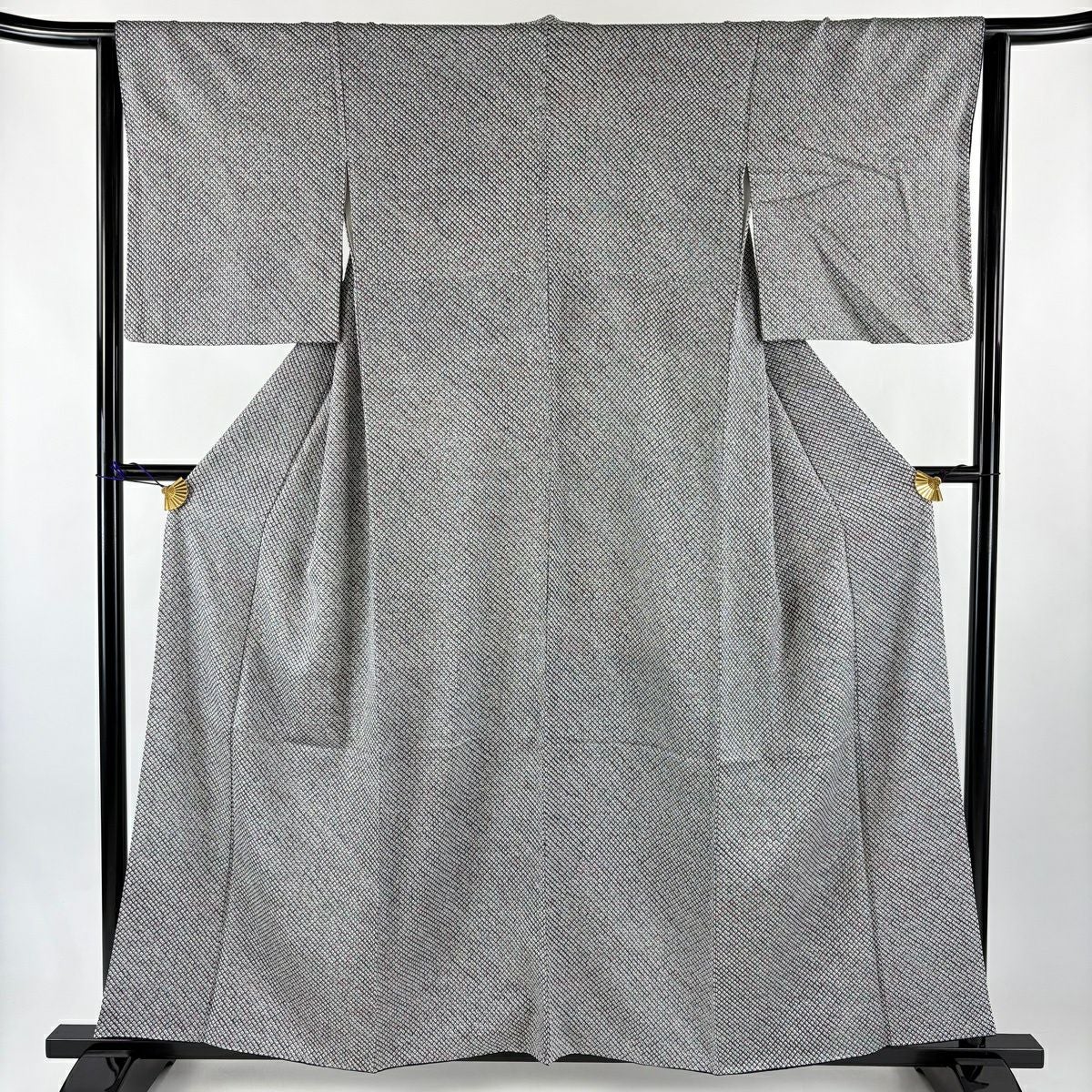 小紋 身丈156.5cm 裄丈63.5cm S 袷 総絞り 灰色 正絹 秀品