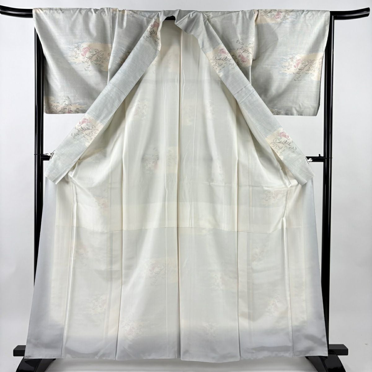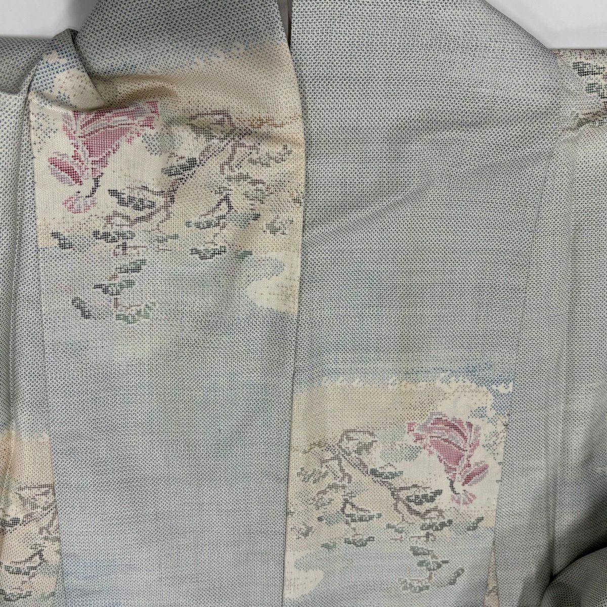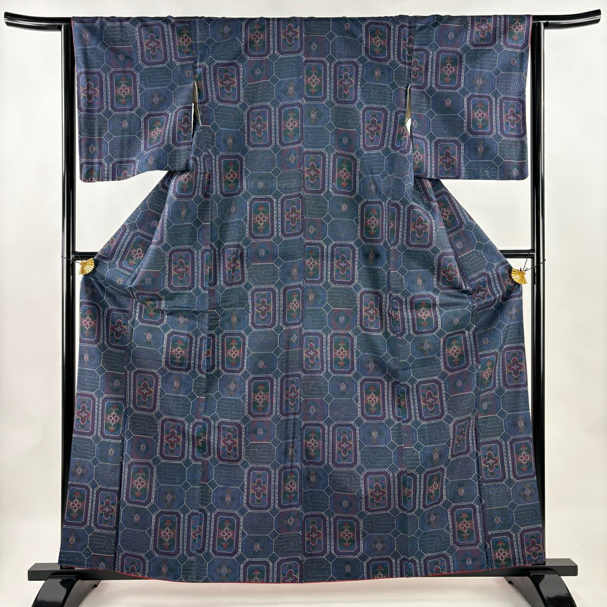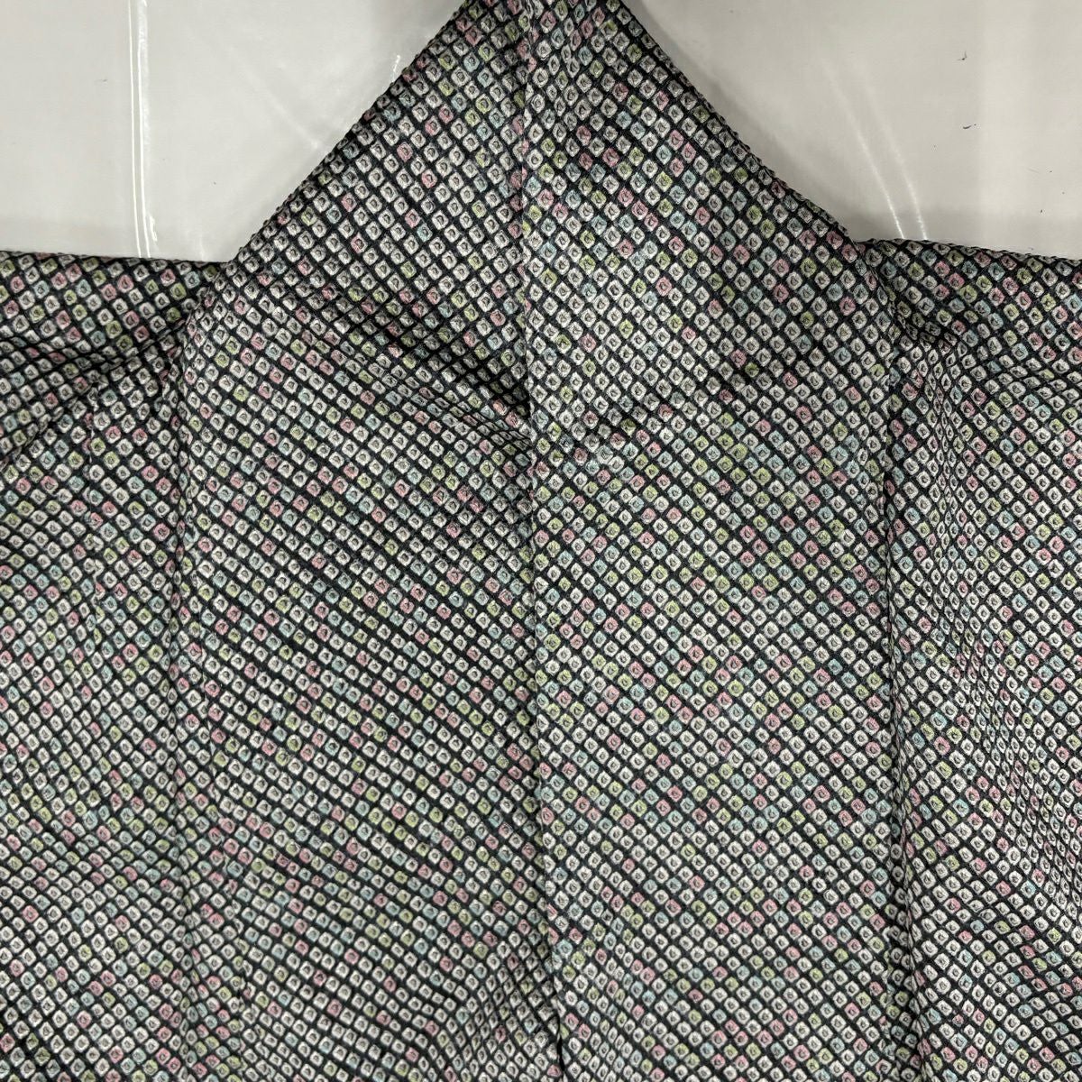 小紋 身丈156.5cm 裄丈63.5cm S 袷 総絞り 灰色 正絹 秀品