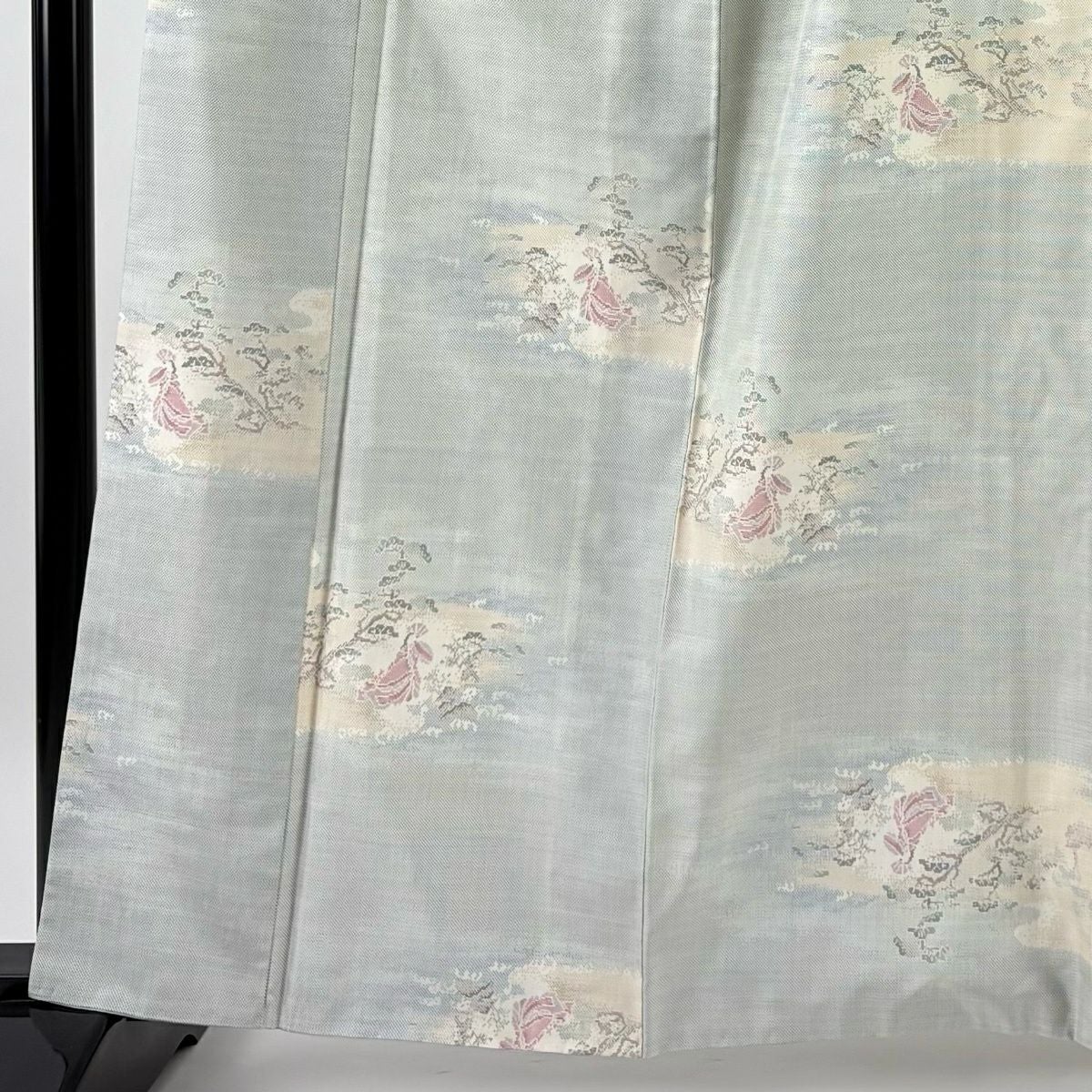 紬 身丈163.5cm 裄丈67.5cm L 袷 人物 松 薄緑 正絹 秀品