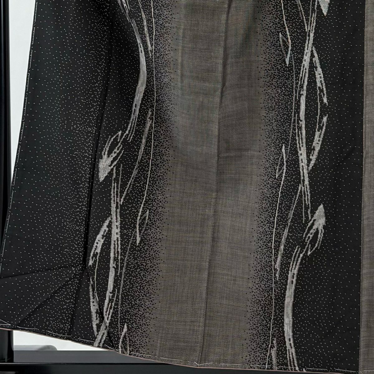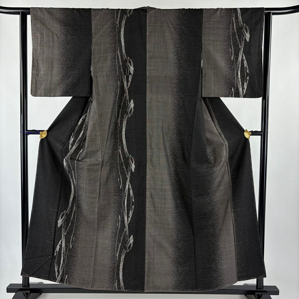 紬 身丈155cm 裄丈62cm S 袷 流水 しぶき 黒灰 正絹 秀品
