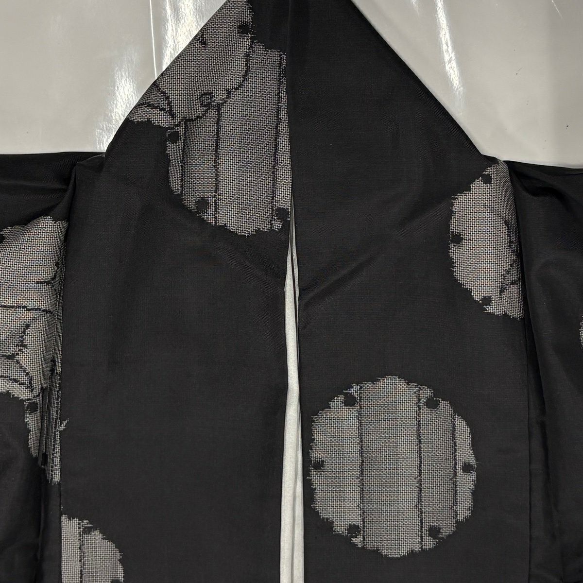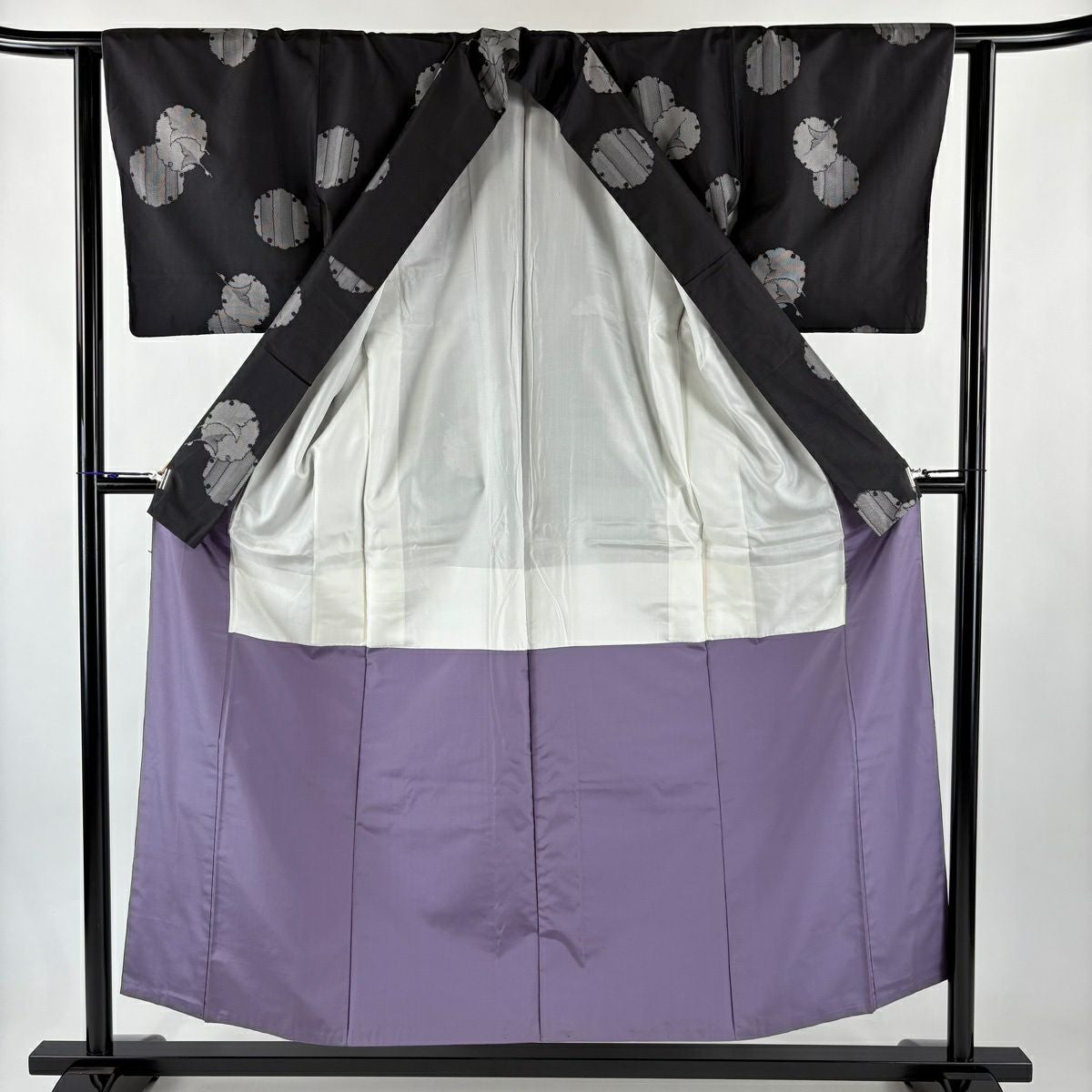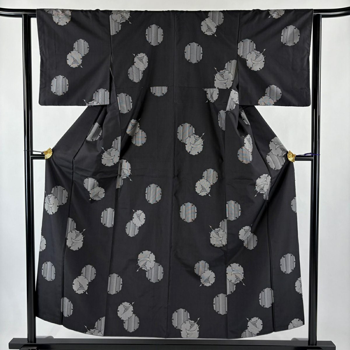紬 身丈152.5cm 裄丈62cm S 袷 雪輪 鳥 墨色 正絹 秀品
