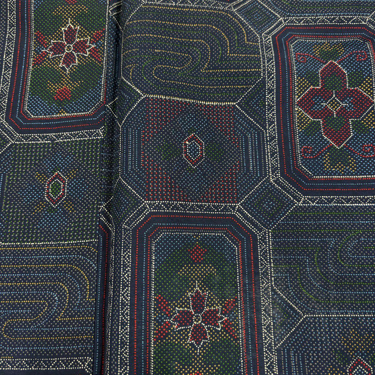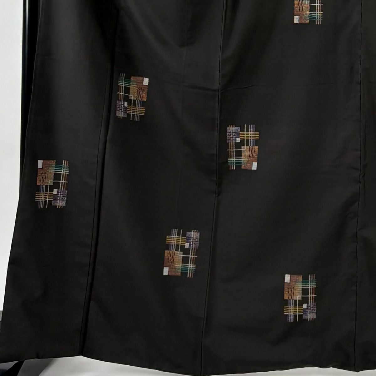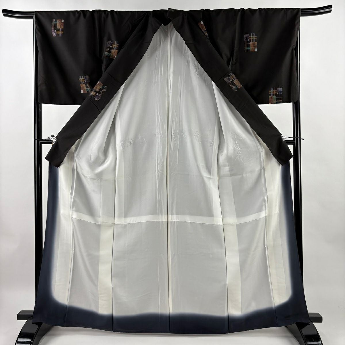 紬 身丈152.5cm 裄丈62cm S 袷 雪輪 鳥 墨色 正絹 秀品