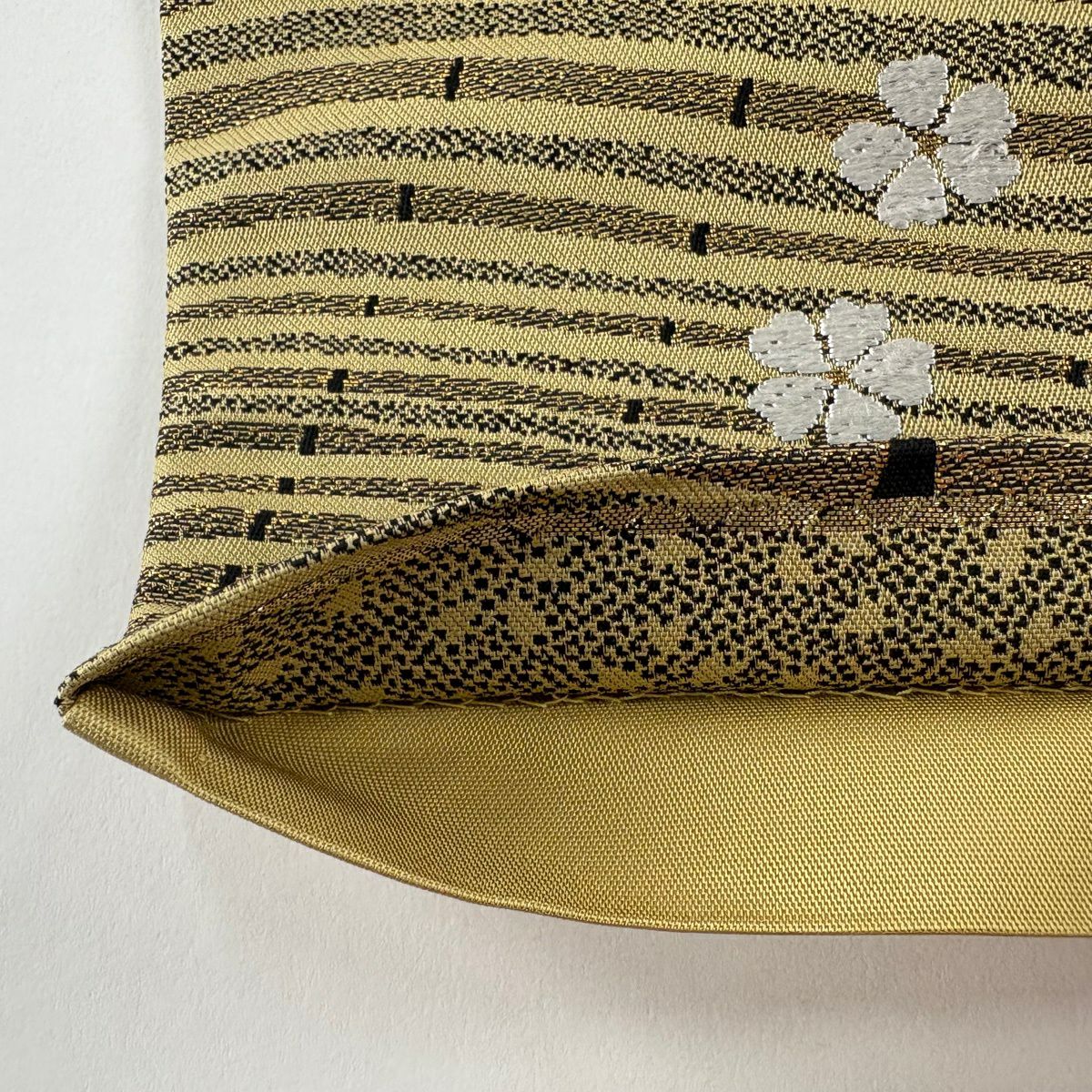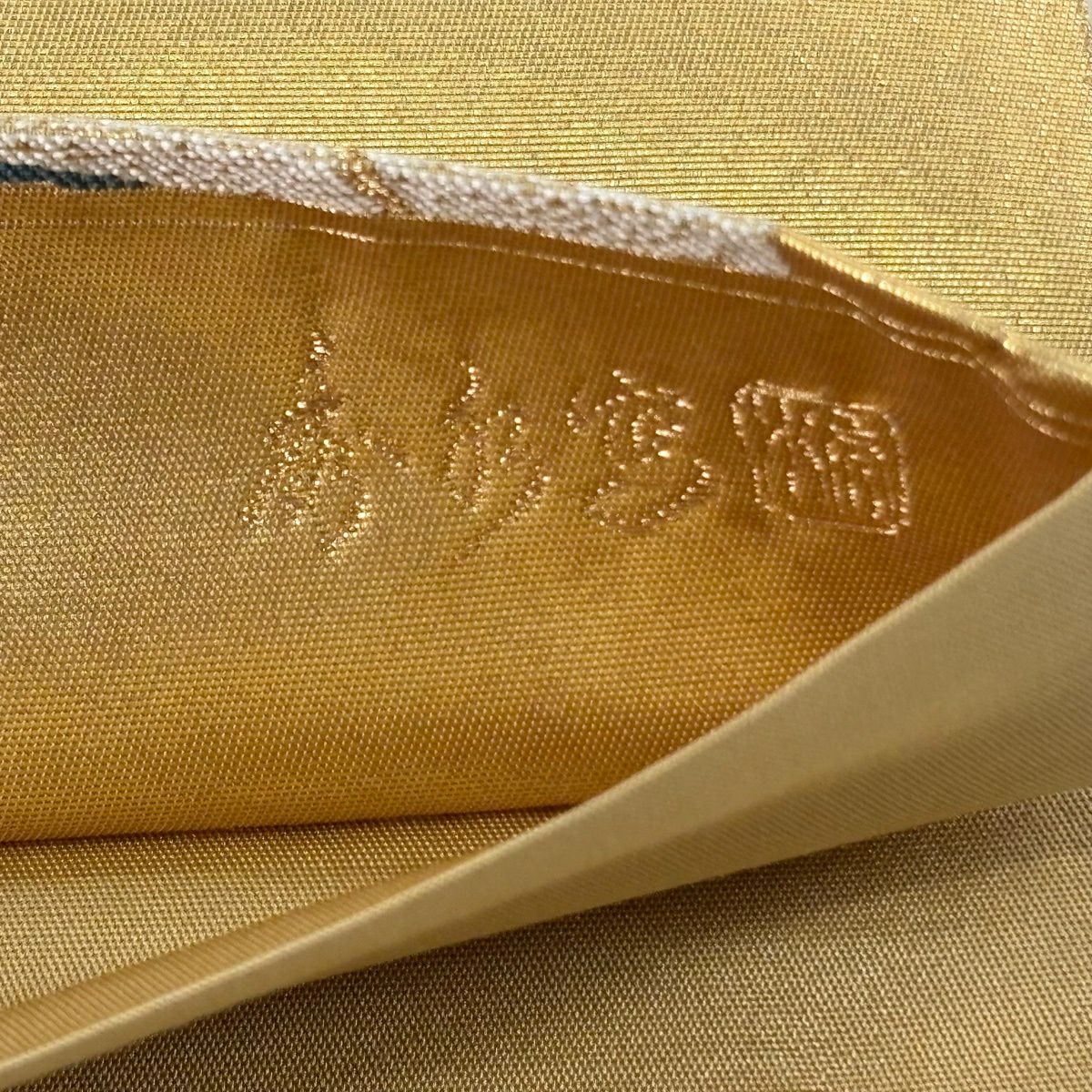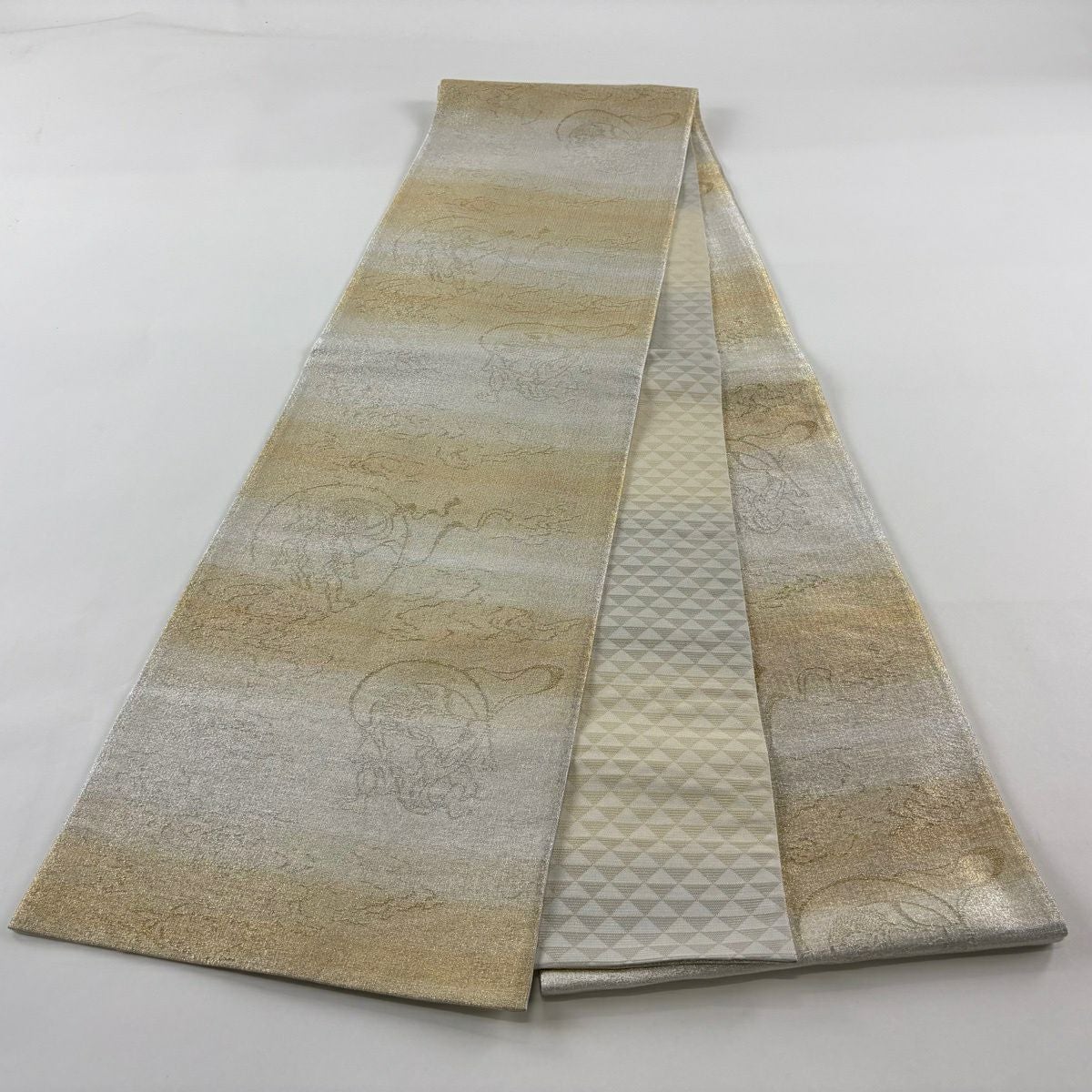 【美品】 袋帯 秀品 証紙あり 横段 風神雷神 撚箔 金色 全通 正絹