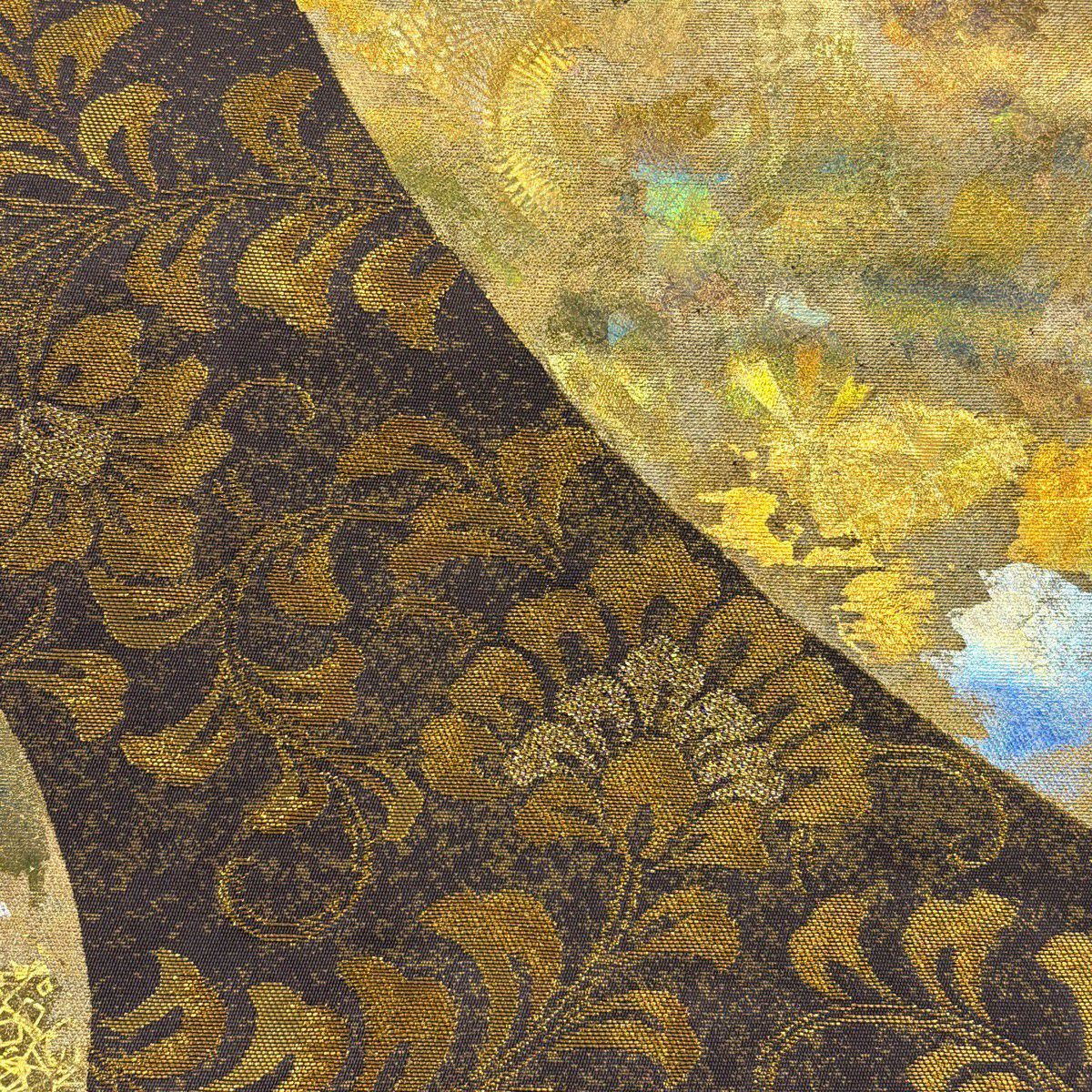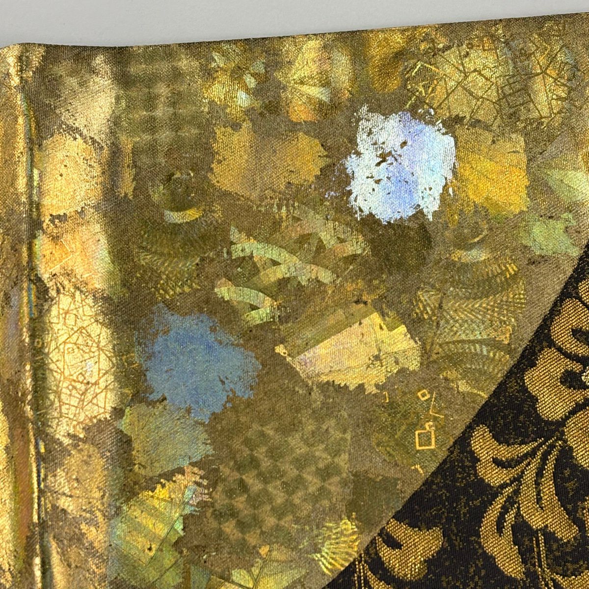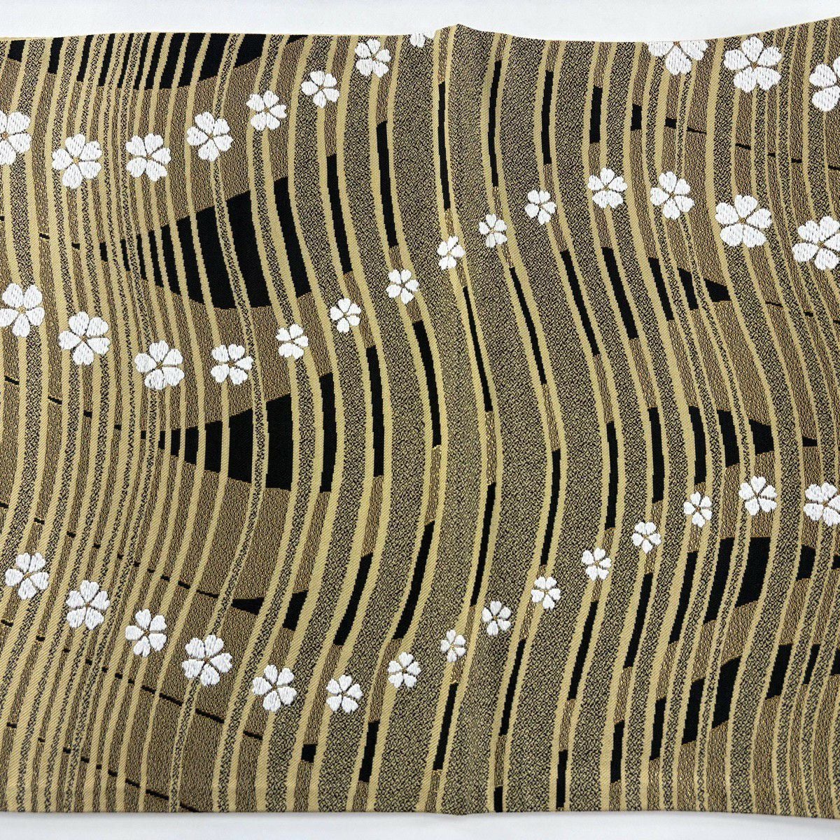 【美品】 袋帯 秀品 証紙あり 横段 風神雷神 撚箔 金色 全通 正絹