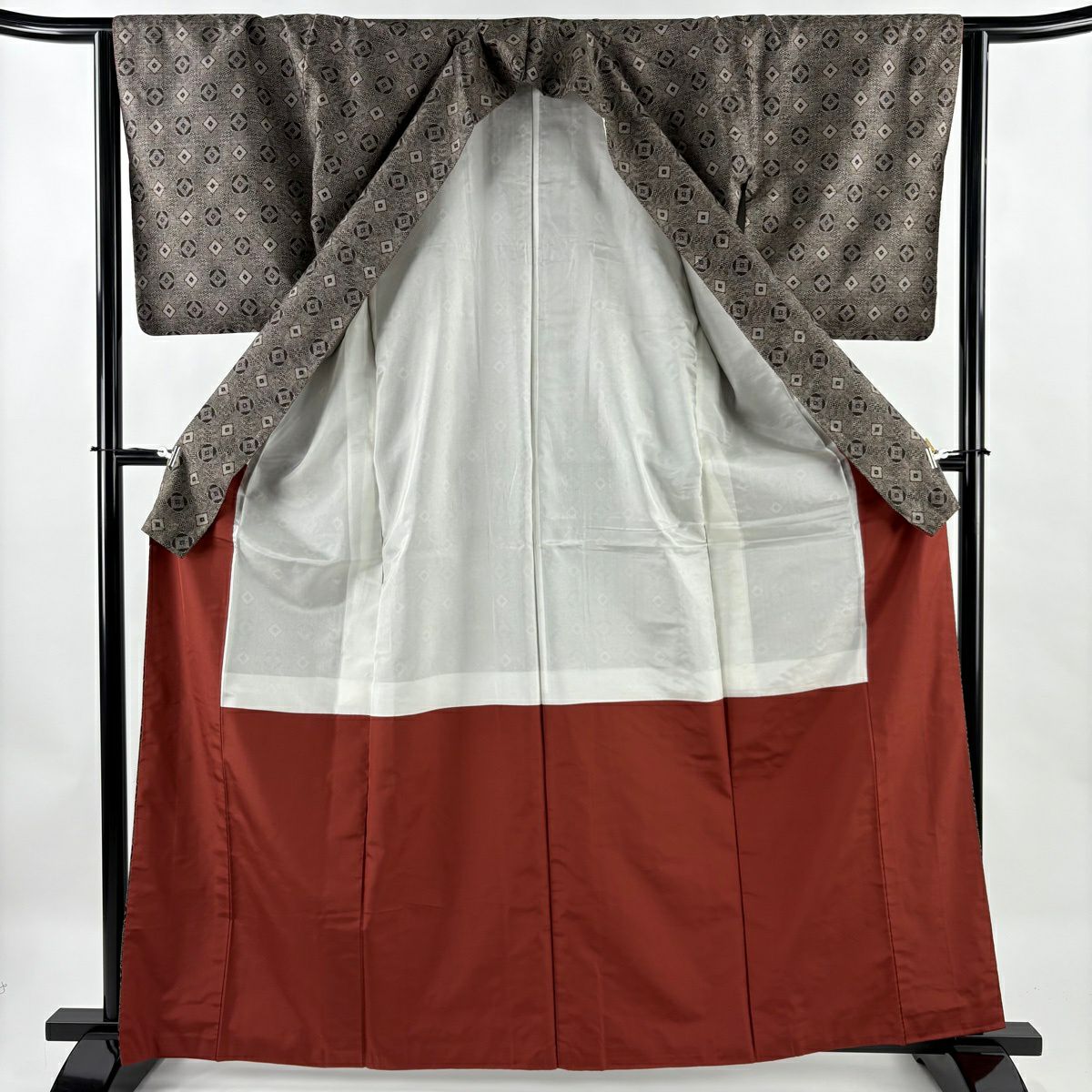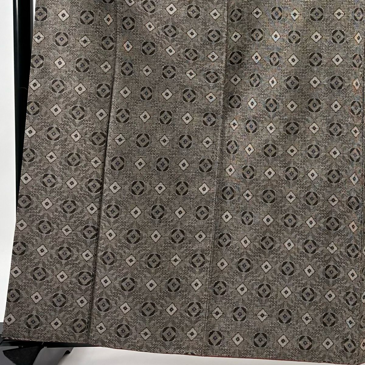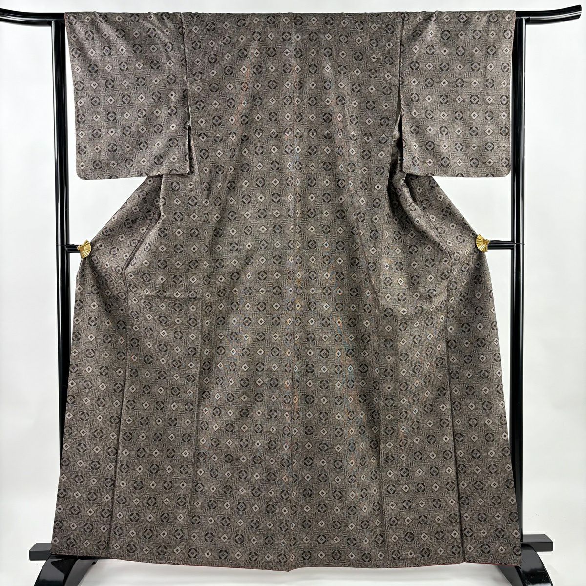 紬 身丈165.5cm 裄丈66cm M 袷 菱 華文 灰茶 正絹 秀品