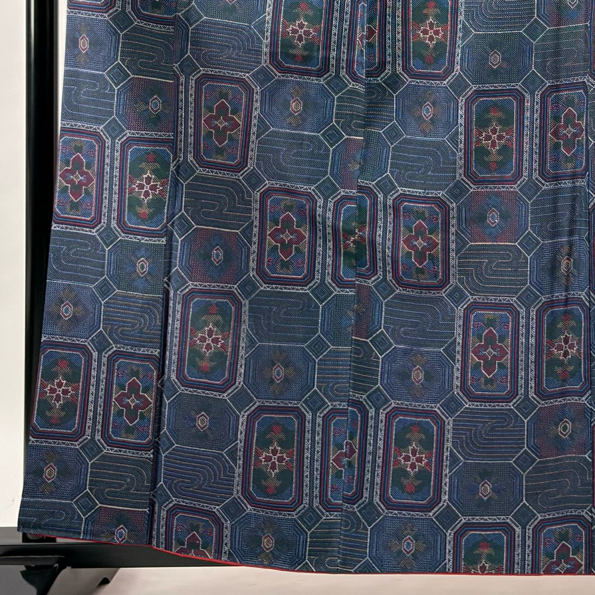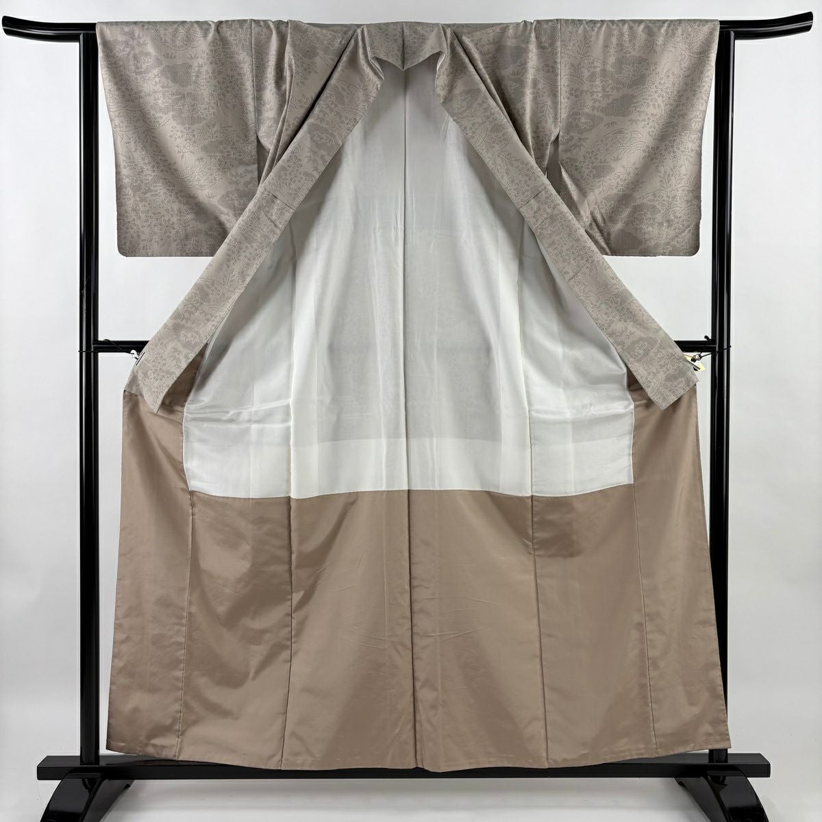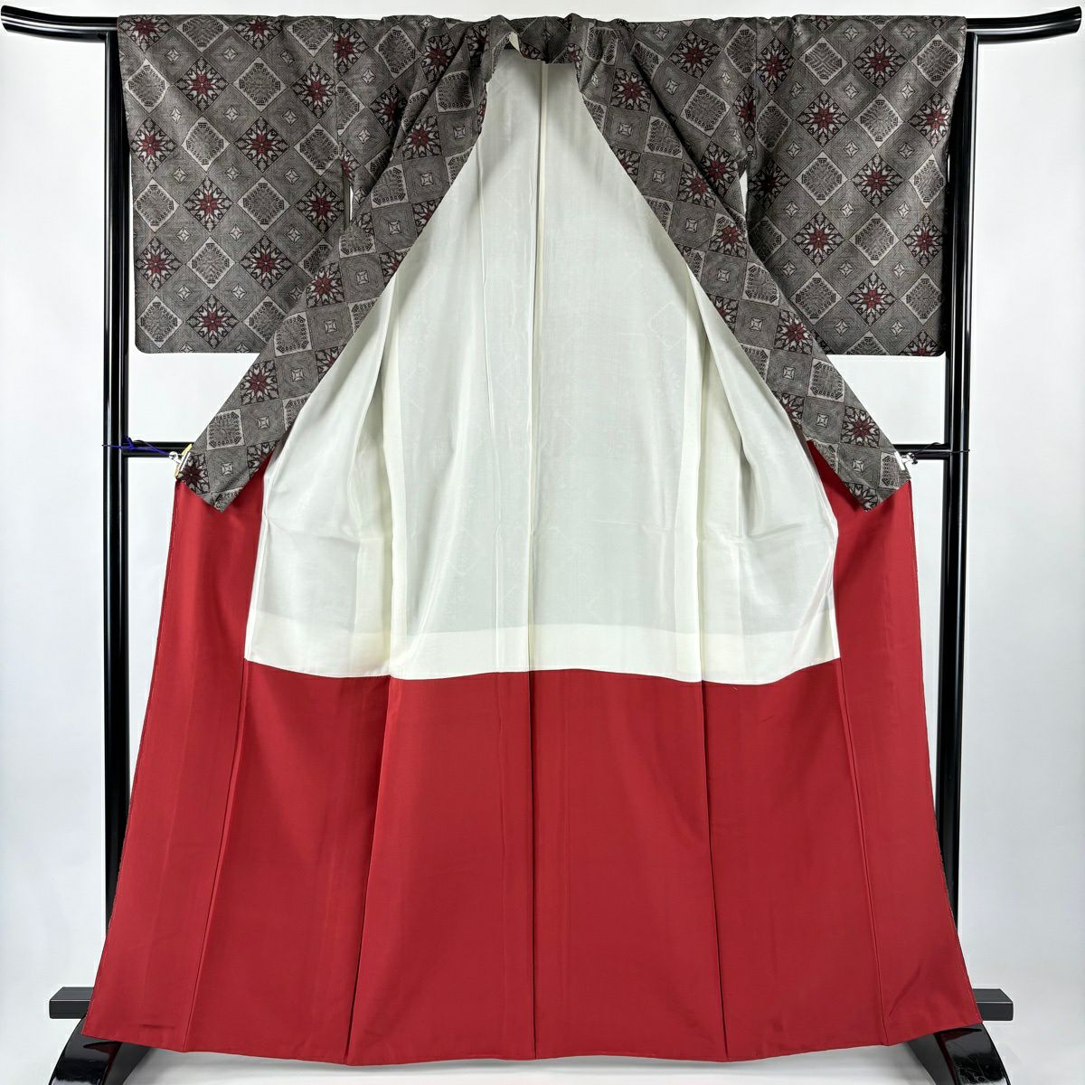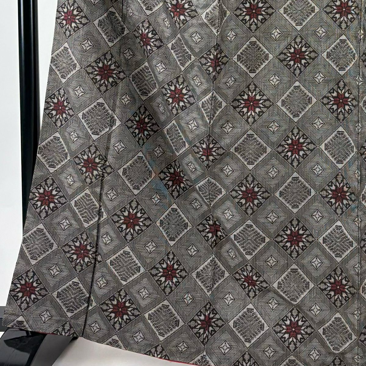 紬 身丈165.5cm 裄丈66cm M 袷 菱 華文 灰茶 正絹 秀品